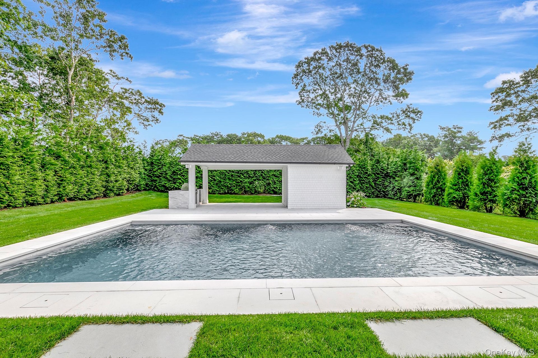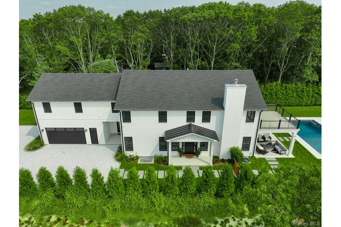 Discover refined Hamptons living in this newly completed residence set on a private, thoughtfully positioned lot in the hamlet of Quiogue. Designed with a rear-yard focus to maximize privacy and outdoor enjoyment, the home offers an elegant balance of modern architecture and timeless finishes throughout. An open-concept main level features a chef’s kitchen with premium appliances, spacious dining area, and sun-filled great room anchored by a fireplace and soaring ceilings, creating an ideal setting for both everyday living and entertaining. The primary suite serves as a serene retreat with a private balcony, spa-inspired bath, with generous walk-in closets, while additional bedrooms are beautifully appointed with en-suite baths. A second-floor den provides flexible living space and can easily function as a sixth bedroom. Outdoors, the property is designed for relaxed luxury, featuring a heated saltwater Gunite pool, expansive patio, and manicured grounds complemented by a stylish pool house with full bath, covered patio and outdoor kitchen. A fully finished, permitted lower level adds exceptional bonus space for recreation, media, including an en-suite bedroom. Additional highlights include fully owned solar panels for energy-conscious living, high-end mechanical systems, and meticulous craftsmanship throughout. Discover Westhampton Beach Village shops, dining, and ocean beaches, this exceptional home offers scale, privacy, and modern comfort rarely found at this price point.