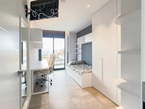 The top floor studio, with direct access to a 24 m2 private terrace, provides an ideal space for a home office, creative studio, or secluded retreat.