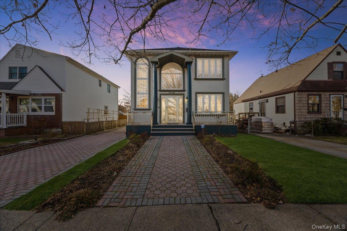 Move right into this stately, custom-rebuilt Colonial offering 5 bedrooms and 4 full bathrooms, thoughtfully redesigned in 2008 with striking architectural details throughout. From the moment you arrive, the home impresses with its grand façade featuring soaring columns, arched windows, and an elegant paver walkway set against a beautifully manicured lawn.