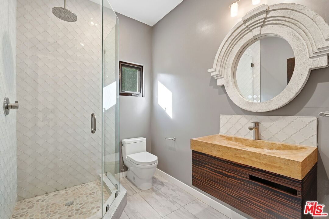 Experience refined luxury in this beautifully remodeled Spanish-style residence, ideally situated in one of Los Angeles' most sought-after neighborhoodsFaircrest Heights. Lush privacy hedges create a serene urban oasis, offering both privacy and sophistication. Spanning over 2,000 square feet, this inviting home features three bedrooms and two and a half bathrooms, thoughtfully designed for both everyday comfort and elegant entertaining. Upon entry, rich hardwood floors and warn natural light set the tone. An expansive dining area flows seamlessly into the living room with a fireplace, creating the perfect setting for hosting gatherings large or small. Sun-filled living and dining spaces provide a stunning backdrop for celebrations, intimate dinner parties, and cherished family holidays. At the heart of the home is a gourmet chefs eat in kitchen, complete with top-of-the-line appliances, quartz countertops, custom cabinetry, and stylish fixturesproviding a perfect balance of style and functionality. The primary suite is a private retreat, featuring french doors that open to a tranquil outdoor sanctuary complete with a solar-heated pool, jet spa, outdoor fire pit, and gas fireplace for year-round enjoyment. Two additional bedrooms offer generous closet space and comfort and 2. 5 bathrooms complete the home. Plus, a separate versatile ( unpermitted) detached bonus room with kitchenette and full bathroom offers flexibility and ideal as a home office, guest suite, or creative studio. Outside, the private yard serves as an ideal spot for relaxation or entertaining, complete with new turf. Whether you're enjoying a quiet evening under the stars or hosting family and friends, this space effortlessly blends the beauty of spanish architecture with the comforts of modern living. Enjoy a vibrant, walkable neighborhood with easy access to local eateries along Pico Boulevard, houses of worship, Beverly Hills, Century City, and Downtown Los Angeles. An exceptional place to call home!