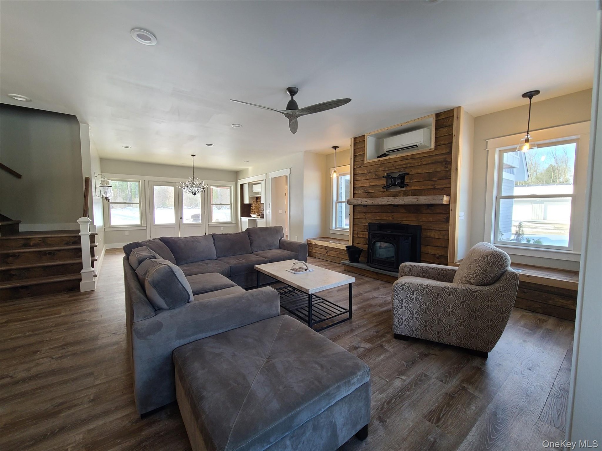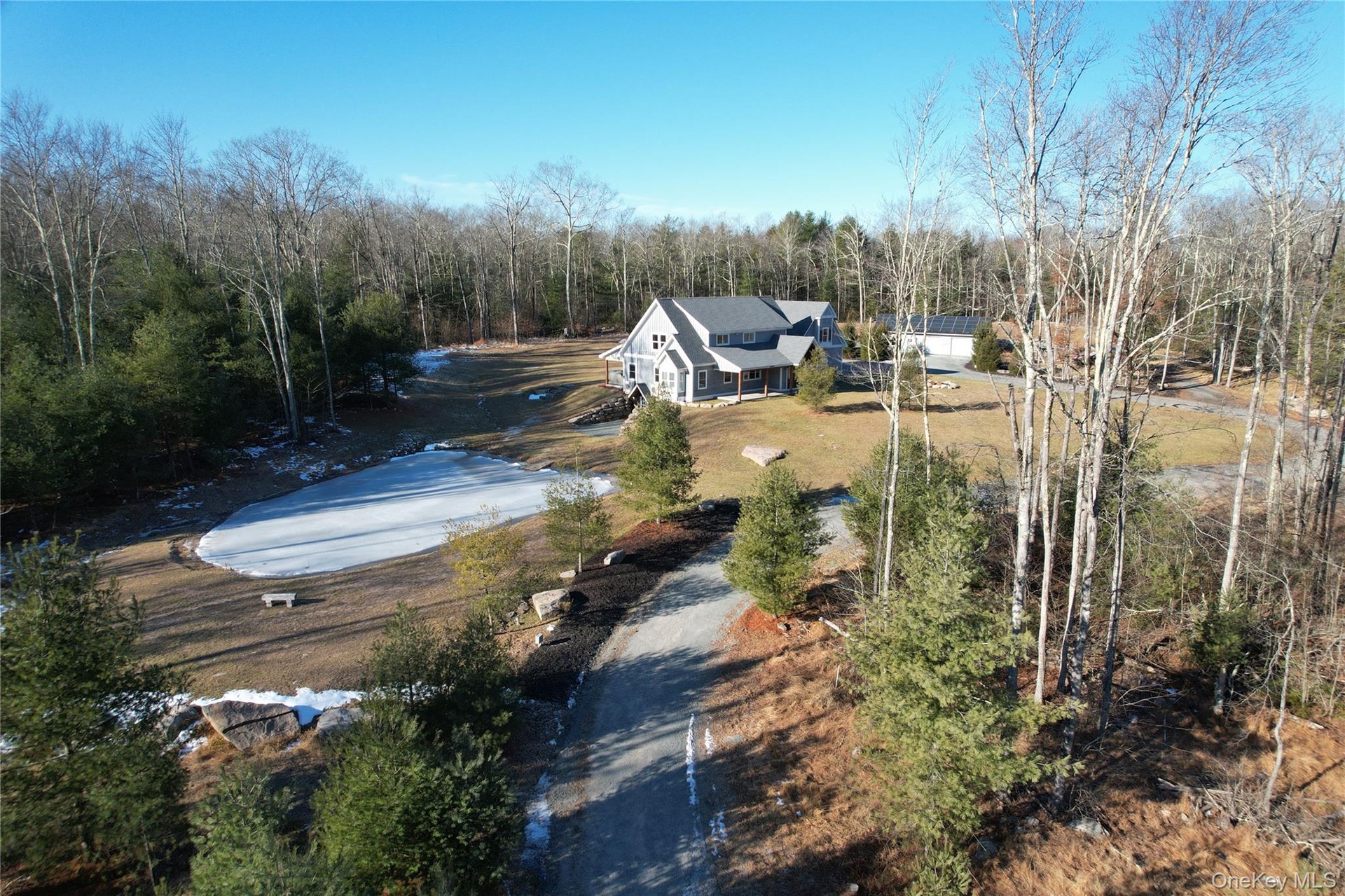 Gorgeous “mini estate” with lake access and personal swimming pond borders 100’s of acres of NYS land and will not disappoint! Impressively positioned overlooking a crystal-clear spring fed pond this property checks off many boxes for the discerning buyer. With so much to offer, listing includes an expansive 3800+SF home with 3-car attached garage, large outbuilding with studio apartment (1 full bath) and workshop plus 2-bay garage, chicken coop, fencing, landscaping and 100’s of acres of state land in your backyard! Double door entrance welcomes you in to a comfortable layout with open plan dining room, chef’s kitchen, living room, 5 BR’s, 3 full and 2 half baths plus a mudroom. Cleverly designed, this home offers a great deal of flexibility and is perfect for multi-generational living. The kitchen boasts a huge island, quartz countertops, stunning stainless steel Thermador Professional 48” stove equipped with commercial hood and pot-filler, an enormous pantry and modern farmhouse detailing. Dining area is spacious with French doors leading to covered patio making outdoor entertaining a breeze. Living room features a pellet stove and built in storage. Primary suite is on the main level and features a large private bath with two vanities, soaking tub and full body shower as well as a walk-in closet equipped with personal washer/dryer. Additionally, the primary suite opens to covered patio with hot tub! Second level offers secondary ensuite bedroom and 3 additional bedrooms, tons of storage, plus an enormous flex room and laundry room. Anyone with a vision can see that the wing containing the 5th bedroom, laundry room, half bath, and large flex room is perfect space for guest quarters, artist or yoga studio, game room or whatever you desire. This section of the home offers unlimited potential and has its own separate entrance. Mudroom has a half bath and a door to the 3-car garage as well as to the exterior for convenience. Full unfinished walk-out basement has a room slated for a wine cellar and offers an enormous amount of storage. Radiant heat in the bathrooms is a lovely luxury, solar panels on the garage offer abundant savings if you choose to use them, and the whole house generator is a must-have convenience. HOA includes access to McAuley’s Lake for fishing and boating, available only to a select few. This beautiful recently completed residence is set on 5 landscaped acres, although the land seems immense with 100’s of acres of state land available at your leisure. The state property trails lead you to the shores of Swinging Bridge Reservoir, a nine-mile motor-boat lake with public access. Located just 90 miles from New York City, Sullivan County Catskills offers a wide range of amenities and abundant natural resources. Enjoy various outdoor activities including skiing, fishing, boating, hiking, and biking... wonderful farm to table dining experiences, niche shops, quaint walkable towns and so much more! The exclusive Monticello Motor Club, Catskill Resorts Casino and Bethel Woods Center for the Arts for world class entertainment are just a short car ride away.