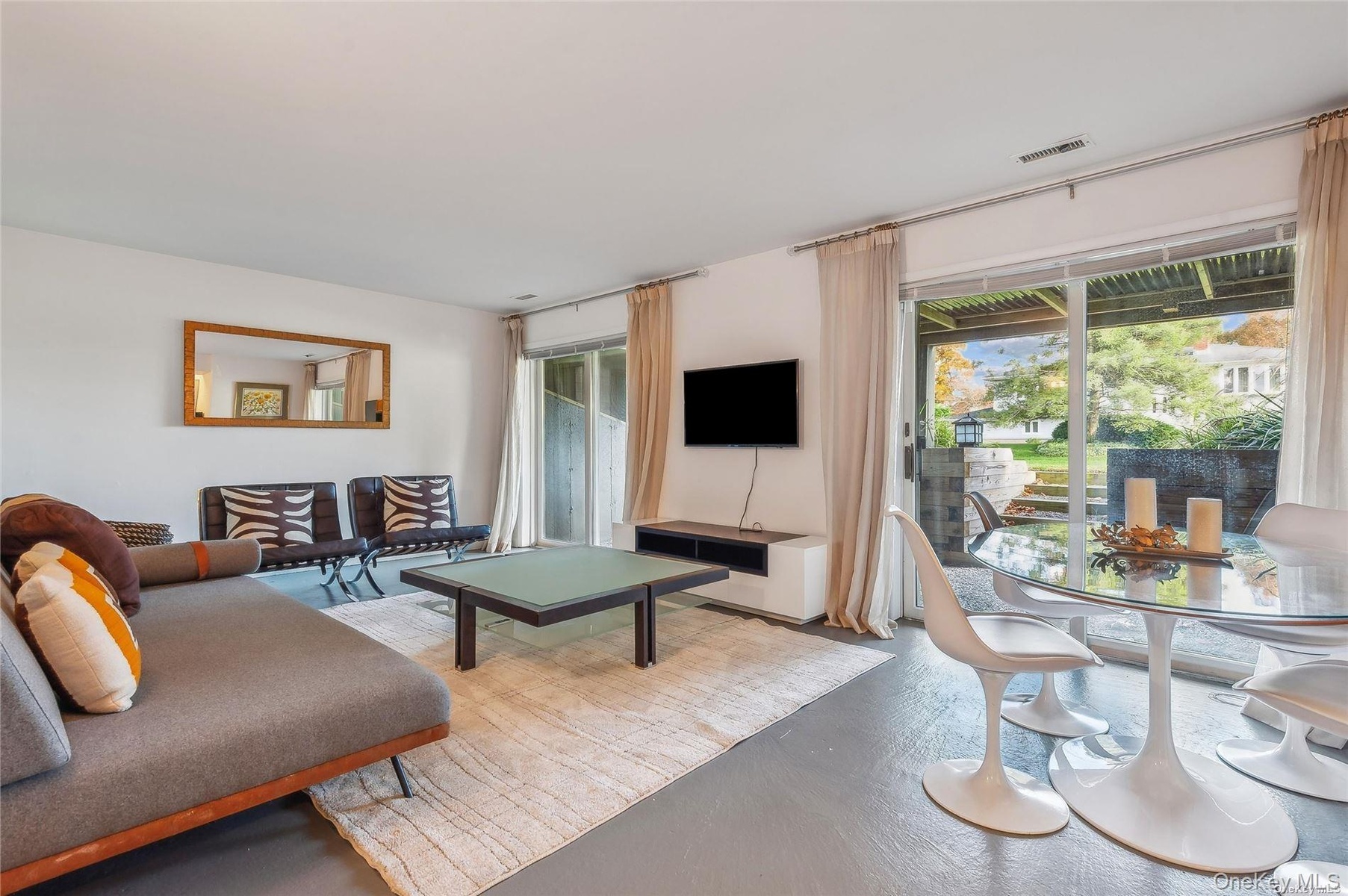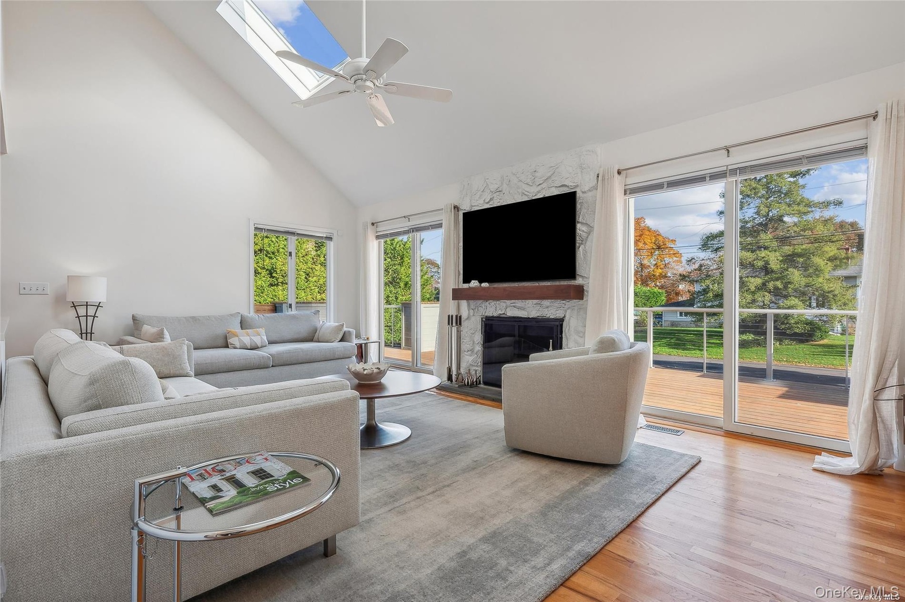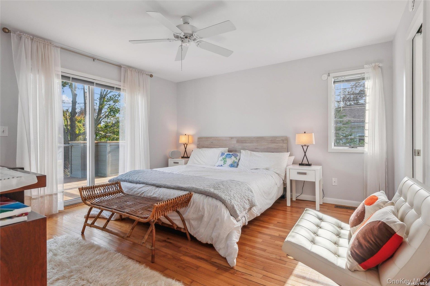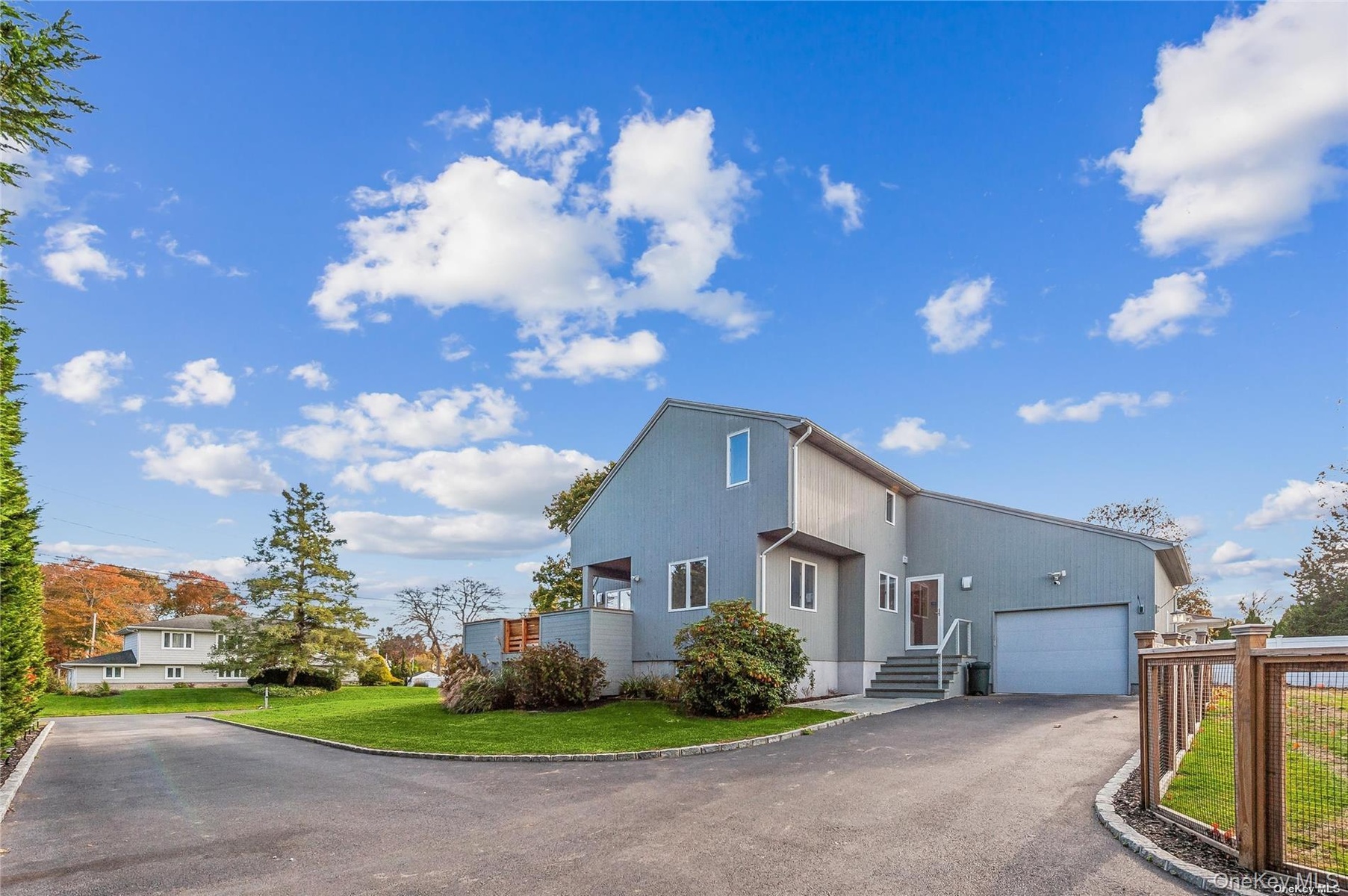 This beautiful home with in-ground pool and ample private open space exudes beach resort ease and is rarely available for rent. Located in a quiet enclave off the vineyards mile of Southold on the north fork, it is within proximity to farms, town, beaches and restaurants. The home which entered via a tree lined drive, is comprised of two stories, plus a lower level. The first floor features a southeast facing double height living room with woodburning fireplace, a modern kitchen with breakfast counter, a formal dining area which opens to a vast deck for lounging and socializing. A private primary suite is on the first floor with a dedicated full bathroom and closet. Off of the main entry is half bath and another closet. There is an attached one care garage. The second floor has two bedrooms with peek-a-boo waterviews, each with a private balcony.There is a guest bath on this level. The lower level has full glass sliding doors from the family room to outside. There is also a full bath, wine closet, laundry and plenty of storage space. The fenced in backyard has a pool with large patio that provides secure and private space for recreation, and opportunities for gardening. Potential boat dock available. Multiple time periods available for 2026; MD-LD $88K, June $21K, July $35K, Aug $35K, July-LD $70k, Aug- LD $38k, Sept. $21k, Oct. $18k.