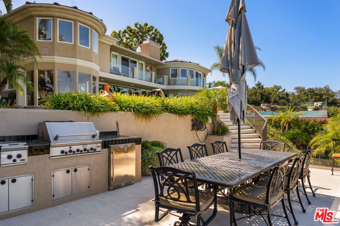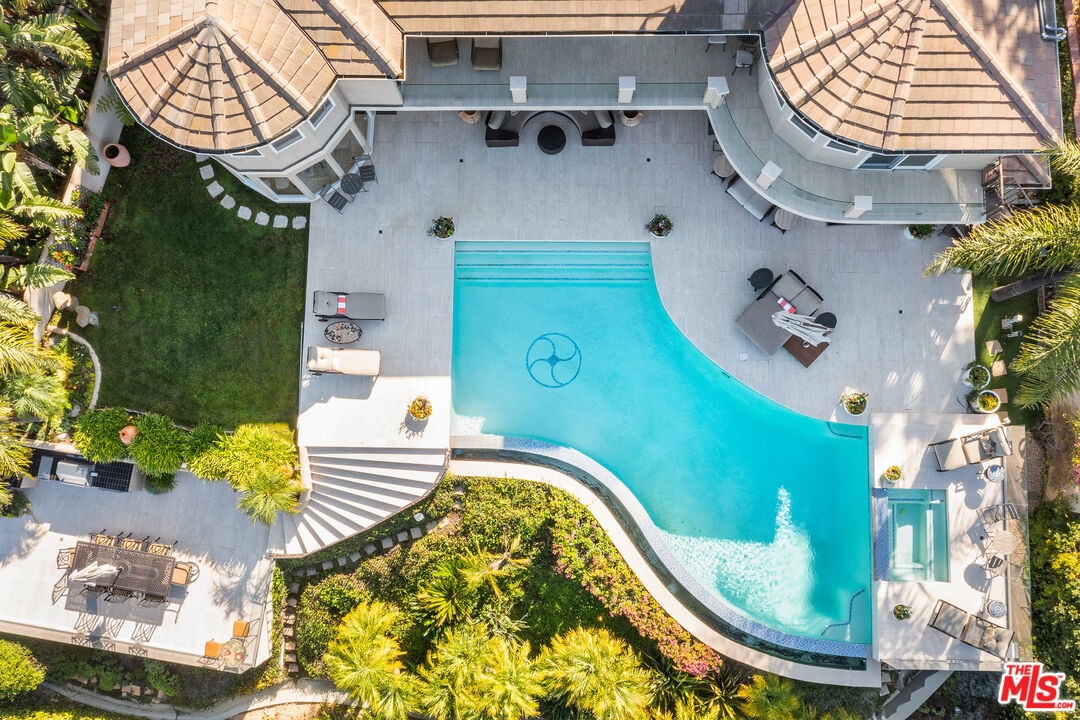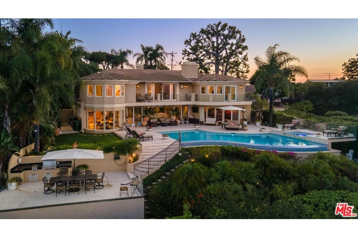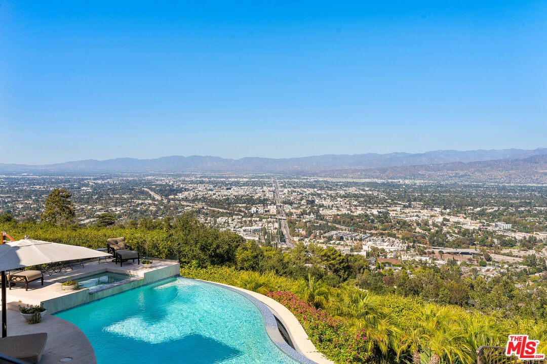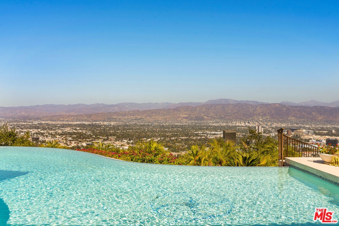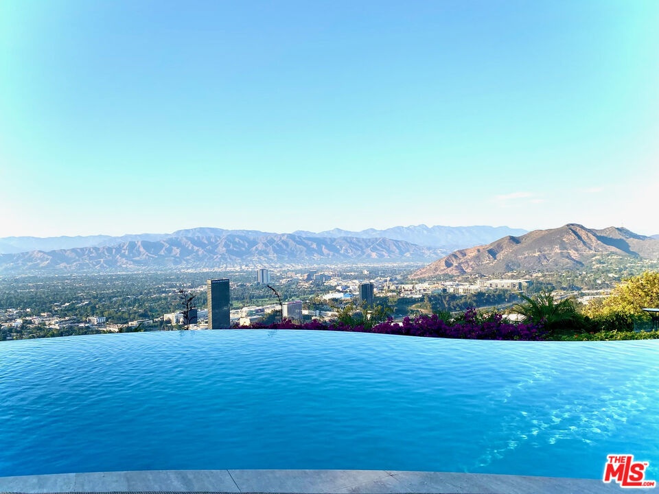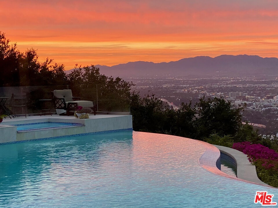 Welcome to "Villa De Torreyson", a breathtaking Mediterranean masterpiece perched high above the Hollywood Hills on one of the most prestigious celebrity-studded cul-de-sacs in Hollywood Hills West. This timeless villa captures inarguably the most awe-inspiring, unobstructed panoramic views in the entire region sweeping from the Santa Monica Mountains and Universal Studios to the vast San Fernando Valley skyline and mountain ranges. With a commanding promontory position and cinematic sunrises and sunsets, this is a rare offering for those who demand the extraordinary. Beyond its stately motor court and dramatic two-story entry, the residence unfolds into a series of radiant, light-filled living spaces that embody the elegance of Old World Mediterranean charm fused with refined California luxury. The formal living room flows effortlessly into the dining room, breakfast nook, and a spacious chef's kitchen, creating the perfect atmosphere for both grand-scale entertaining and intimate everyday living. Step outside to a resort-inspired oasis where an architectural infinity pool floats above the city, framed by lush landscaping, multiple lounging terraces, and a built-in BBQ pavilion, all oriented to capture the home's world-class views at every turn. The primary suite is a sanctuary unto itself, featuring a cozy sitting area with fireplace, dual walk-in closets, and a private wraparound balcony that spills directly into the horizon. A spa-like bath with soaking tub and oversized glass shower completes the retreat with a sense of calm sophistication. Additional highlights include a state-of-the-art home theater with projection system and surround sound, a bonus room with private entrance ideal for a gym, office, recording studio, meditation/yoga area, or creative studio, a three-car garage, and five luxurious en-suite bedrooms. With effortless access to the Sunset Strip, Beverly Hills, and Studio City, "Villa De Torreyson" is more than a home, it is a rarefied hilltop estate that defines prestige, privacy, and iconic Los Angeles living. Truly one of the best views in all of Hollywood Hills West.