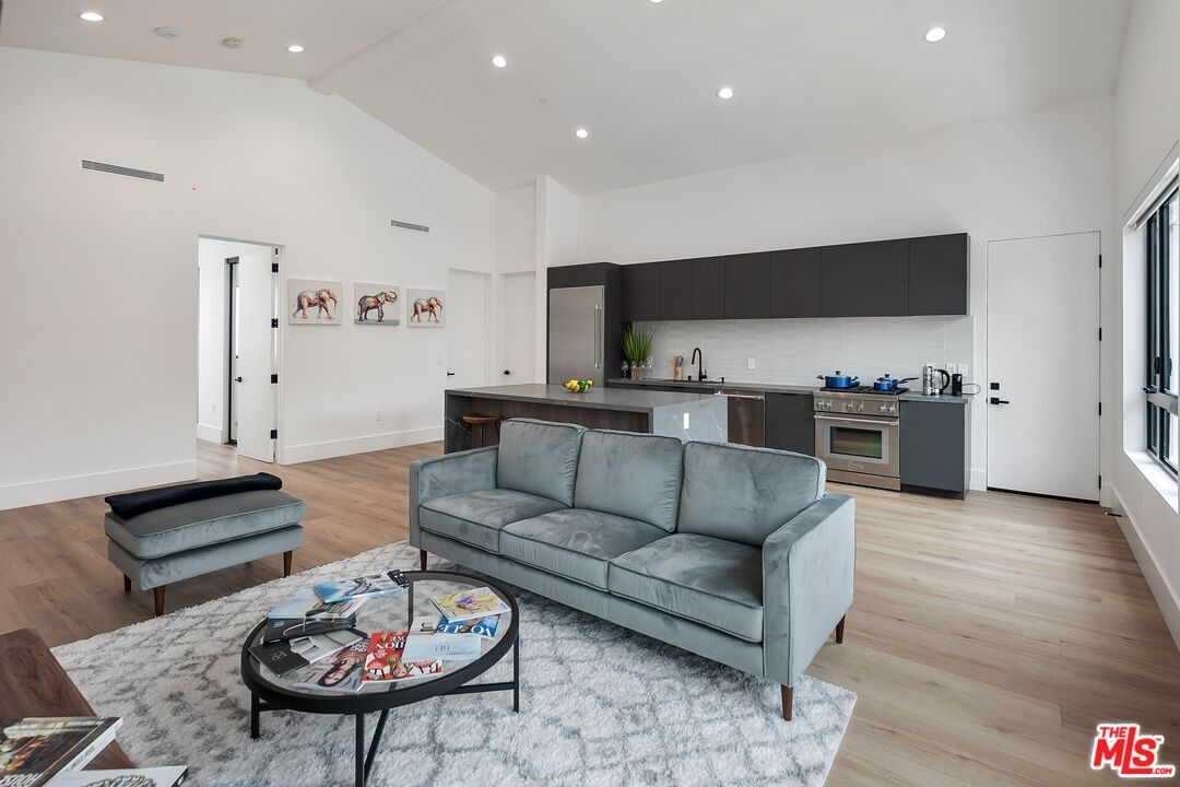 Enjoy a newly-constructed and modern townhouse in a central West Hollywood location. Walk through the front door and head up the stairs to the living space. Relax on the couch and put your drink down on the coffee table all watch your favorite streaming services and local channels on the flat-screened Smart TV. Cook a meal in the large kitchen with brand-new stainless-steel Thermidor appliances. Enjoy your food at the gorgeous kitchen island with bar stool seating for 4, or gather in the dining area with a dining table and seating for 6. Down the hallway you will find the Master suite with a King bed, spacious walk-in closet, Smart TV, and private balcony with lounge furniture. The attached Master bathroom offers dual sinks and a shower. To the right of the kitchen, you will find the second bedroom with a King bed, sliding closet doors, and attached bathroom with a sink and standing shower. Both bedrooms offer room-darkening shades to provide the best comfort and sleep possible. Head up an additional flight of stairs for shared rooftop access and the best Hollywood views. The unit offers garage parking for 2 vehicles and a washer and dryer. Recessed lighting and hardwood flooring through the home. Price above is for a one year furnished lease.
