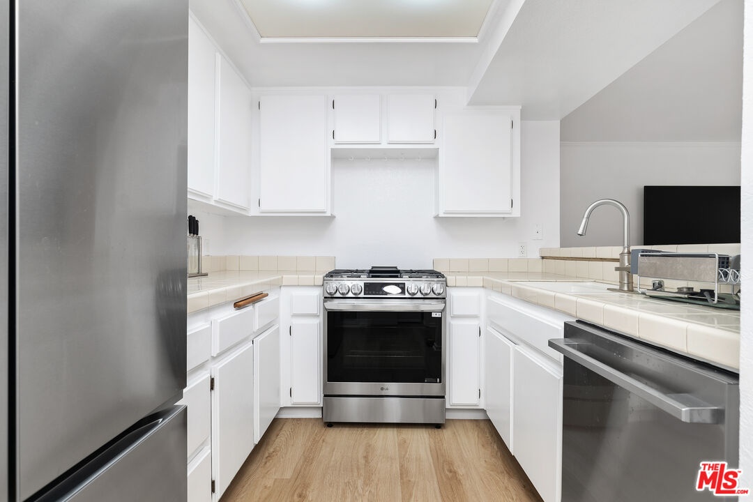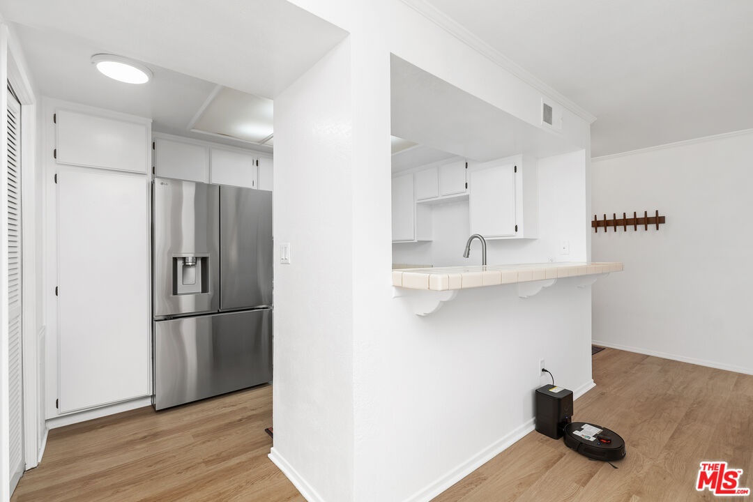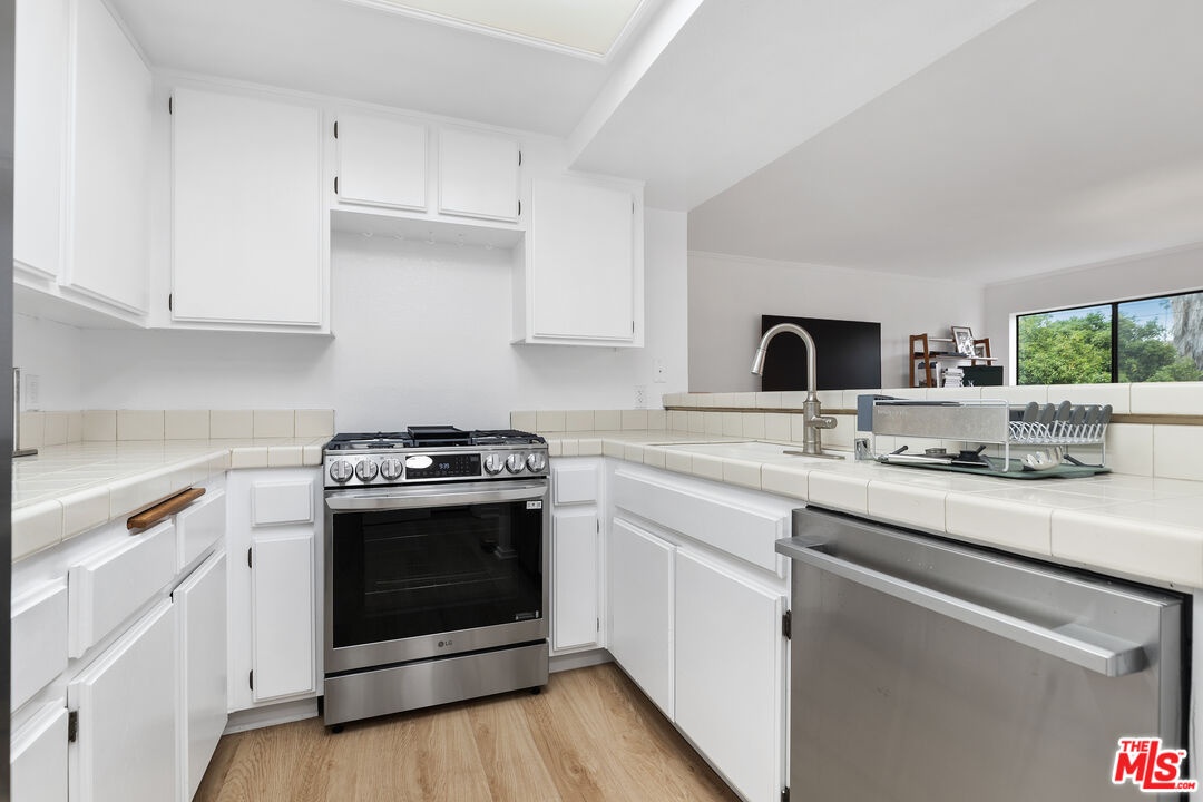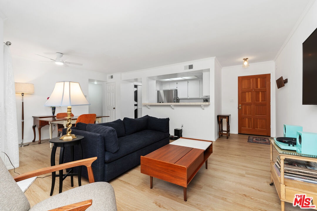 **Charming Mar Vista Retreat: Fully Upgraded 1-Bedroom Condo with Unmatched Convenience**Ideally situated in the vibrant heart of Mar Vista, this spacious upper-corner Top Back 1-bedroom, 1-bathroom back unit condo is the epitome of modern living, combining comfort, style, and accessibility in a meticulously maintained controlled-access building with a convenient elevator to your garage containing two private large storage units . With a fresh, contemporary ambiance, this home has recently undergone significant updates, ensuring both aesthetics and functionality are at the forefront. As you step into the bright living area, you are greeted by an inviting space featuring a decorative fireplace, serving as a cozy focal point for relaxation and entertaining. The living room seamlessly opens to an expansive private balcony, perfect for enjoying your morning coffee or evening sunsets in a tranquil setting. The semi-open kitchen is a culinary delight, fully equipped with newly installed kitchen appliances, including a stove, dishwasher, microwave, and refrigerator. Enjoy the convenience of an in-unit washer and dryer, cleverly tucked away in a closet for ease of use. Retreat to the generously sized bedroom, which boasts large windows flooding the space with natural light, mirrored double closets that offer ample storage, and convenient direct access to the stylish full bathroom. The bathroom has been tastefully updated with new countertops and mirrors, a new Toto toilet, and a beautifully re-glazed bathtub that complements the modern aesthetic. Every detail has been considered with new engineered hardwood floors throughout, enhancing the home's elegance, while new light fixtures elevate the ambiance, creating a warm and inviting environment. Additional features include Central Air conditioning and Central heat, brand new screens on the windows, ensuring fresh air and comfort year-round. For your convenience, this unit includes two assigned covered tandem parking spaces in a secure underground garage, providing peace of mind and easy access. Nestled just steps away from local favorites such as Beethoven Market, Taverna at The Mar Vista, The Farmers Market, Awaken Cafe , Little Fatty, CVS, and more, this condo offers the ideal blend of lifestyle and community, making it perfect for anyone seeking both comfort and convenience. Don't miss the opportunity to call this beautifully upgraded Mar Vista condo your home; schedule a viewing today and experience everything this vibrant neighborhood has to offer! Fireplace is decorative .