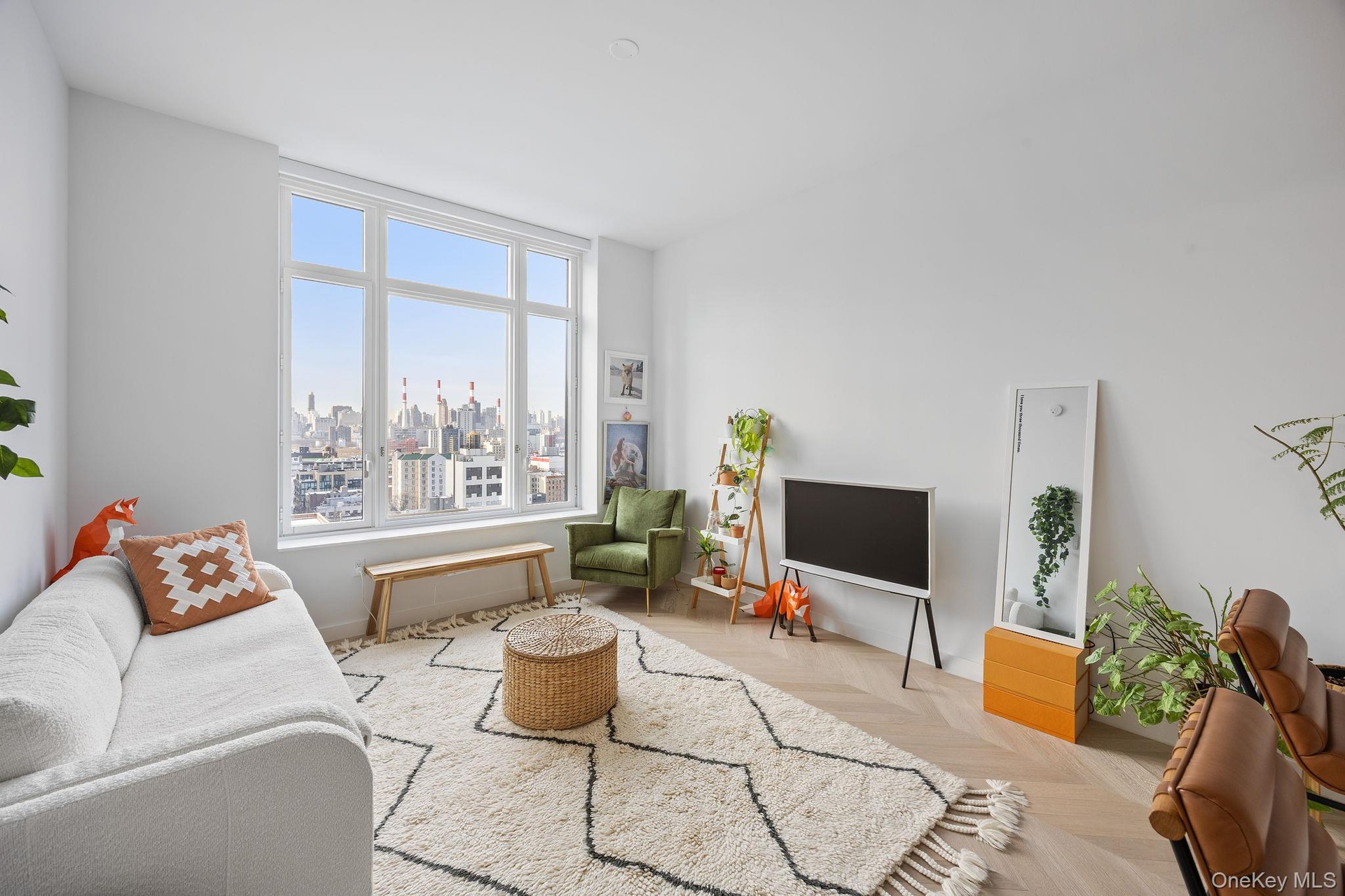 Residence 16B at Nova is one of the most desirable and fastest-selling layouts since the building’s initial release. This sun-filled home offers sweeping Manhattan skyline views and features high-end custom automatic blinds throughout. Premium finishes include natural white oak chevron flooring, 10-foot ceilings, and a sleek modern kitchen with custom cabinetry, Desert Silver Suede Silestone countertops, and a Bertazzoni gas range with vented hood. Spa-like bathroom with mosaic stone tile and Waterworks fixtures. In-unit washer/dryer plus building laundry room. Full-service building with full-time doorman, fitness center, lounge, playroom, and landscaped rooftop with BBQ. Convenient to transportation, parks, dining, and shopping.