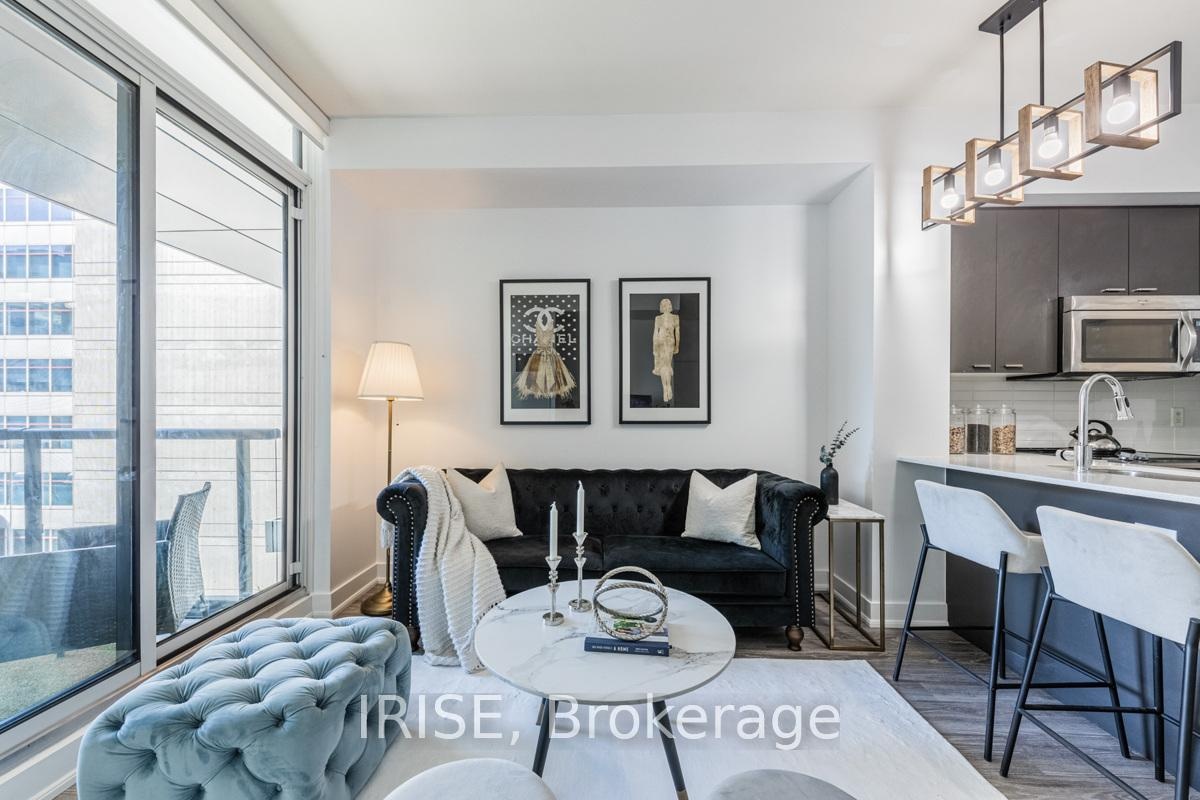 Fully furnished bright corner 1 Bedroom + Den unit, located at the heart of Yonge and Eglinton. The home located in one of the best managed building of Yonge & Eg, provides every comfort that you need. Furniture included Bed, Couch, recliner, TV, TV shelf. Large well spaced living area to provide the most comfortable space to hang out with friends and family. L-shaped kitchen counter to provide extensive cooking space, ideal for aspiring chefs or quick meal prep, with newly painted kitchen cabinets. Den with sliding doors which can be used as a spare guest room or a well equipped private enclosed workspace. Wide angled bedroom with broad wardrobe ensuring the most cozy nights. Large open balcony providing great space for barbecues or simply relaxing with a coffee. Building amenities includes 24 Hrs Concierge, Outdoor BBQ patio; 6,000 Sf. Fitness Center, Sauna, Yoga, Media/Party room, Library / co working space, Bike lockers and more. Close to every possible amenity Subway, banks, Library, Grocery, Restaurants & Cinema.