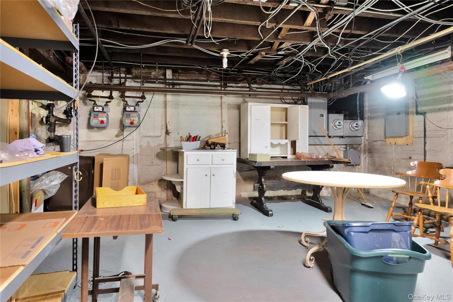The second entrance leads to the upper duplex residence, as well as access to an unusually large, clean, unfinished basement with a separate exterior entrance—offering excellent storage or future potential.