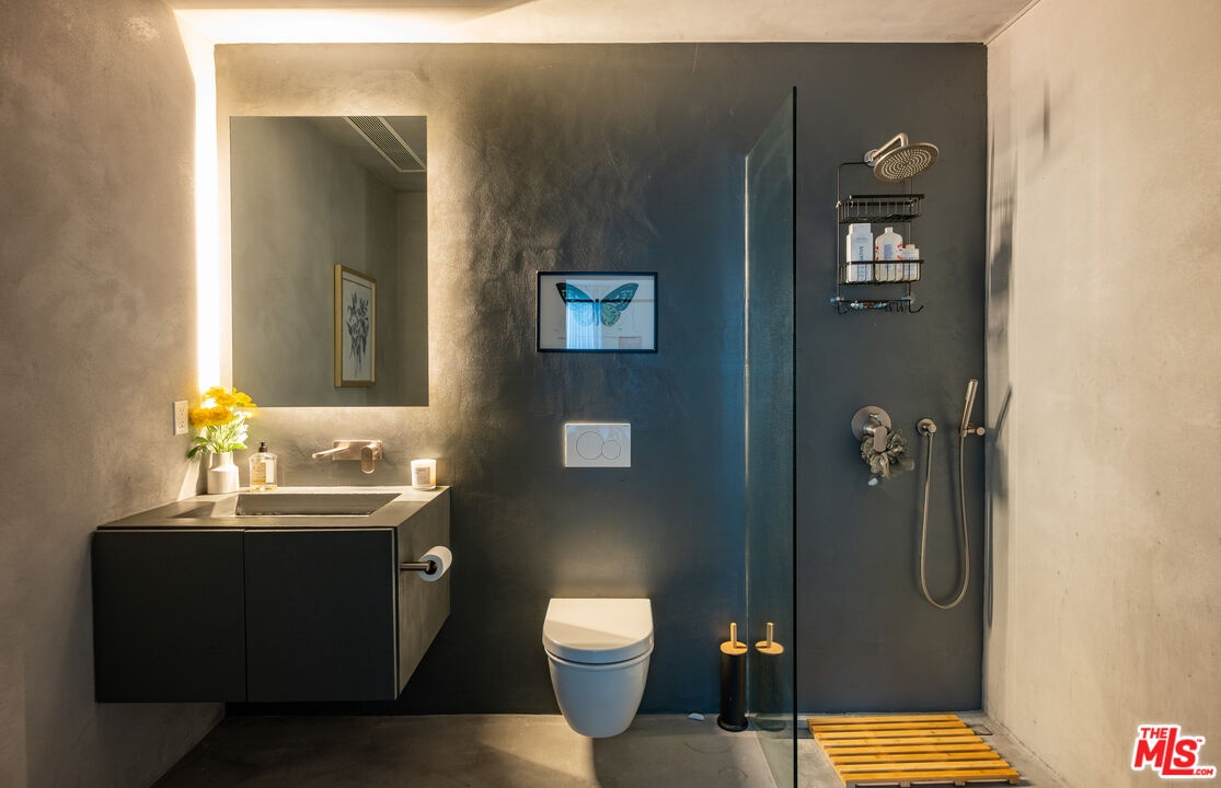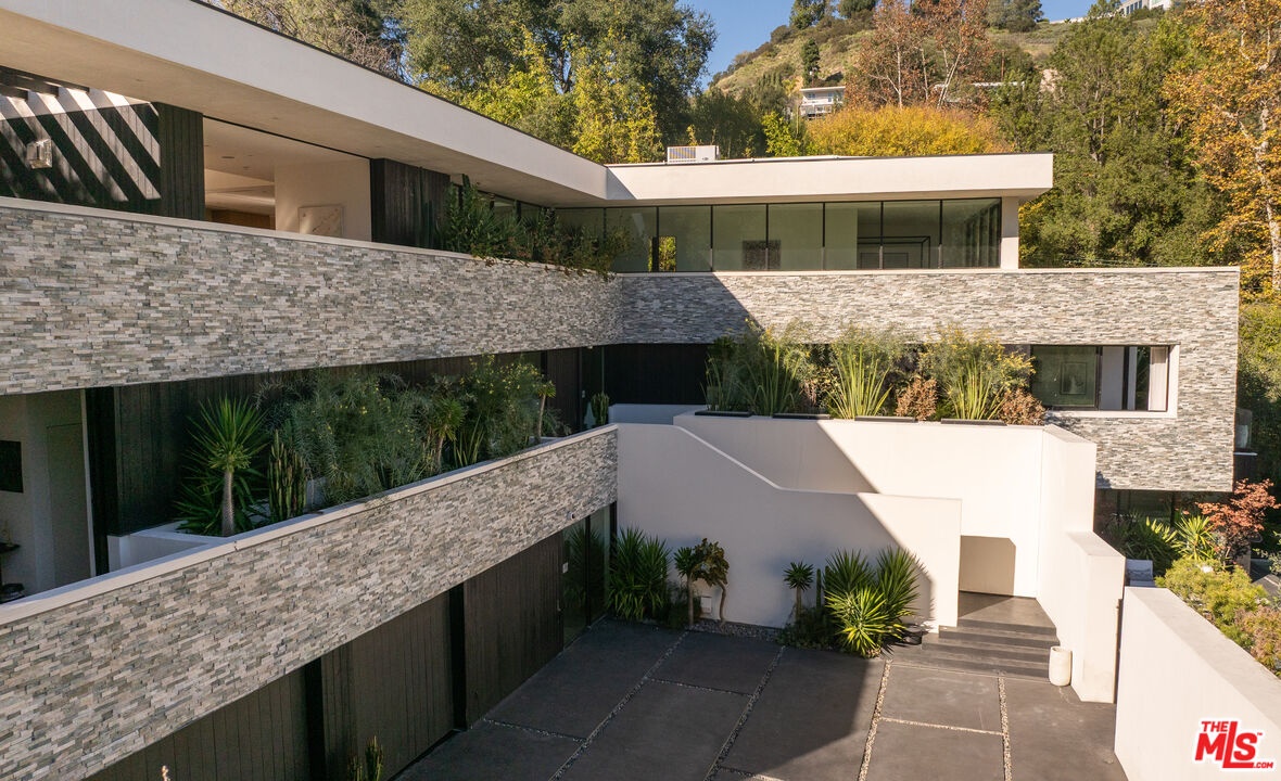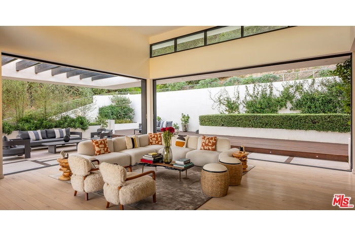 Privately set behind gates in the coveted Hollywood Hills, this striking modern estate offers a rare combination of architectural presence, scale, and tranquility just moments from the Sunset Strip. A long driveway leads to a three-level residence thoughtfully designed to embrace light, openness, and seamless indoor-outdoor living. Expansive living and dining spaces are framed by walls of glass that open effortlessly to outdoor terraces, creating a fluid connection to the surrounding canyon landscape. The chef's kitchen anchors the main level with custom finishes, premium appliances, and an oversized island ideal for both daily living and entertaining. Throughout the home, clean lines, warm natural materials, and meticulous craftsmanship establish a refined yet inviting atmosphere. The primary suite serves as a private sanctuary, featuring generous proportions, spa-inspired bath amenities, a substantial walk-in closet, and serene views through floor-to-ceiling glass. Additional en-suite bedrooms are well-appointed, many with private terraces that extend living space outdoors. Purpose-built amenities include a media room, sauna, elevator, and flexible spaces suited for work or leisure. Outdoors, the property transforms into a resort-style retreat. A heated pool and spa are complemented by multiple lounge and dining areas, lush landscaping, and canyon vistas that provide both beauty and privacy. A covered patio and thoughtfully designed entertaining spaces make the home equally suited for large gatherings or quiet evenings. With a gated entry, three-car garage, advanced home systems, and close proximity to world-class dining, shopping, and nightlife, this estate represents a sophisticated Hollywood Hills lifestyle defined by privacy, design, and effortless luxury.