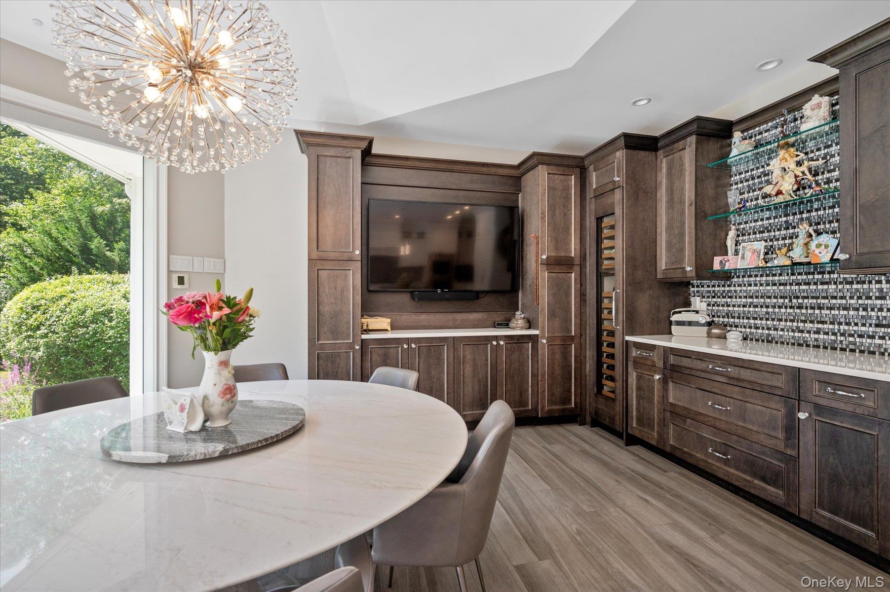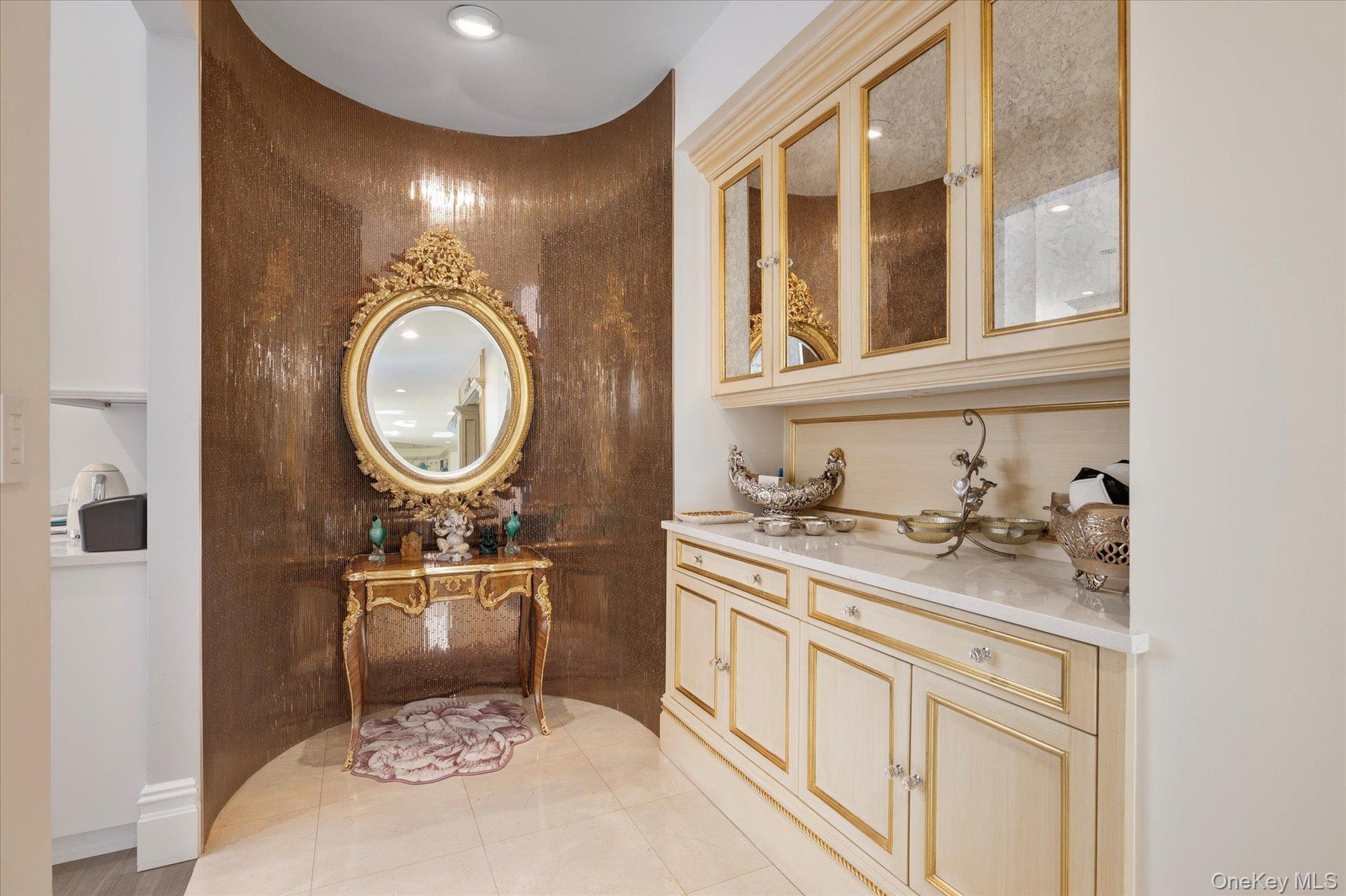 The chef’s kitchen is a culinary masterpiece, fully updated with premium appliances including a Sub-Zero refrigerator, Wolf double wall oven and range, Bosch dishwasher, Bosch drawer microwave, and KitchenAid sink disposal. A grand kitchen island, large wine fridge, and top-tier finishes create a space ideal for entertaining with all major kitchen appliances under warranty through 2028 for added peace of mind. Laundry machines were newly installed in 2024.