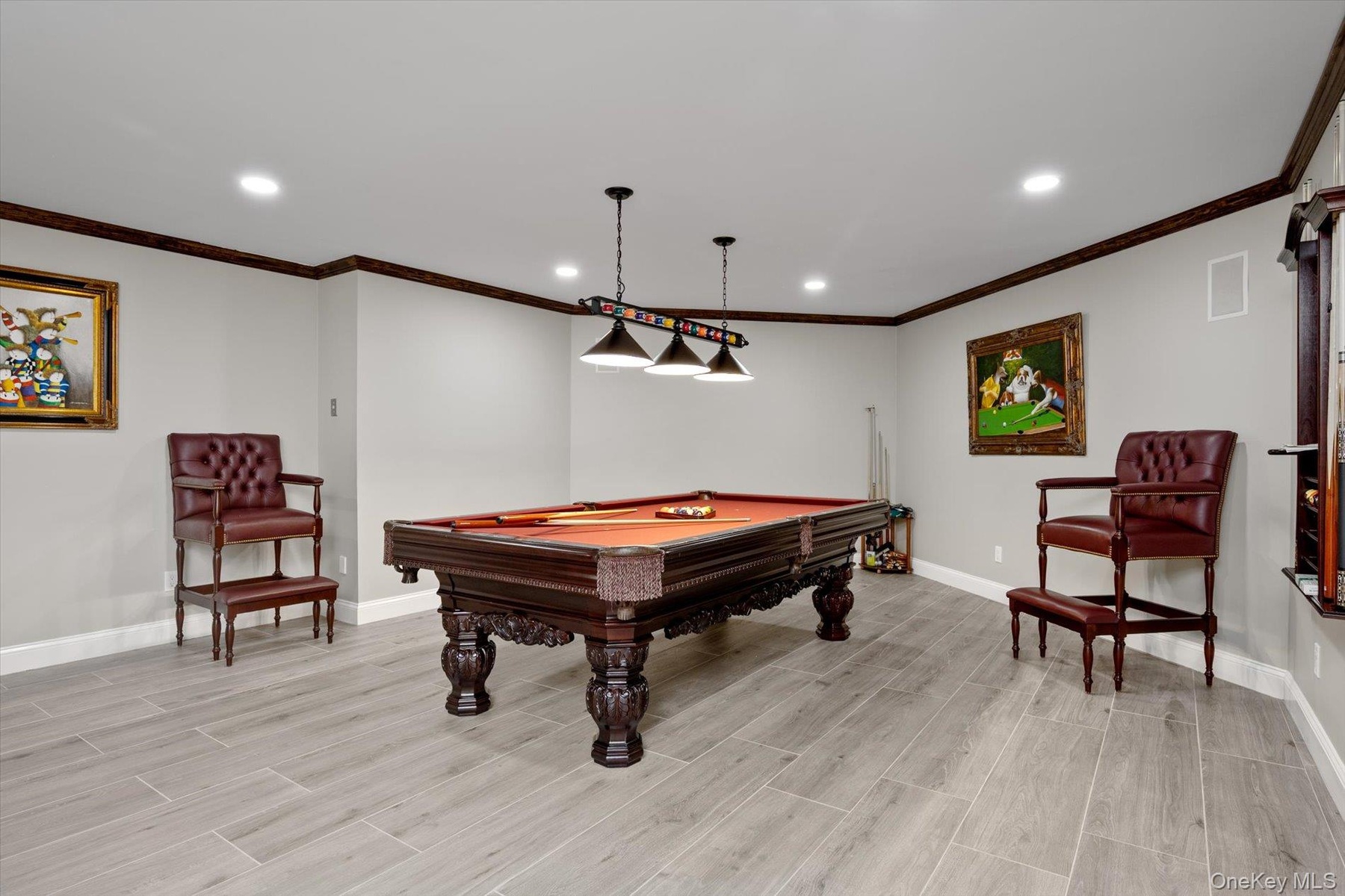 The finished lower level is designed for both recreation and relaxation, featuring a custom bar with Whirlpool ice machine and sink, a secondary kitchenette, cedar closet, gym, two sitting rooms, pool table gaming area, poker area, and a full bath. A built-in dehumidifier, separate entry, and exterior sump pump to (installed in 2022) enhance comfort and function.