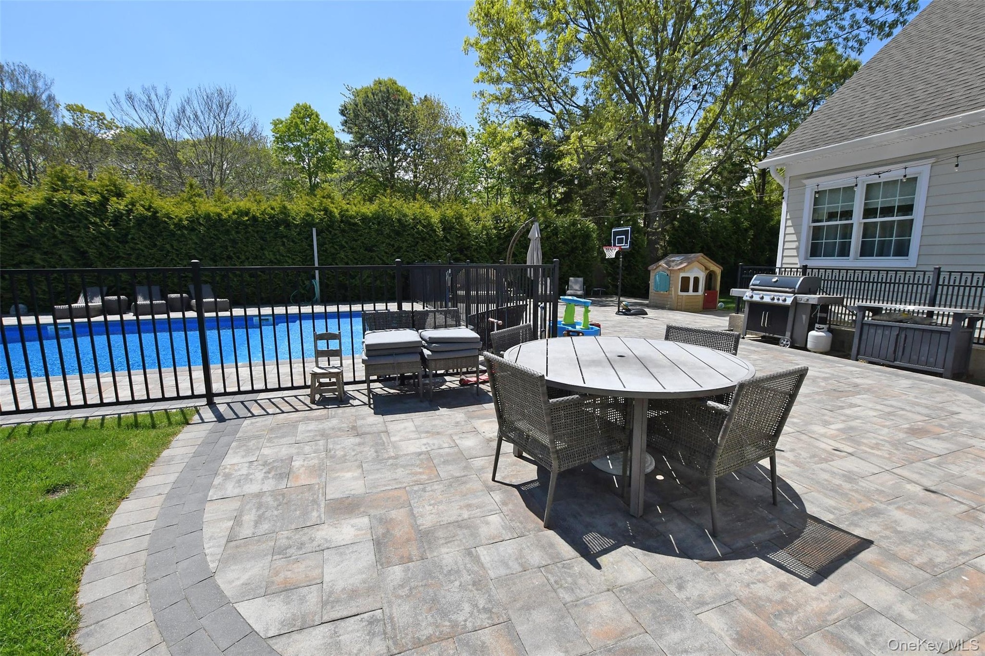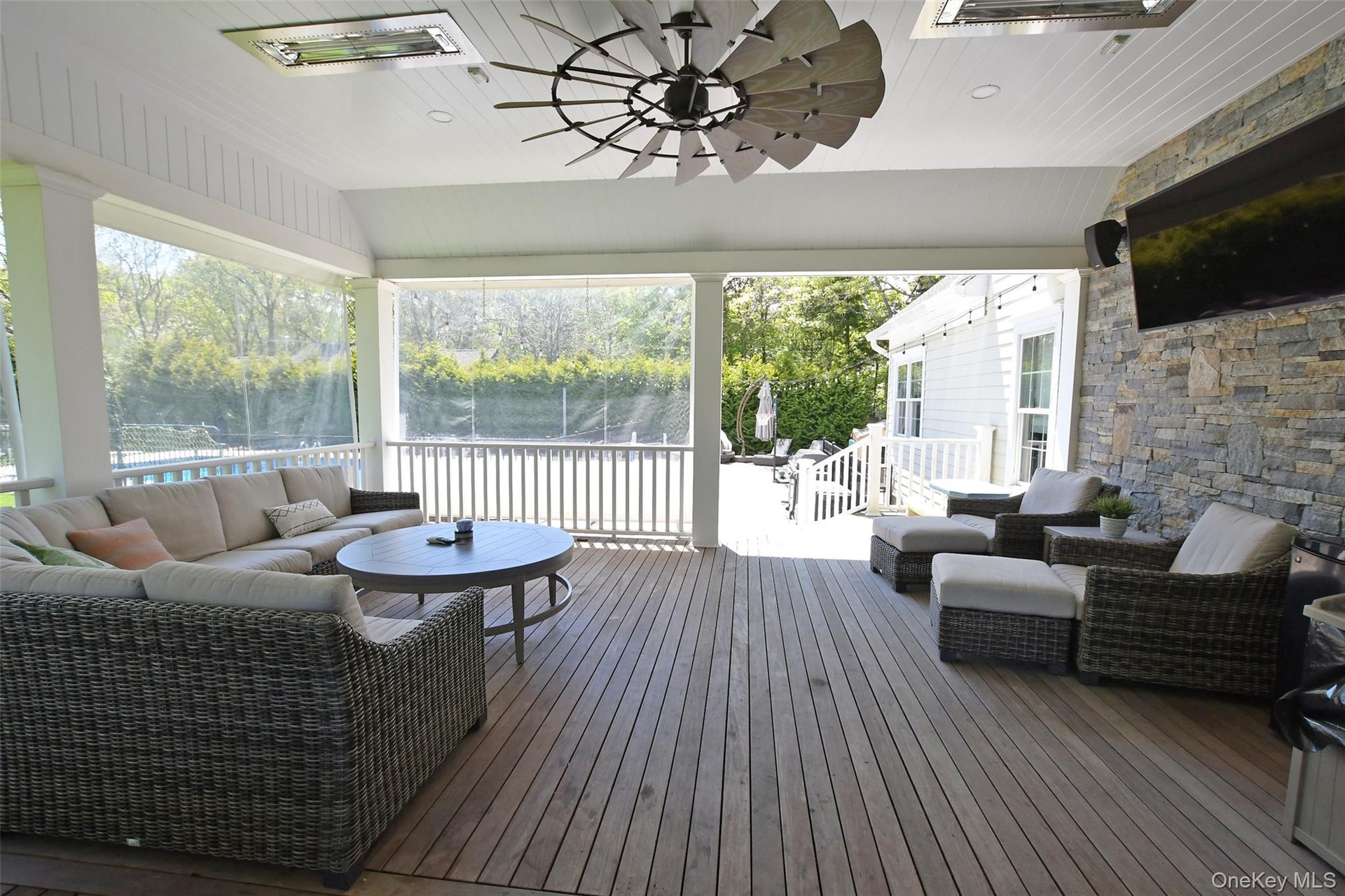 Experience Luxury and Coastal Living in Baiting Hollow. Prepare to be captivated by this stunning 2,775 sq ft residence in the charming Hamlet of Baiting Hollow. Situated on a meticulously landscaped 1.03 acre property, this home seamlessly blends elegance, comfort and modern coastal living. Featuring 3 spacious bedrooms, and a generously sized bonus room currently being used as a fourth bedroom. Three full baths and one half bath, this exceptional home is designed for both relaxation and entertainment. The 20'x40' in-ground pool and newly installed NICOLOCK patio provide the perfect outdoor retreat, while the covered back porch-complete with a custom-cut thin stone feature wall, IPE decking, infrared ceiling heaters and roll-down weather shades-offers year-round comfort. Step inside and be greeted by soaring 11-foot ceilings on the first floor, enhancing the grandeur of the living and family rooms. The family room serves as a stunning focal point, featuring a wood-burning fireplace framed by a stone accent wall and flanked by built-in oak cabinetry. The first-floor primary suite is a private sanctuary, boasting high ceilings a walk-in closet, a pedestal soaking tub and a walk-in glass shower. The gourmet kitchen is a masterpiece, equipped with high-end appliances, white cabinetry, an oversized island and a large pantry. Nearby a mudroom area with full laundry and a half bath adds convenience. On the second floor you'll find two generously sized bedrooms and a generously sized bonus room currently being used as a third bedroom along with two full baths, providing ample space for guests.