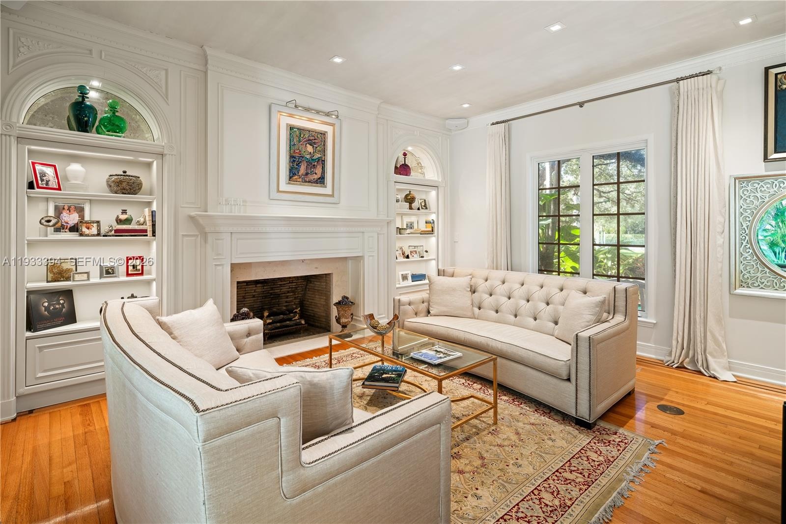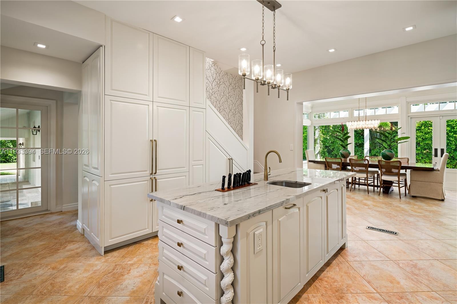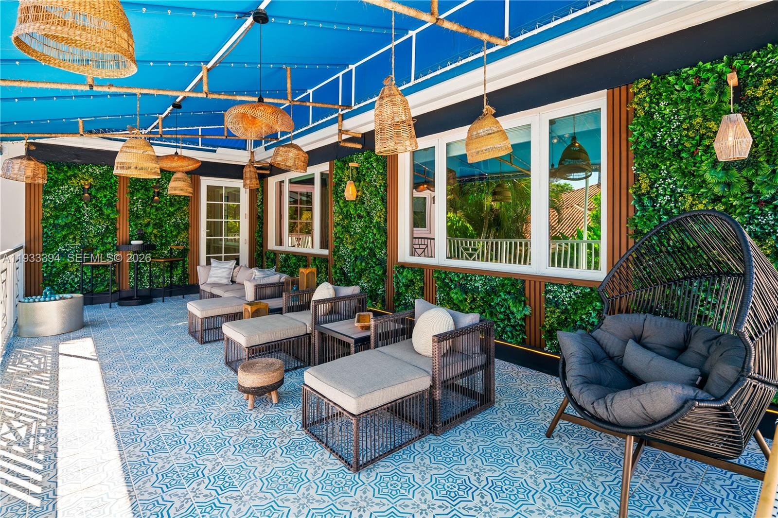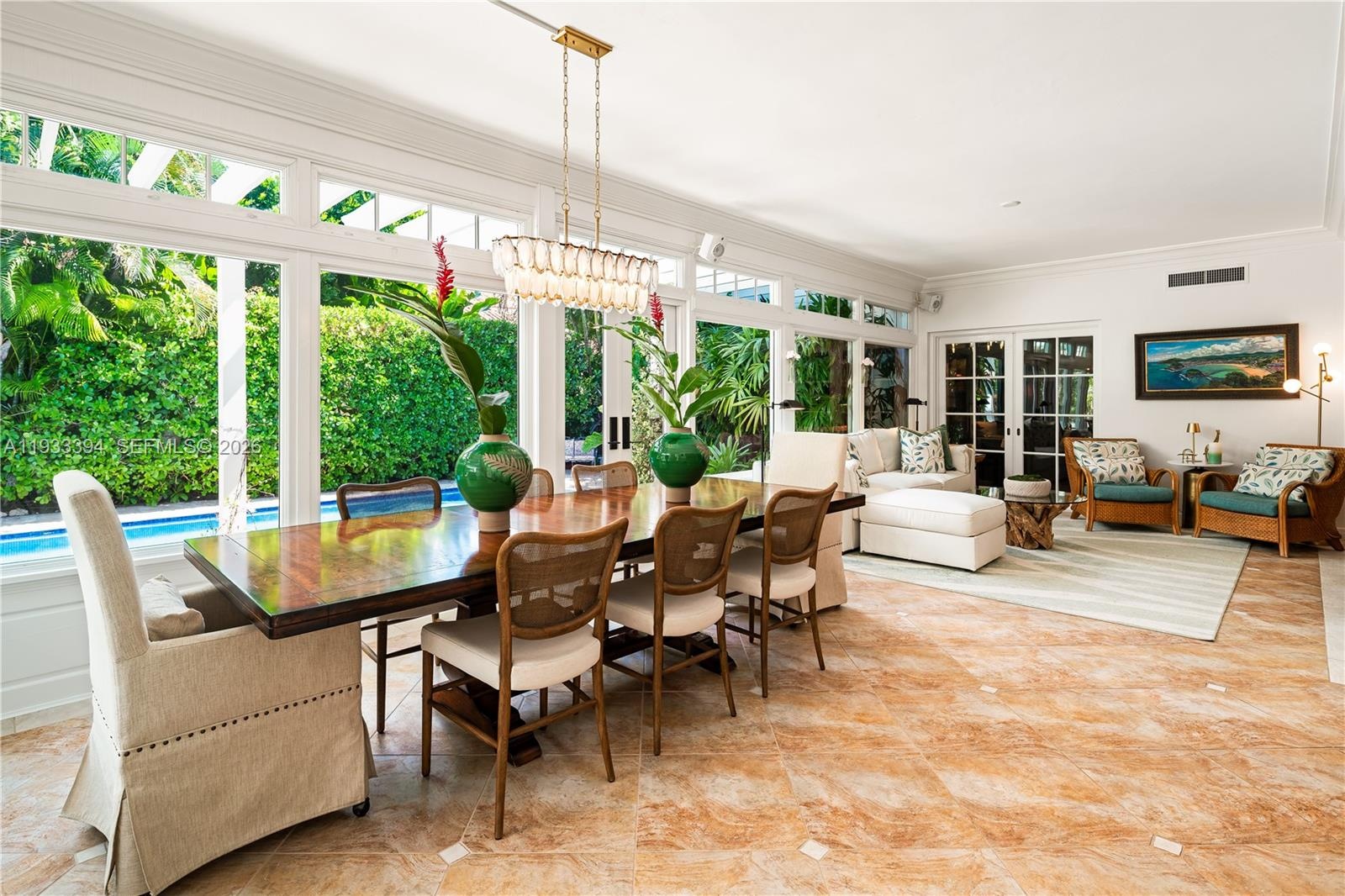 Tucked within the exclusive, gated enclave of Ponce Road Estates—home to only five residences—this Ponce-Davis estate is truly the crown jewel. Set on a generous 3 / 4-acre lot, the 6-bedroom residence (plus home office) showcases exquisite craftsmanship and thoughtful details at every turn. Refined moldings, impact glass, a beautifully remodeled island kitchen with Viking gas range, dual ovens, dual sinks, and a walk-in pantry, along with tastefully updated bathrooms, speak to its elevated design. The primary suite is Architectural Digest–worthy, featuring a spa-inspired bath and an enviable, Instagram-ready closet. Enjoy movie nights in the private media room, morning workouts in the gym, or al fresco gatherings on expansive terraces and balconies overlooking lush, mature gardens. The pool, patio, and summer kitchen create an idyllic backdrop for unforgettable entertaining. An oversized two-car garage and covered carport add convenience, while the community’s own tennis, pickleball, and basketball court complete this rare offering. Located within the super desirable A+ rated Sunset Elementary School. Per appraisers calculations, total living area is 5,521', total adjusted area is 6,313' and total area under roof is 7,937'. A Very Special Home.