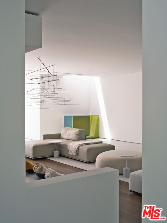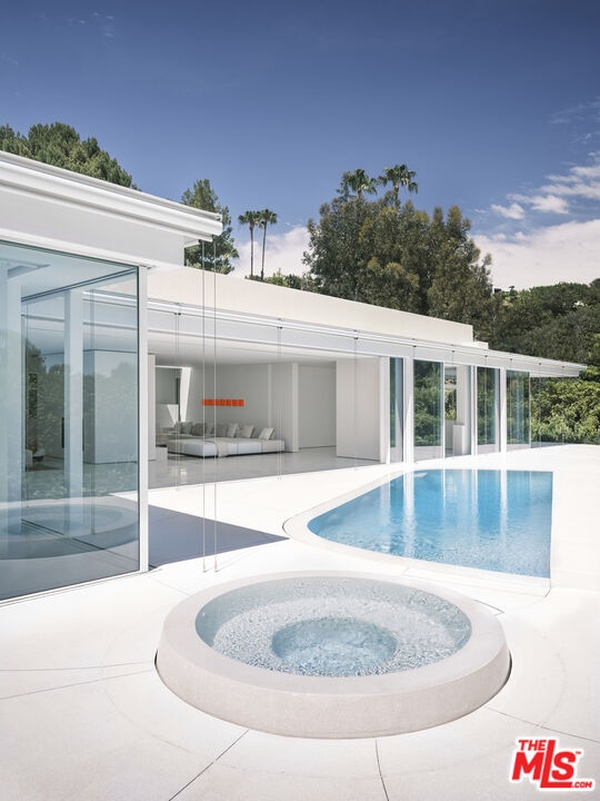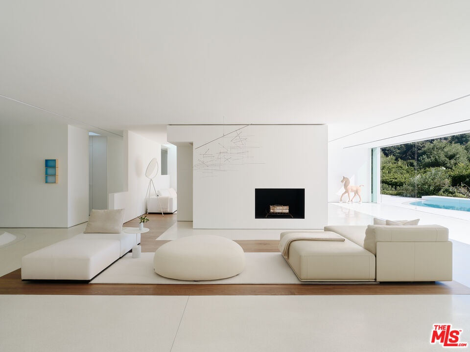 Perched on a serene corner lot in the heart of Trousdale Estates, 510 Arkell is a striking 7,500 SF residence crafted by internationally acclaimed architects Miguel Angel and Rafael Aragones. A harmonious blend of timeless Mexican design and cutting-edge modernism, the home is surrounded by lush greenery, rolling hillsides, and endless blue skies offering the perfect balance of privacy, tranquility, and elevated living. Designed to fully embrace its natural surroundings, the architecture integrates light, air, and temperature, creating a seamless indoor-outdoor flow throughout. Clean lines, soaring volumes, and walls of glass open every room to nature, while a series of reflective pools, interior courtyards, and minimal light boxes add a meditative, sensory richness to the experience. The home features four luxurious bedroom suites, each with private courtyard access, five bathrooms, a media room, and expansive open living and dining areas. The gourmet kitchen is outfitted with top-of-the-line Miele appliances, while every finish, cabinetry, closets, furniture, and custom wall installations has been meticulously handcrafted by Poliform specifically for this home. Terrazzo flooring, bold geometric forms, and museum-quality detailing elevate every corner of the space. Cutting-edge technology blends seamlessly with design, including a Bang & Olufsen sound system, Styline sliding glass walls for unobstructed flow, and color-changing LED lighting that transforms the mood of the home from day to night. A permitted rooftop lounge with an outdoor kitchen, plunge bath, garden dining area, and panoramic city views completes this extraordinary offering. 510 Arkell is more than a home, it's a private sanctuary and a rare work of art, thoughtfully designed for the senses and built to inspire.