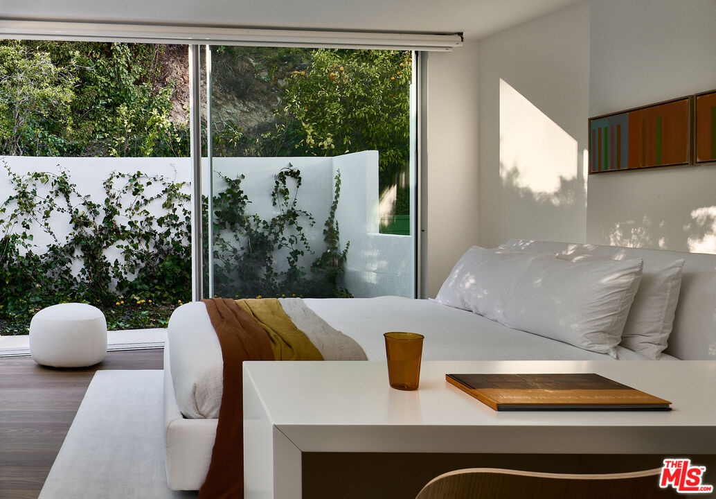 Perched on a serene corner lot in the heart of Trousdale Estates, 510 Arkell is a striking 7,500 SF residence crafted by internationally acclaimed architects Miguel Angel and Rafael Aragones. A harmonious blend of timeless Mexican design and cutting-edge modernism, the home is surrounded by lush greenery, rolling hillsides, and endless blue skies offering the perfect balance of privacy, tranquility, and elevated living. Designed to fully embrace its natural surroundings, the architecture integrates light, air, and temperature, creating a seamless indoor-outdoor flow throughout. Clean lines, soaring volumes, and walls of glass open every room to nature, while a series of reflective pools, interior courtyards, and minimal light boxes add a meditative, sensory richness to the experience. The home features four luxurious bedroom suites, each with private courtyard access, five bathrooms, a media room, and expansive open living and dining areas. The gourmet kitchen is outfitted with top-of-the-line Miele appliances, while every finish, cabinetry, closets, furniture, and custom wall installations has been meticulously handcrafted by Poliform specifically for this home. Terrazzo flooring, bold geometric forms, and museum-quality detailing elevate every corner of the space. Cutting-edge technology blends seamlessly with design, including a Bang & Olufsen sound system, Styline sliding glass walls for unobstructed flow, and color-changing LED lighting that transforms the mood of the home from day to night. A permitted rooftop lounge with an outdoor kitchen, plunge bath, garden dining area, and panoramic city views completes this extraordinary offering. 510 Arkell is more than a home, it's a private sanctuary and a rare work of art, thoughtfully designed for the senses and built to inspire.