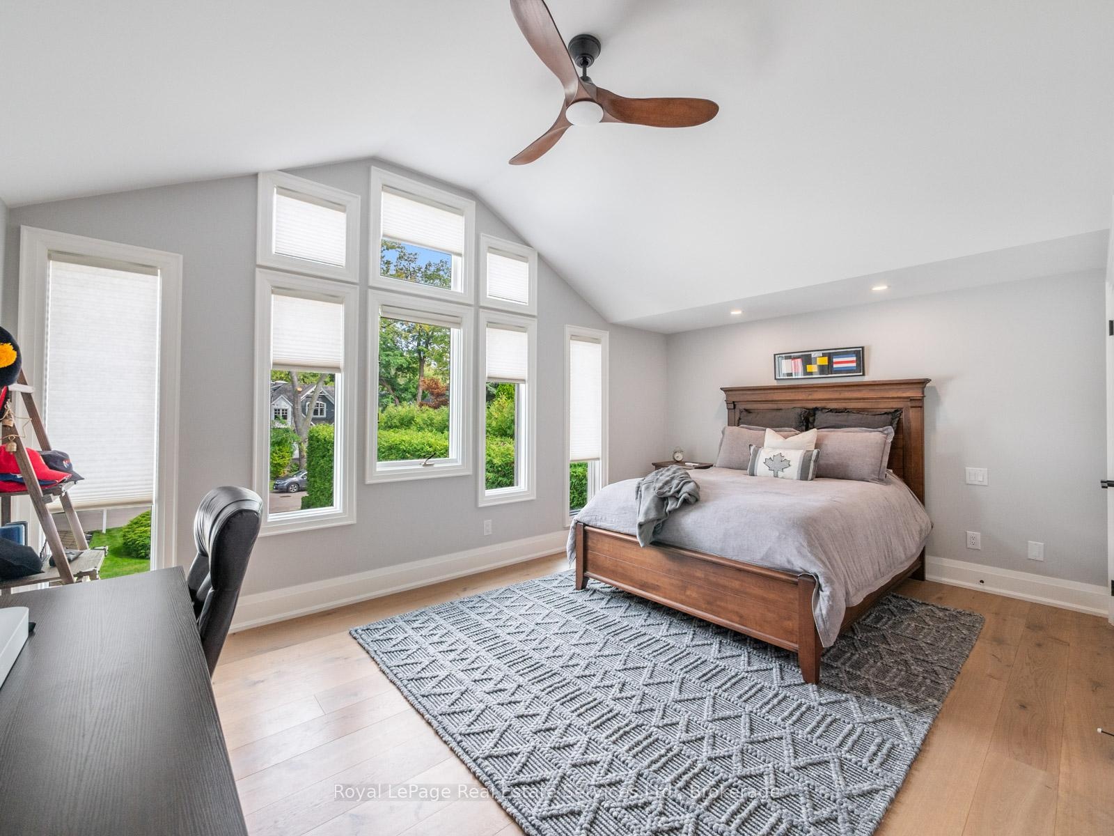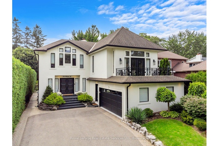 Step into timeless coastal charm at 74 West Street, a meticulously designed residence nestled in one of Bronte's most coveted enclaves. This stunning home blends relaxed lakeside elegance with upscale modern living, offering the perfect family home just steps from the lakefront, marina, and charming Bronte Village. On an 213 foot deep lot with over 5000 square feet of living space and thoughtfully curated interiors, this home is a masterclass in light, space, and natural textures. It has been completely redone with white oak flooring, shiplap accents, new kitchen, baths, windows and new interior throughout with soft neutral tones that echo the tranquility of the nearby shoreline, while expansive windows flood the home with sunlight and invite in calming lake breezes. The heart of the home is the gourmet kitchen, featuring custom cabinetry, quartz countertops, and premium appliances, ideal for both casual family meals and elegant entertaining. The open-concept living and dining areas flow seamlessly to a beautifully private landscaped backyard oasis with pool, hot tub and lush gardens perfect for summer evenings and al fresco gatherings. The primary suite is a serene retreat, complete with a spa-inspired ensuite and private balcony. Additional bedrooms are spacious and light-filled, with flexible options for home offices or guest accommodations. The lower level features an additional bedroom and full bath, family room, laundry, home office, gym and storage. Just moments from Bronte Harbour, local shops, cafes, waterfront trails, and top-rated schools, 74 West Street offers an unmatched lifestyle in one of Oakville's most picturesque settings.