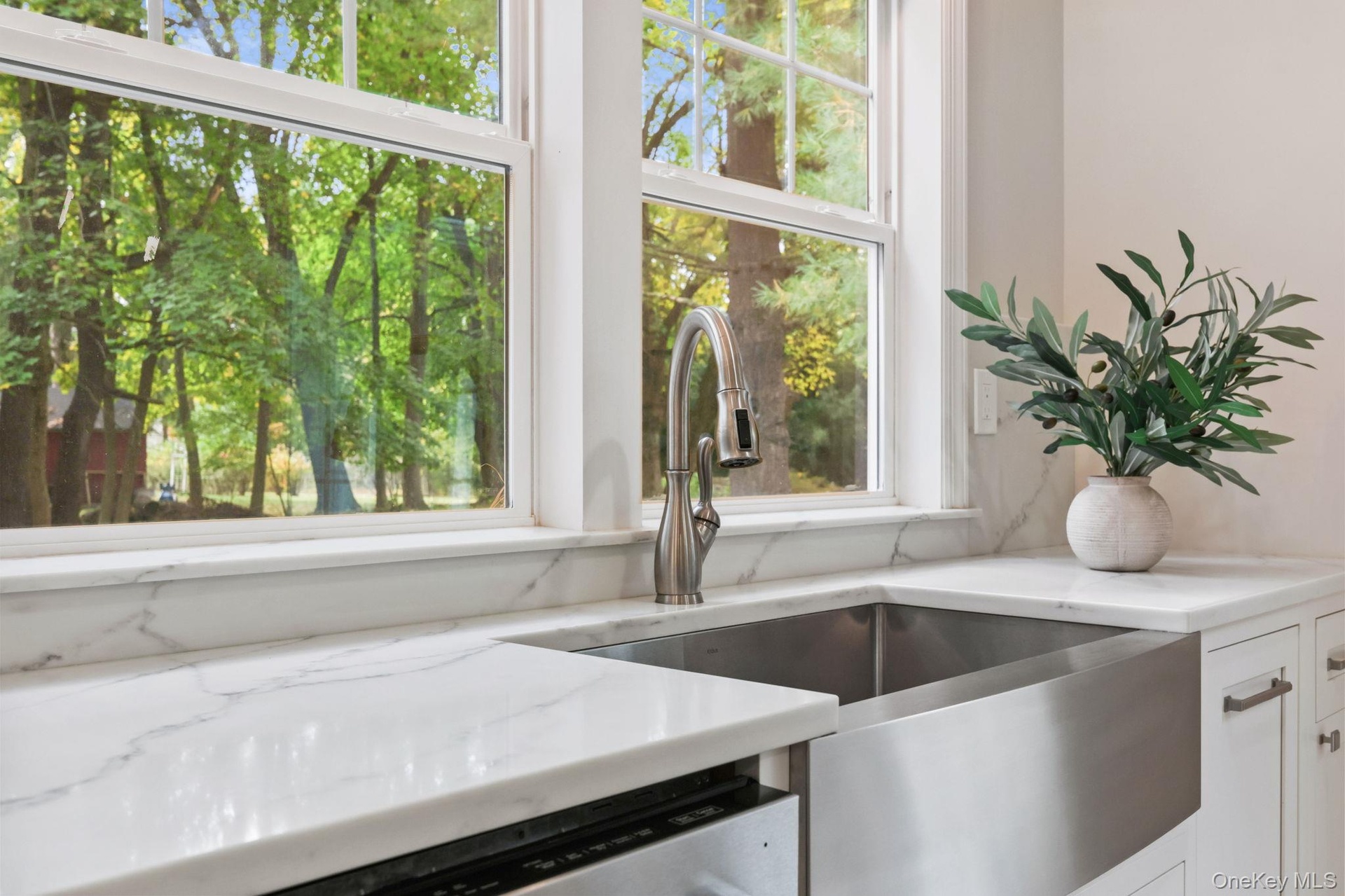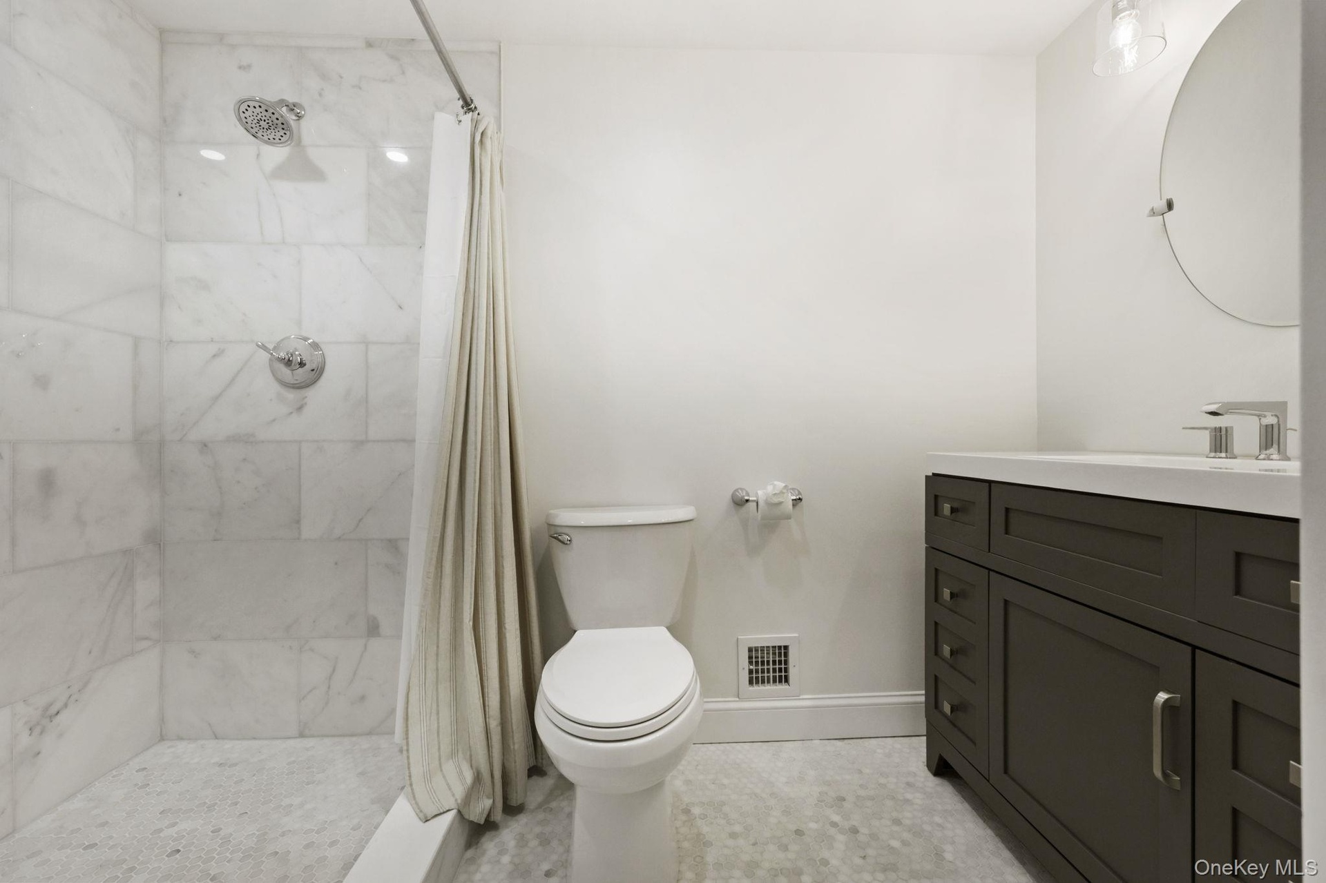 Upstairs, the primary suite is a true sanctuary. Spacious and serene, it features an oversized walk in closet and a luxurious marble spa bath with double vanity and an expansive walk in shower. Two additional bedrooms are generously sized and share a beautifully updated marble hall bath.