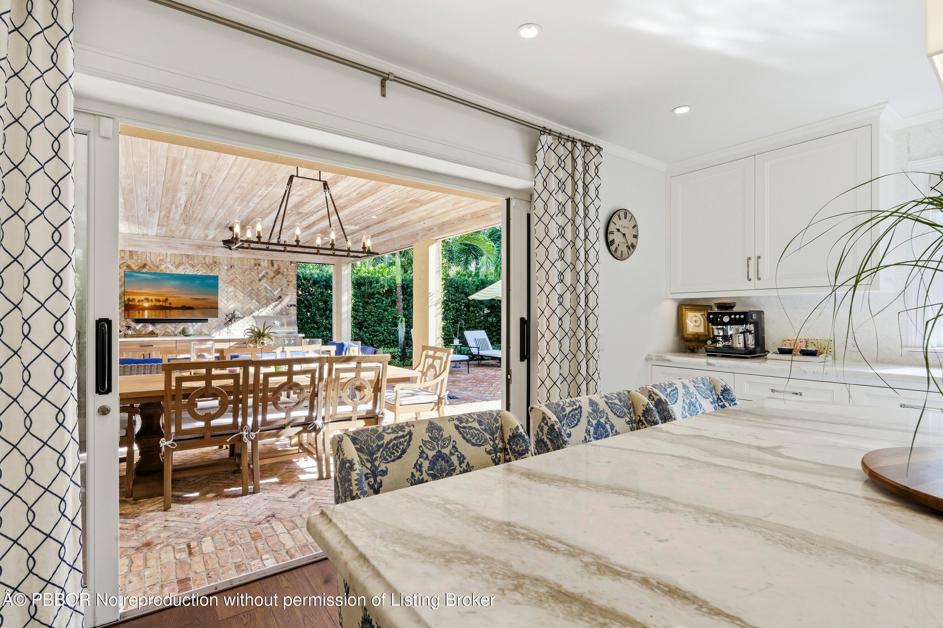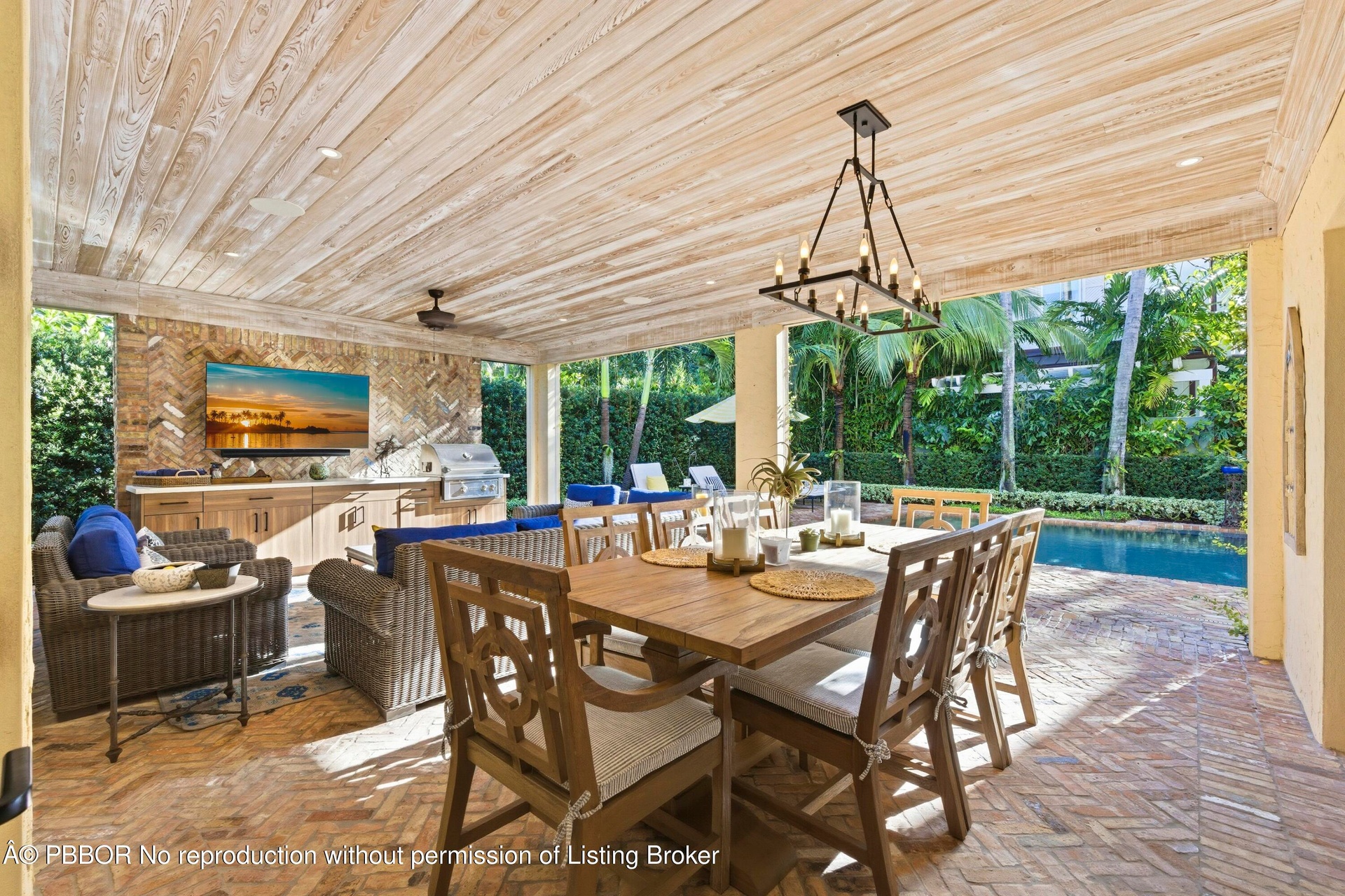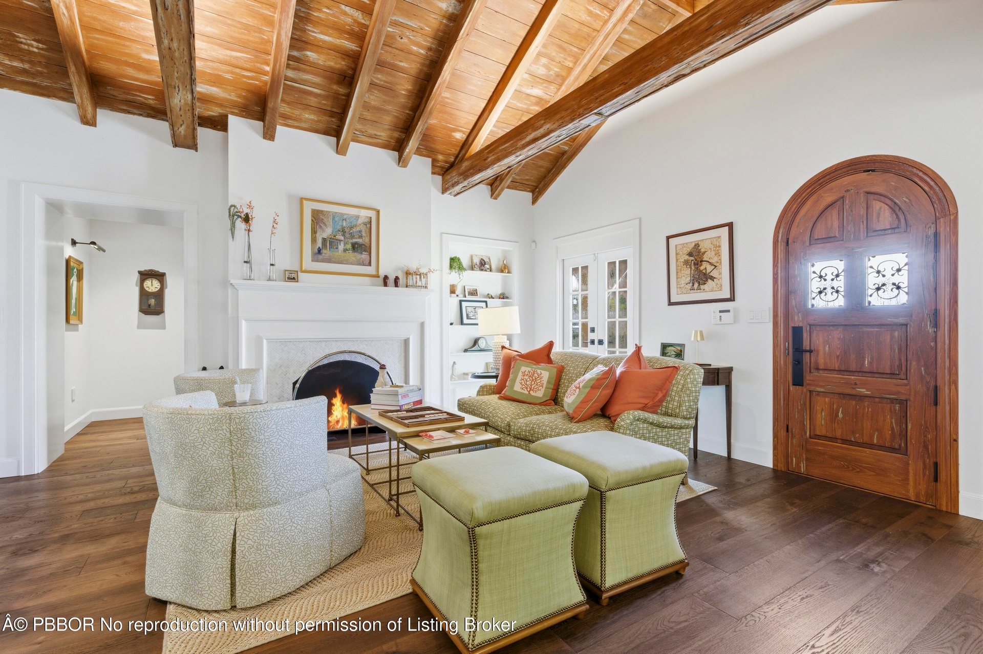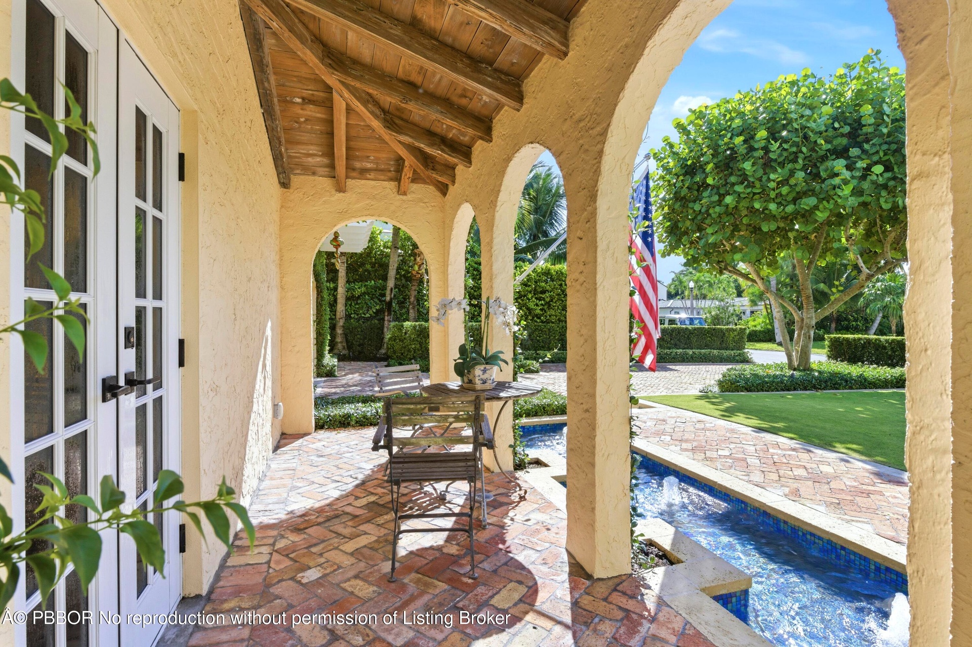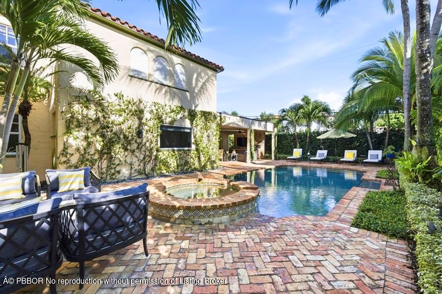 Set on one of the most prestigious streets South of Southern (SoSo), 245 Murray Road is a Spanish Mediterranean estate that has been completely reimagined by the renowned architectural firm Spina O'Rourke. Behind its custom pecky cypress front door, the residence unveils a grand living room with soaring 13-foot vaulted ceilings, dramatic pecky cypress beams, a marble fireplace, tongue-and-groove detailing, and wrought-iron accents that carry through the home. The formal dining room is equally captivating with its pecky cypress ceiling, chandelier, and oak hardwood flooring. Designed for entertaining, the main level offers a theater room, billiards lounge with a custom bar, and a warm family room that flows seamlessly into the chef's kitchen where marble countertops, a full marble backsplash, Thermador 6-burner gas range with griddle, oversized island, and dual chandeliers combine form and function. Pocketing sliders lead to a covered lanai with bleached pecky cypress ceilings, Chicago brick pavers, a full summer kitchen, phantom screens, and multiple dining and lounging spaces. The private quarters include a first-floor guest suite with a custom marble bath and built-in closet system, while the second level reveals a loft with morning bar, storage, and three spacious guest suites all with custom millwork, marble baths, balconies, and designer details. The primary suite is a true retreat featuring a sitting area, pendant and recessed lighting, an expansive 16-foot custom walk-in closet, and a spa-inspired bath with marble mosaic floors, dual vanities, makeup area, soaking tub, and oversized shower. Outdoors, a Chicago brick courtyard surrounds the heated 33 x 15 ft. PebbleTec saltwater pool with 6 ft. spillover spa, fire pit lounge, and lush tropical landscaping. Every finish and detail has been meticulously curated, making this estate a rare opportunity to own a fully transformed architectural showpiece in one of West Palm Beach's most sought-after locations. Enjoy a walkable coastal lifestyle just blocks from the Intracoastal and Flagler Drive. Centrally located, you're minutes from Palm Beach, the financial district, Kravis Center, Rosemary Square, Worth Avenue, pristine beaches, fine dining, premier shopping, and PBI Airport.