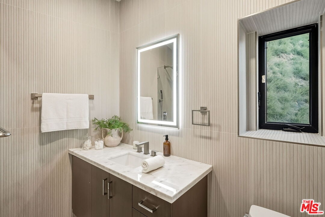 Discover the ultimate in contemporary Los Angeles luxury in this new construction home, completed in 2025 and situated in a prime Sunset Strip location favored by celebrities. This stunning residence seamlessly blends modern sophistication with unparalleled comfort, offering an exceptional lifestyle opportunity along with breathtaking city views. This brand new home, which has never been lived in, provides approximately 3,371 square feet of thoughtfully designed living space featuring 3 bedrooms and 3.5 bathrooms, characterized by luxury and innovation throughout. The entry level features a 3-car garage with epoxy floors and WiFi-enabled openers, along with a customizable spare room perfect for a home office, gym, or wellness area. Designed for seamless entertaining, the residence includes a private guest suite with a dedicated home theater and a sophisticated custom bar accented by stunning back-lit Cristalo stone. The heart of the home showcases breathtaking views and features a gourmet kitchen equipped with all-new Thermidor appliances, complemented by a dramatic custom back-lit Cristalo stone island and a convenient walk-in pantry with a built-in wine rack.Maple wood flooring and linear LED ceiling lights create a bright, airy ambiance, extending out to a sprawling patio with captivating Los Angeles skyline views. The private retreat levels offer a primary suite with unobstructed views of Downtown LA and a spa-like bath featuring a soaking tub, a walk-in shower with wall jets, a switchable privacy window, and a custom automatic toilet/bidet. An additional bedroom with a private bath and panoramic views, along with a well-placed laundry room, completes the upper-level sanctuary. The rooftop is designed for ultimate relaxation and entertaining, boasting a stunning patio and garden area anchored by a fully built-out in-ground heated spa. Throughout the residence, every detail has been elevated, including WiFi smart switches, recessed lighting, and back-lit mirrors in all restrooms. Outdoor luxury is extended with Bluetooth speakers at the balcony and Romeo/Juliet balconies on multiple levels. This prime location offers easy access to top restaurants and attractions in West Hollywood and Beverly Hills, making it the perfect turnkey retreat.