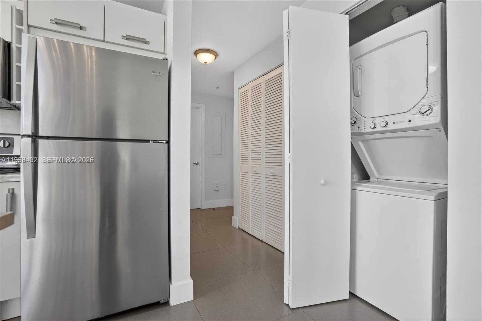 Experience the best of North Beach living in this contemporary 2-bedroom, 2-bath residence at the boutique Vilamur Condominium, complete with two assigned parking spaces. Own your slice of paradise just steps from multimillion-dollar homes, lush parks, volleyball courts, scenic boardwalks, top dining, and the ocean itself. This striking bi-level loft features soaring 20-foot ceilings and expansive floor-to-ceiling windows that flood the space with natural light. As a corner unit, it offers enhanced privacy and an airy, open feel. The modern kitchen is outfitted with stone countertops, stainless steel appliances, and plenty of natural light. Upstairs, the open loft-style primary suite includes its own ensuite bathroom and expansive closet with built-ins. The guest bedroom and second full bath are conveniently located on the main level.