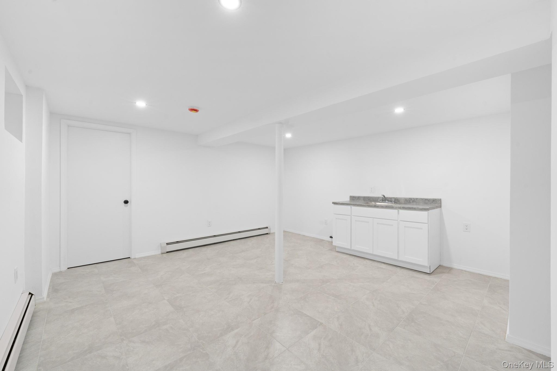 The high ceiling full finished basement has both interior and exterior access. With its unique setup this space is equipped with a additional bedroom, bathroom, and summer kitchen. Ideal space for guest, in-law unit, or additional recreational space.