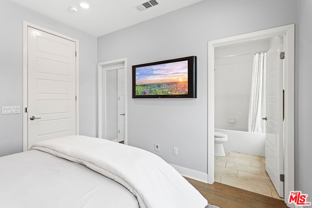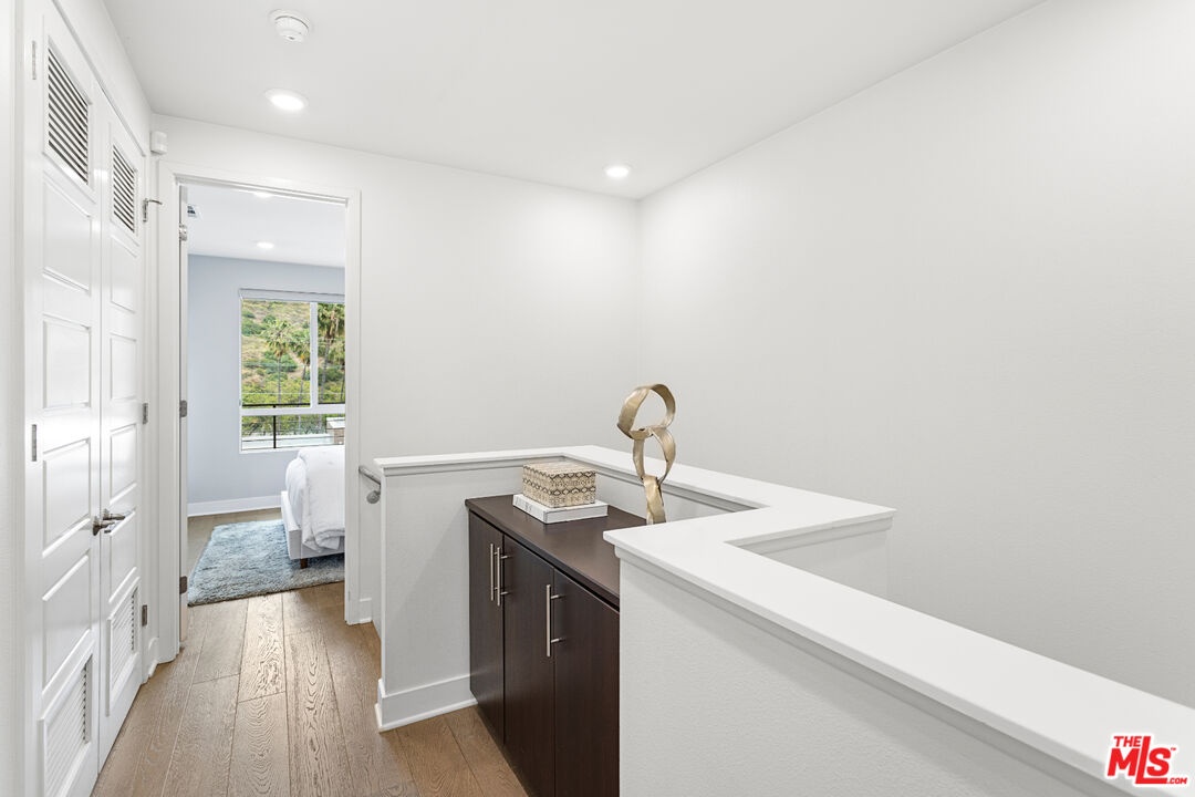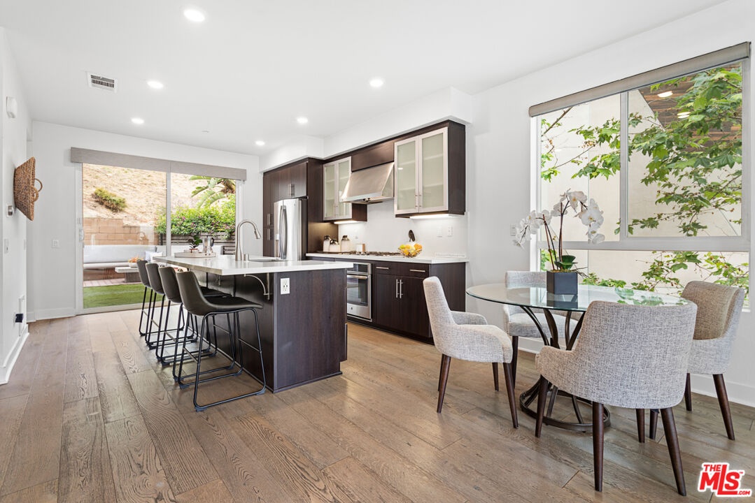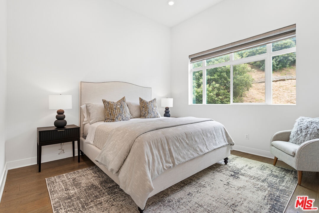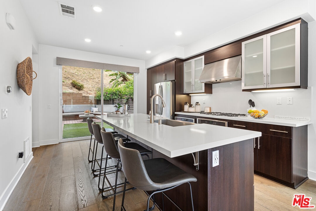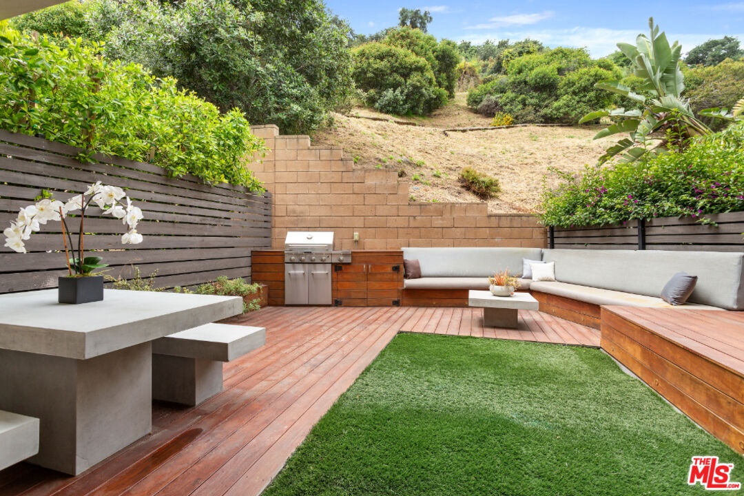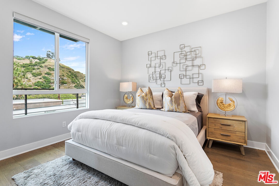 Welcome to the premier gated community in the Hollywood Hills and its finest residence. This turnkey 3-bedroom, 3.5-bath multi-level end unit is flooded with natural light from three exposures, a rare privilege shared by only two homes in the community.The main level features an open-concept kitchen thoughtfully designed with custom cabinetry, Caesarstone countertops, and top-of-the-line stainless steel appliances. This level also includes a guest bath and a spacious living area with "walls of windows" and large sliding doors that open to your backyard oasis, one of the largest in the community. This upgraded outdoor space is ideal for entertaining and includes custom built-in seating and a fully equipped BBQ kitchen surrounded by nature and the greenery of the hills.Upstairs are two large en-suite bedrooms, including the primary suite with lofted ceilings. Your primary bedroom features an incredible primary bath featuring dual sinks, oversized shower and an oversized walk in closet. On the entry level, the home offers an additional en-suite guest bedroom along with a private two-car garage.Built in 2015, the home is equipped with smart-home features including a Nexia and Ring automated system, programmable thermostat, energy-efficient lighting, tankless water heater, high efficiency Washer/Dryer, insulated air ducts, and high-performance windows with push-button Hunter Douglas automated blinds backed by a lifetime warranty.Ideally located near the Hollywood Bowl and Runyon Canyon, and only a minutes to the valley, this home offers an exceptional balance of privacy, convenience, and elevated city living. Whether you are looking for your new primary residence or looking to find a rental property that will fetch a premium, this has it all.