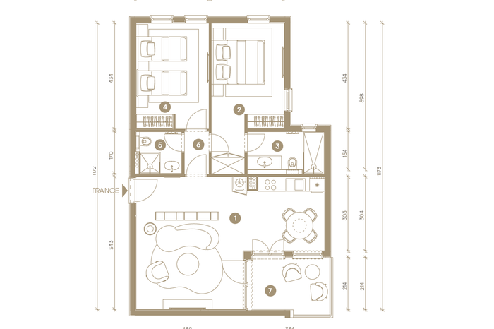 The apartment features a well-planned layout that maximizes space and natural light: