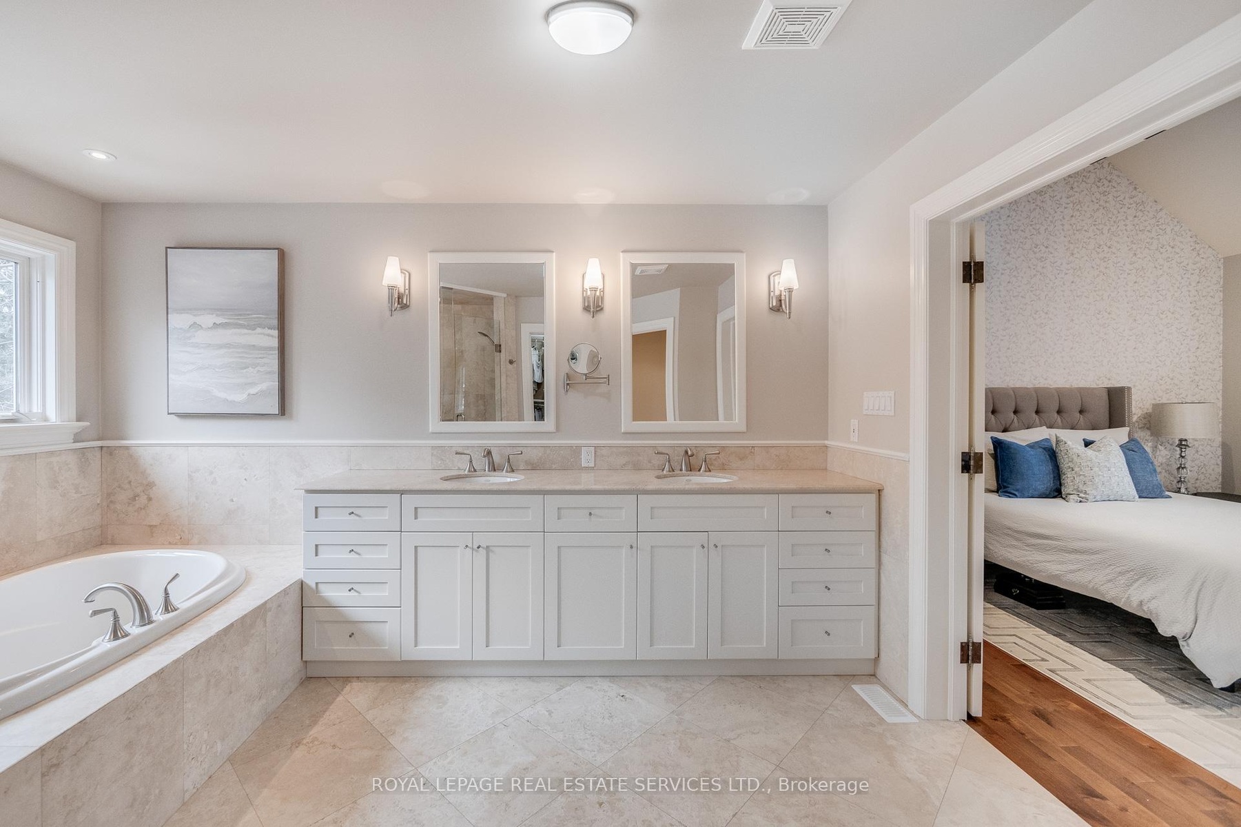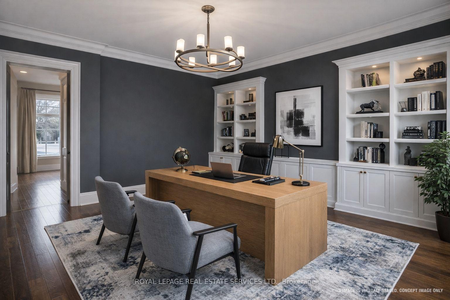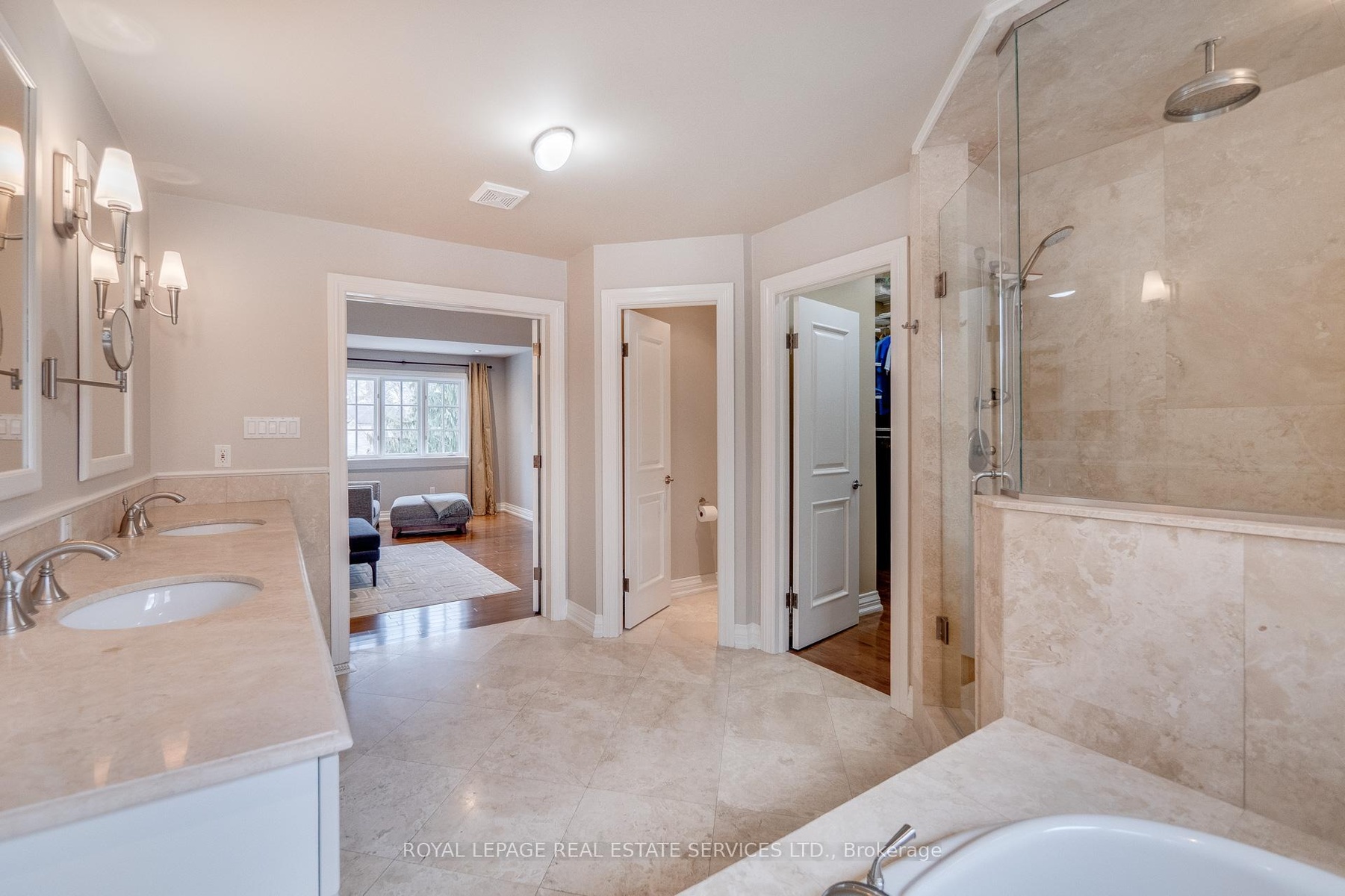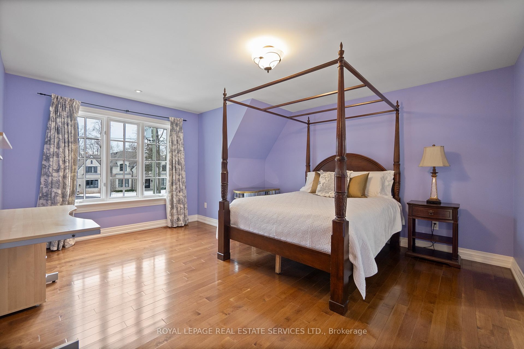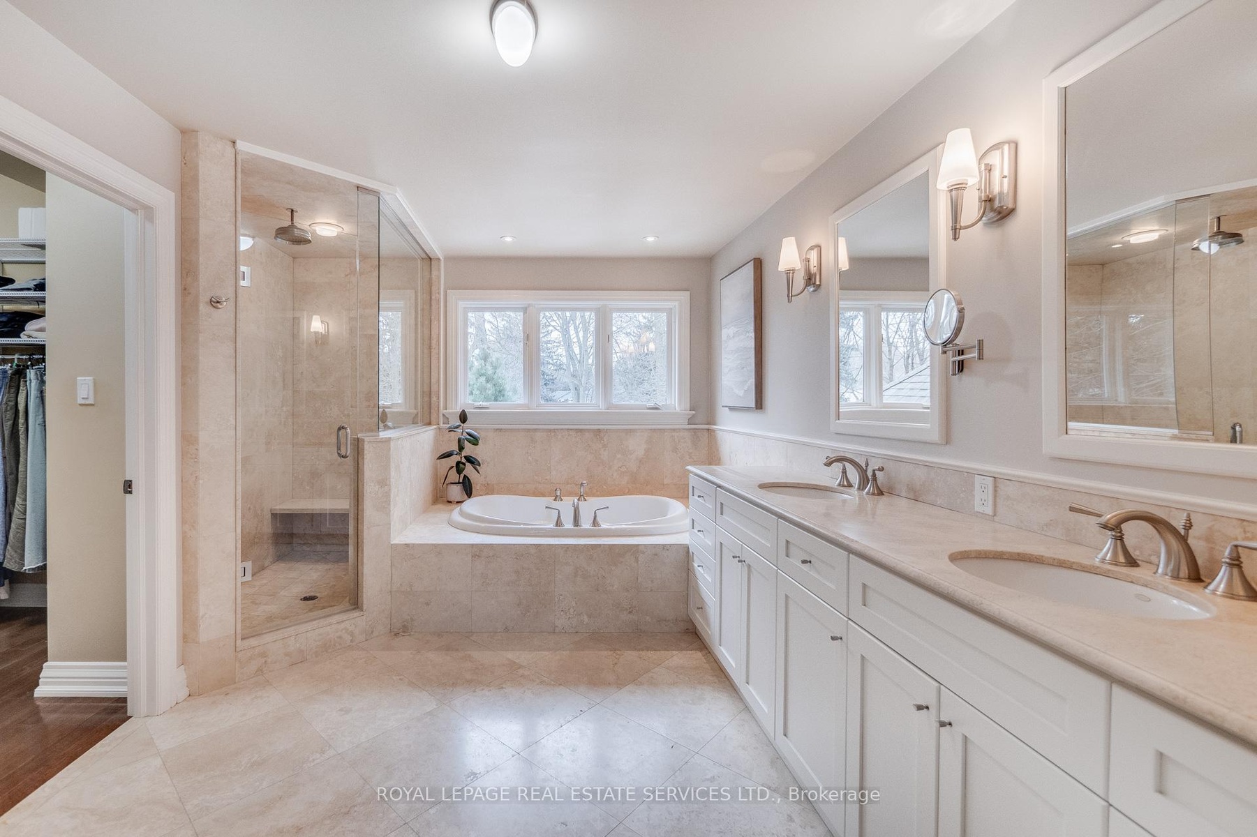 Sensational home designed by David Small and built by Venchiarutti Builders. This magnificent home is steps from Lake Ontario, Rattray Marsh walking trails, Meadow Wood Tennis Club and Meadow Wood Lakefront Park Mississauga. Uniquely designed inclusive of optimal areas for family living and entertaining. Should you require a "MAIN FLOOR PRIMARY BEDROOM" for a family or guests along with ensuite, sitting room and walkout to private deck you have found home. If desired, this space can be easily transformed into a "FORMAL LIVING ROOM AND DINING ROOM". The Gourmet kitchen features quartz counters, oversized centre island, appliances feature a gas Wolf cooktop, Miele Dishwasher, KitchenAid refrigerator & ovens, built-in bar fridge and wall to wall glass windows inclusive of walkout to yard. Stunning open concept family room with built-ins, wood burning fireplace and picture views of mature setting. Private yet welcoming main floor study/office with built-ins to suit all ones needs. Upper level of residence is most impressive with high ceilings, secluded main primary bedroom along with oversized ensuite. Picture windows throughout the entire upper level share views of the rising sun, sunsets and when they are open the simmering sound of the waves touching the shore. Lower level welcomes the activity area of lower family room with gas fireplace, gym area with glass for loads of light, wet bar and a separate nanny's suite. One may consider this entire level for a family member or simply a house guest to enjoy. Attention to detail is evident throughout from the impeccably maintained interior to breathtaking private treed backyard oasis inclusive of pool, waterfall, hot tub, pergola, shed, covered outdoor kitchen area and underground irrigation system.