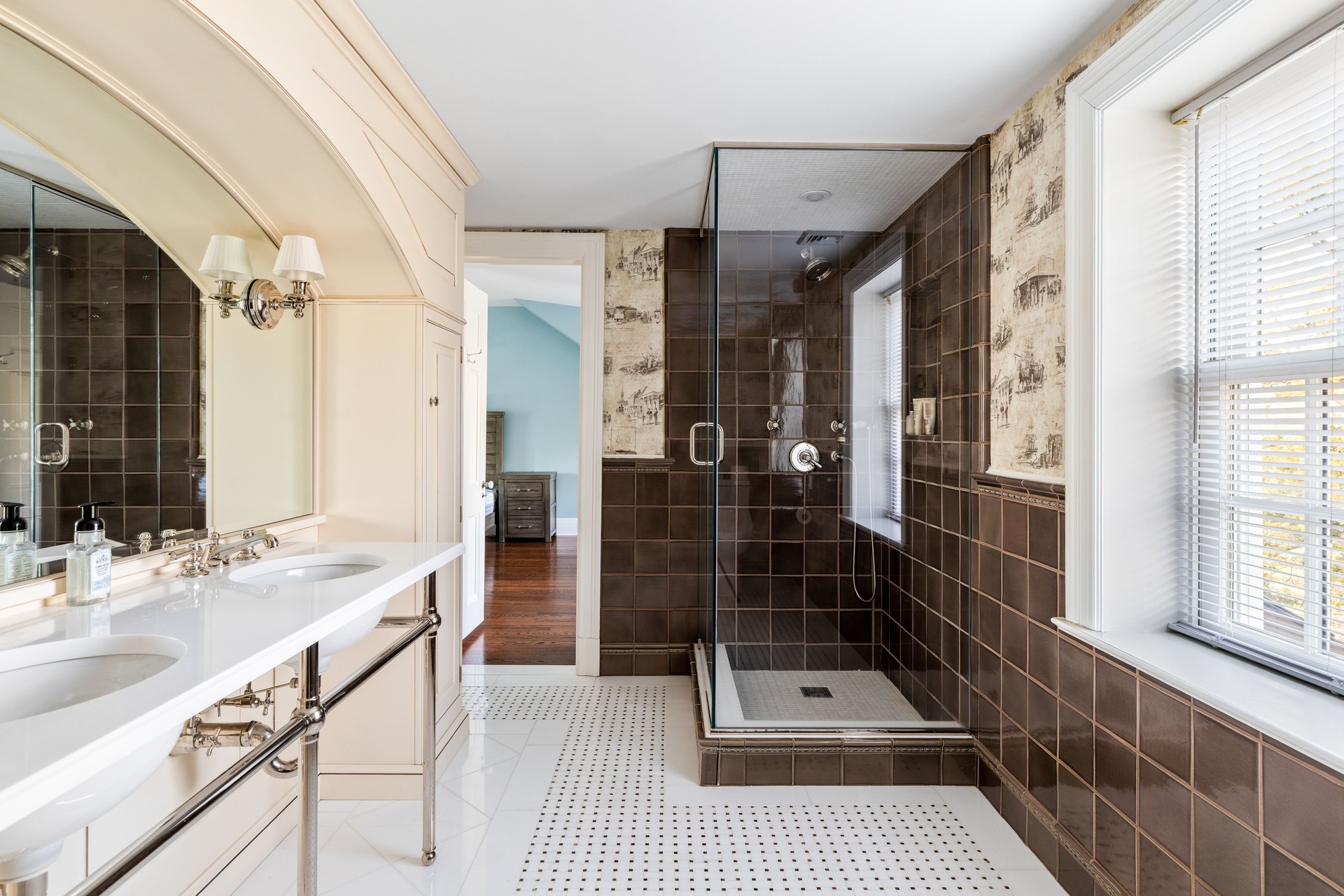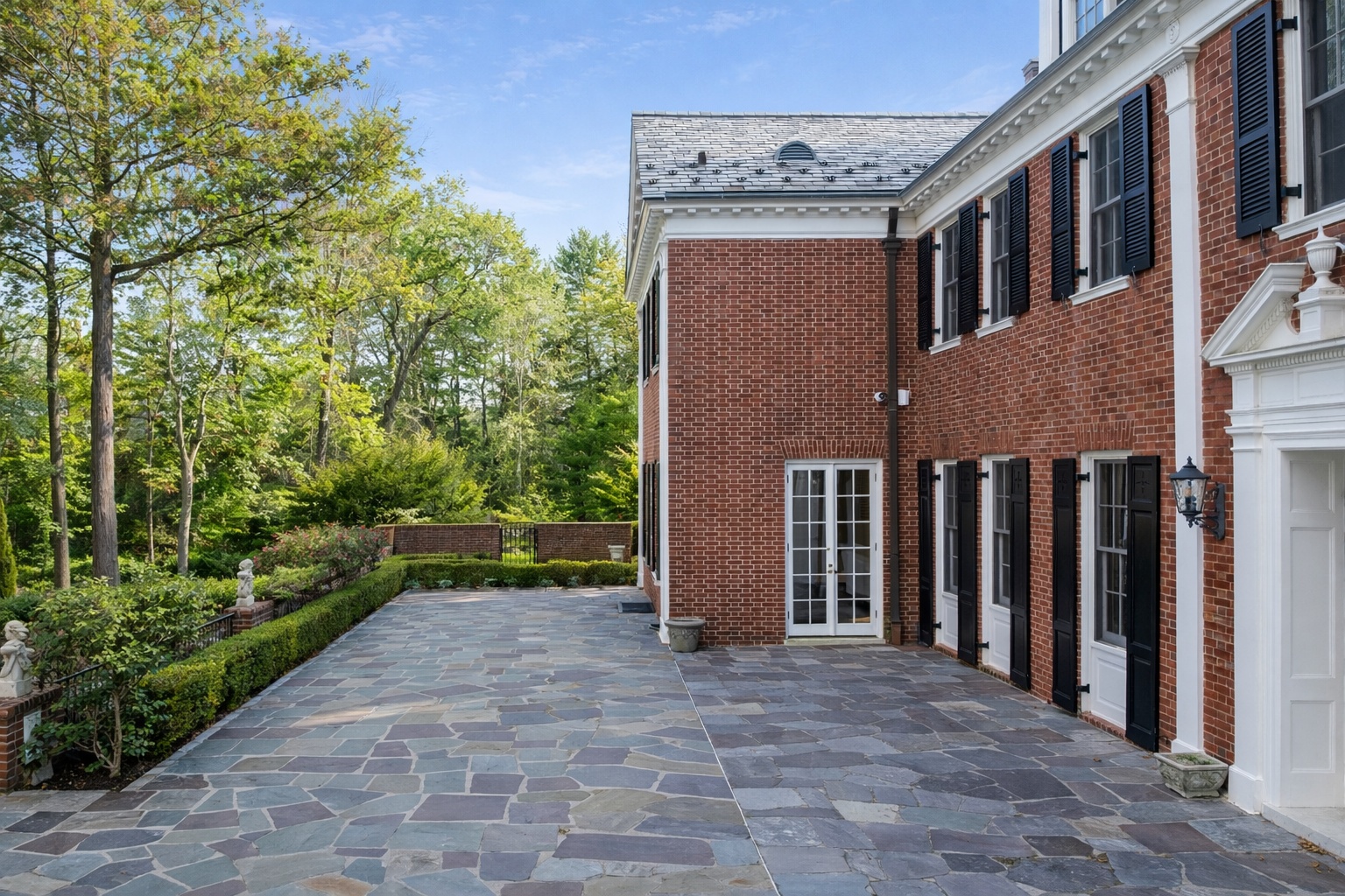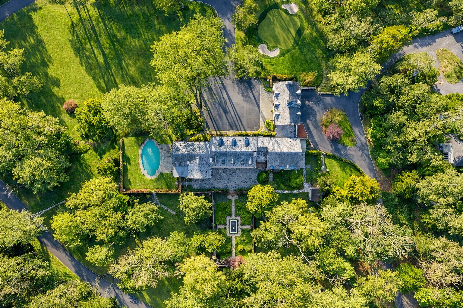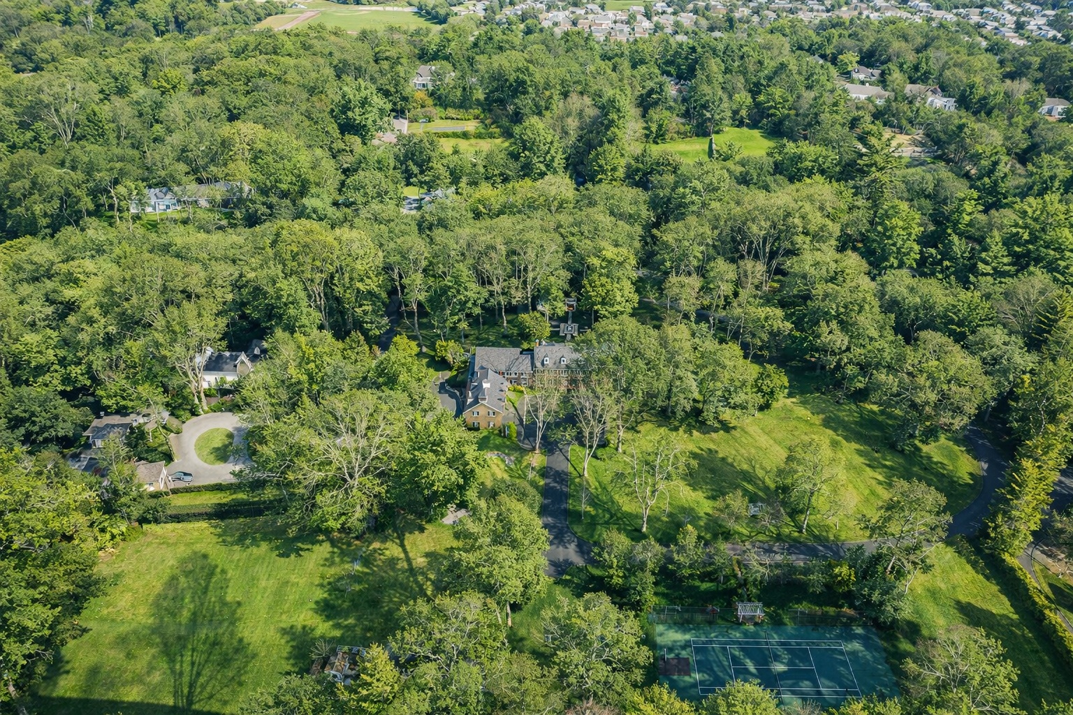 Tucked behind a private gated drive and set across over eight pristine acres, this iconic 1916 manor estate has been comprehensively restored and strategically enhanced to meet the expectations of today’s most discerning buyer. Historic architecture remains intact, while modern systems, technology, and amenities have been elevated to a truly exceptional level. Grand formal living and dining rooms feature museum-quality moldings and millwork, offering a refined backdrop for both intimate gatherings and large-scale entertaining. The gourmet kitchen is designed for serious cooking and seamless hosting, flowing naturally into the home’s main living spaces. A striking paneled library with wood-burning fireplace provides a moody, private retreat, while the showstopping 23’ x 44’ great room by Smiros & Smiros commands attention with 16-foot ceilings and a dramatic stone fireplace—engineered for memorable entertaining. The primary suite functions as a true private residence within the home, complete with a separate sitting room, coffee bar, and half bath, a spa-caliber marble bathroom with radiant heated floors, and dual dressing rooms. Five additional en-suite bedrooms, including a fully ADA-accessible suite, along with an office overlooking the gardens, complete the second level. Amenities rival those of a private resort, including a paneled elevator, indoor endless lap pool, catering kitchen, dog spa, a fully refreshed gym, and a discreet panic room / walk-in vault offering an elevated level of security. For the automotive collector, the estate delivers rare flexibility: a heated three-car garage with soaring ceiling heights designed to accommodate lifts for up to six vehicles, complemented by two additional single-car garages. The grounds are equally intentional. A new slate roof, heated gunite pool, Har-Tru tennis court with lighting (recently resurfaced and fenced), putting green, English gardens, playhouse, and curated outdoor lighting create a private, park-like setting designed for year-round enjoyment. Extensive masonry restoration, irrigation repair, landscape clearing, and exterior upgrades have been executed at scale. Behind the scenes, the home has undergone substantial systems modernization, including new and serviced HVAC, complete attic insulation, comprehensive electrical upgrades, restored fireplaces, upgraded pool infrastructure, a fully serviced gate and telecom system, and enterprise-grade security with AI-enabled cameras and property-wide WiFi coverage. The interior has been fully refreshed with newly painted finishes, refinished hardwood floors, custom window screens throughout, and exterior trim replaced with durable Azek for longevity. This is not simply a restored estate—it is a fully realized modern compound, where legacy architecture meets forward-thinking execution