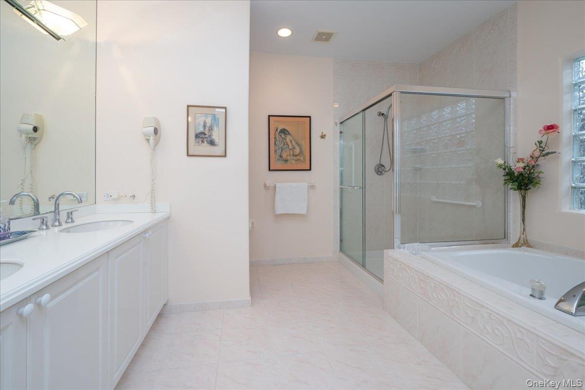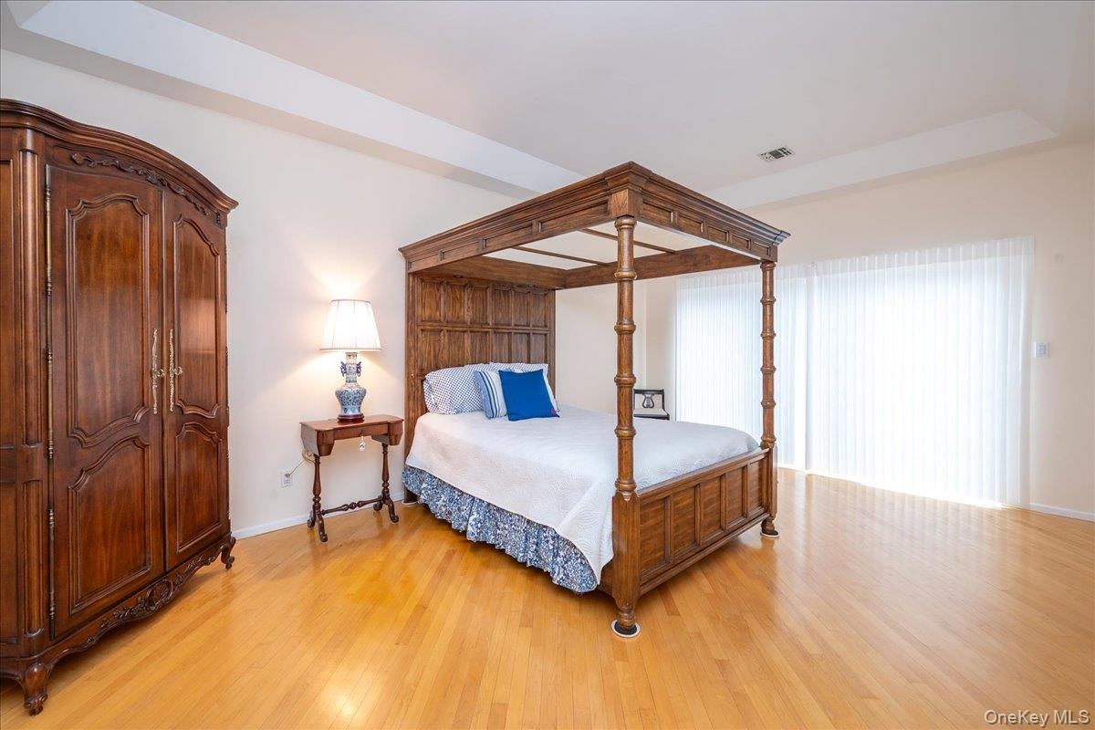 The main floor boasts a spacious primary bedroom suite with hardwood floors, a spa-like ensuite featuring a soaking tub, separate shower, double vanity, and private sliding doors leading to your own serene patio. Entertain with ease in the expansive living and dining rooms, complemented by a butler's pantry and a well-appointed kitchen with ample cabinet space. A cozy den with sliding doors opens to a private backyard, perfect for quiet evenings.
