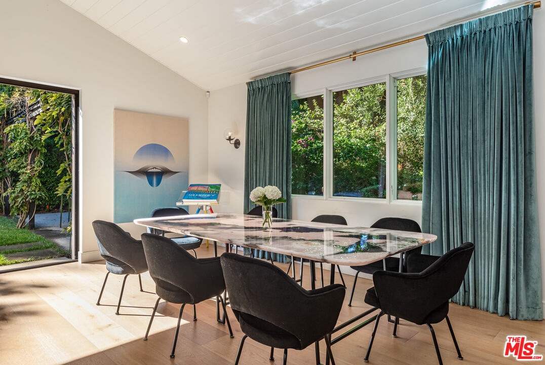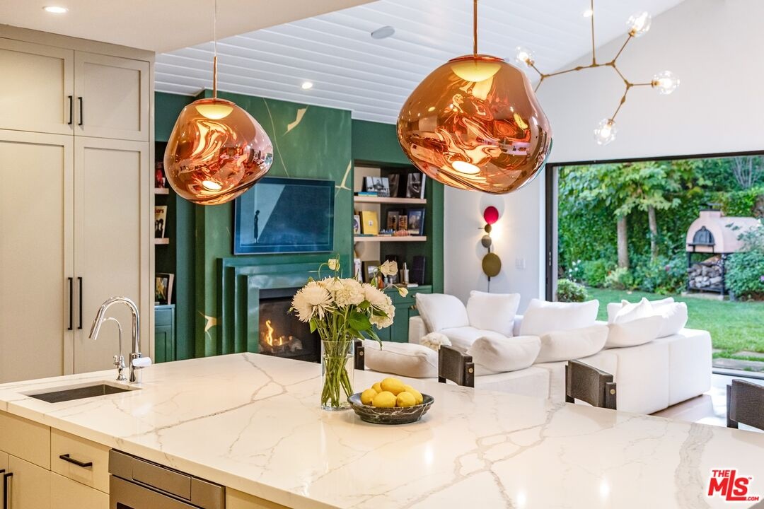 Step inside Wonderland on Wonderland, a storybook retreat and true hidden gem tucked away in one of Laurel Canyon's most coveted and tightly held enclaves. Framed by mature sycamores, cascading greenery, and blooming white roses, this chic designer residence feels like its own private world from the moment you arrive, with a sense of calm and peaceful energy that carries throughout the property.Upon entry, custom hand-painted Porter Teleo wallpaper creates a striking first impression. Designed by Parlor Interiors and featured on the cover of California Home + Design, the home seamlessly blends elevated California style with timeless warmth. Vaulted, beamed ceilings and abundant natural light enhance the airy, welcoming atmosphere.The great room is the heart of the home, anchored by a dramatic custom green fireplace, warm oak floors, and a full wall of Fleetwood glass doors that open to the backyard, creating effortless indoor-outdoor living.Set on approximately half an acre, the grounds were beautifully landscaped by Brent Green of Green Art Landscape Design, offering a secluded hillside garden oasis complete with a sparkling tiled pool, wisteria-draped pergola, sculpted hedges, and a wood-burning pizza oven, ideal for entertaining or everyday enjoyment.Located within one of Los Angeles' top-ranked public school districts and just moments from Wonderland Avenue Elementary, the home is well suited for families seeking privacy, a functional layout, and a strong sense of community. Finished with high-end materials and bespoke details throughout, the property strikes a rare balance of charm, character, and modern livability.Privately nestled yet minutes from the Sunset Strip and the best of the Hollywood Hills, this is a rare opportunity to own a truly special home in Laurel Canyon.