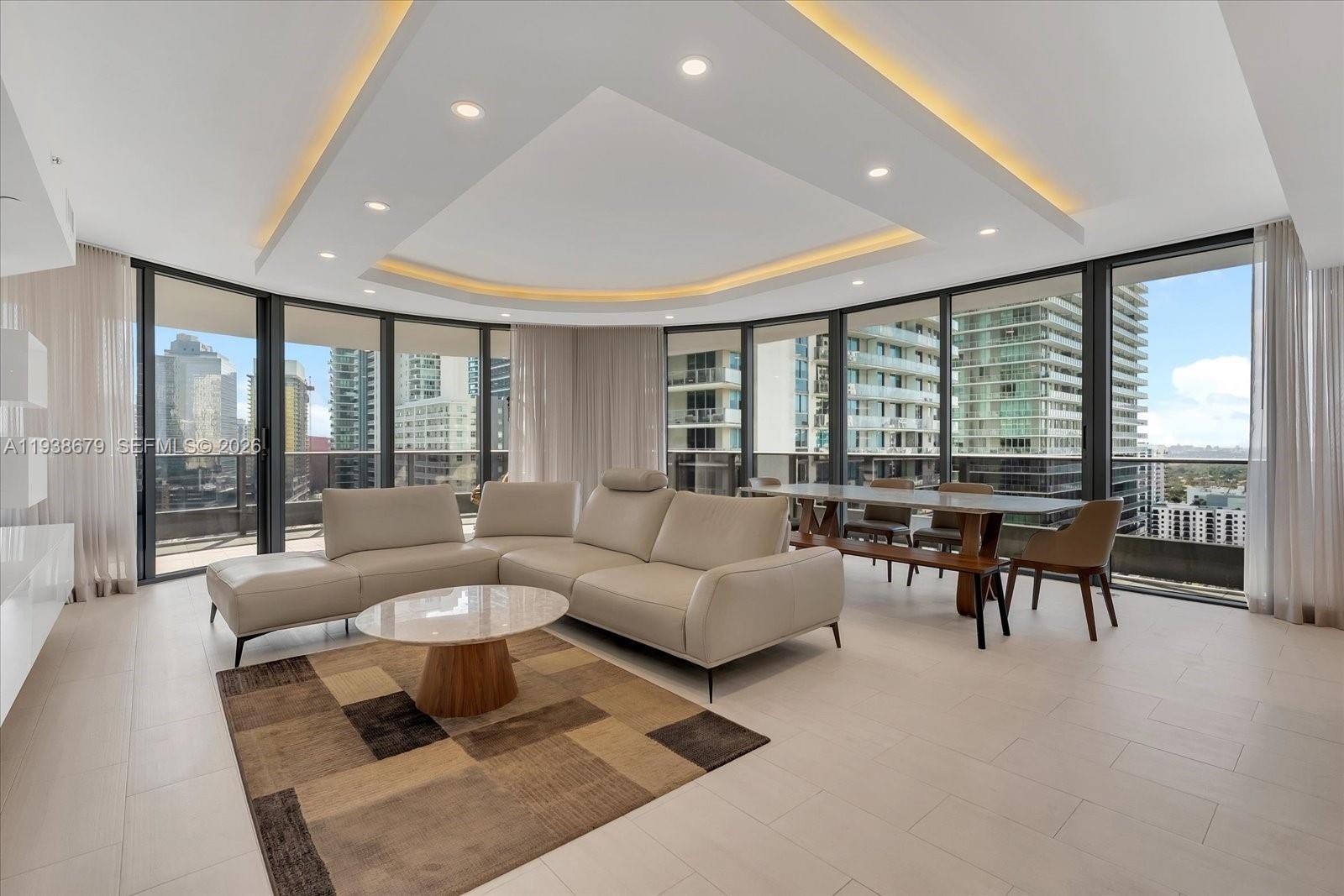 Bathed in natural light, this exceptional residence features the best typical floorplan in the building, distinguished as the only layout with a panoramic, wall-to-wall glass circular living room—a truly rare architectural feature that delivers dramatic city views and an unmatched sense of openness. The expansive living area flows seamlessly to the largest wraparound balcony. The thoughtfully designed layout offers a refined, hotel-like Custom upgrades include dropped ceilings, custom window treatments, closets, and elegant cove lighting, enhancing both scale and atmosphere. Full-service amenities includes a roof top pool, state-of-the-art fitness center, spa, private theater, children’s playroom, and 24-hour concierge. Ideally located just moments from Brickell City Centre, world-class dining, and Miami’s financial district. Full-service amenities includes a roof top pool, state-of-the-art fitness center, spa, private theater, children’s playroom, and 24-hour concierge. Ideally located just moments from Brickell City Centre, world-class dining, and Miami’s financial district.