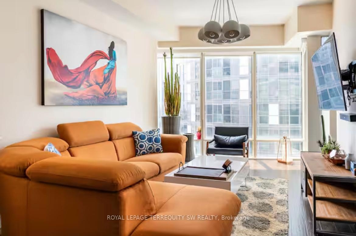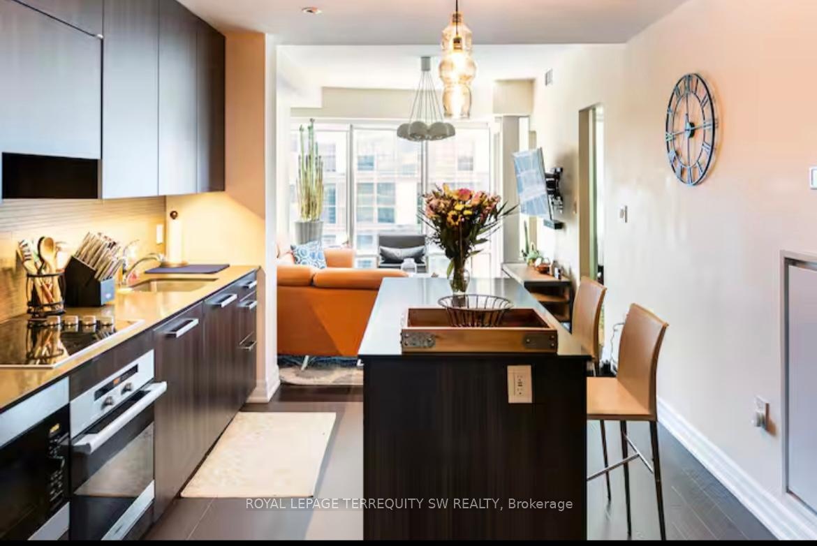 Modern, Luxurious & Fully Furnished condo in heart of downtown Toronto at L-Tower. Steps away from Union Station, St. Lawrence Market, the Waterfront and Berczy Park you are walking distance from everything at this location. Surrounded by restaurants, pubs, grocery, pharmacies & coffee shops on all sides you will be spoiled for choice on where to go next. Impossible to be bored with TIFF, the Flat Iron, Rogers Centre minutes away! This luxury building and unit is perfect for the working professional in town on business. The space has a queen size bed, two full baths, full kitchen and a den that can be used for a workspace. The condo has been equipped to be a home away from home with all the everyday necessities you will need. This includes a variety of coffee and tea, cleaning supplies, basic toiletries and cleaning supplies. There is a Keurig with coffee and hot chocolate pods. Ensuite washer and dryer. A balcony with a great view. Lots of plugs throughout the condo that also have USB ports. Lights have dimmers on them. The bed has a mattress pad than can be taken off at your comfort and convenience for a firmer or softer nights sleep. The coffee table top also pulls up to meet you at chest level to eat or work on. A full gym with a yoga room, sauna and pool available on second floor. The pool has a skylight and loungers so you feel like you're outdoors! Though we're in the heart of downtown it is exceptionally quiet in the unit **EXTRAS** Fully Furnished (WiFi + Hydro + Parking Negotiable)