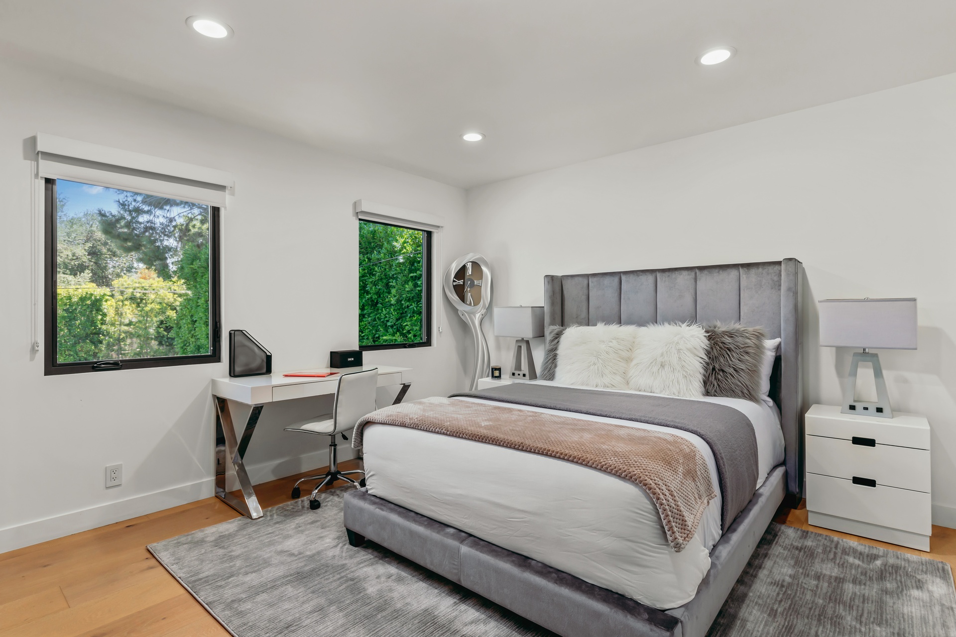 Welcome to this exceptional 4-bedroom, 4.5-bath residence nestled in the prestigious Amestoy Estates of Encino. Thoughtfully redesigned from top to bottom, this turnkey home blends modern luxury with timeless comfort and is offered fully furnished, ready for immediate move-in.The open-concept layout features designer finishes, wide-plank flooring, and abundant natural light throughout. The chef's kitchen is outfitted with premium appliances, custom cabinetry, and sleek stone countertopsperfect for entertaining or everyday living. The primary suite is a true retreat, complete with a luxurious bath and refined details.The home flows seamlessly to beautifully curated indoor-outdoor spaces ideal for relaxing, hosting, or enjoying the Southern California lifestyle. Located moments from top dining, shopping, and easy freeway access, yet tucked away in one of Encino's most prestigious neighborhoods. This home is perfect for executives, families, or anyone seeking a high-end, move-in-ready home in a prime location. Available for both short-term and long-term rentals!