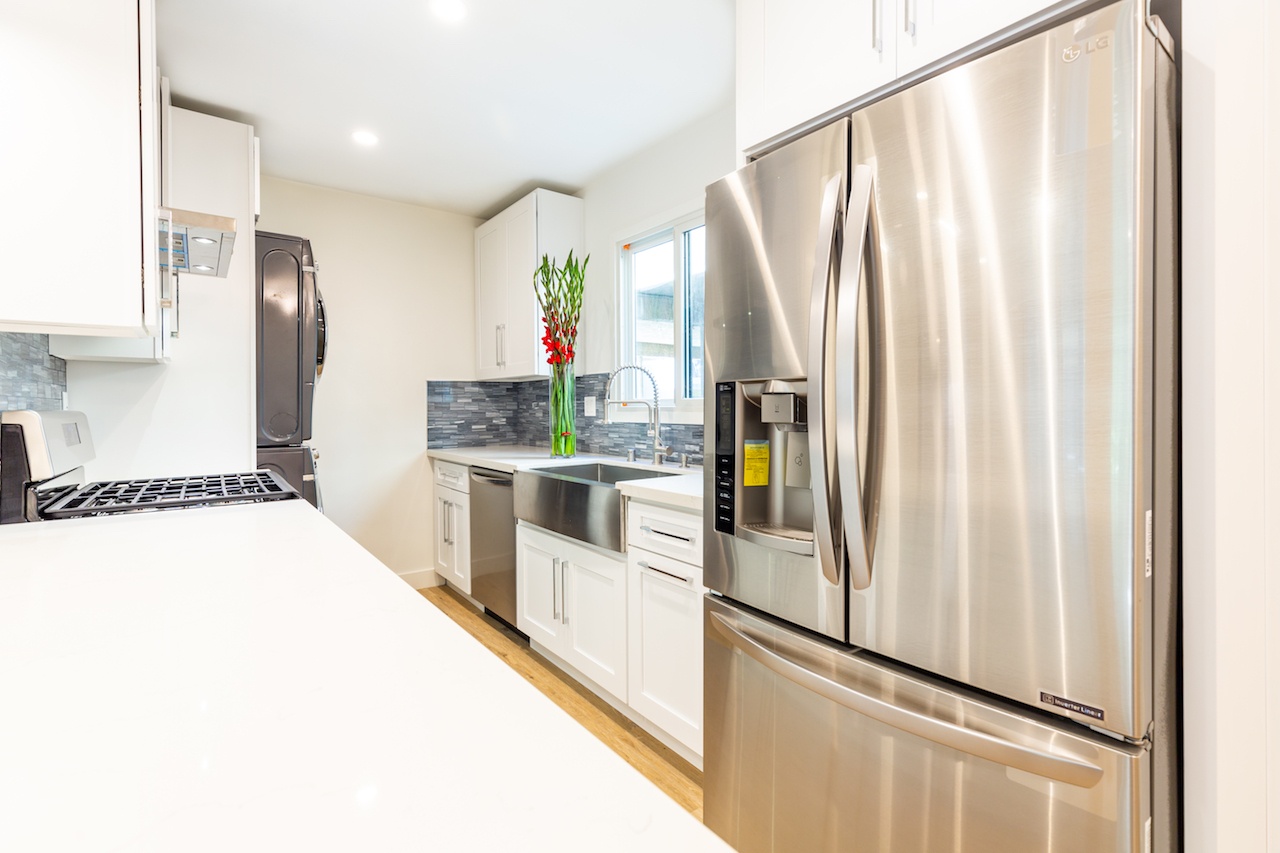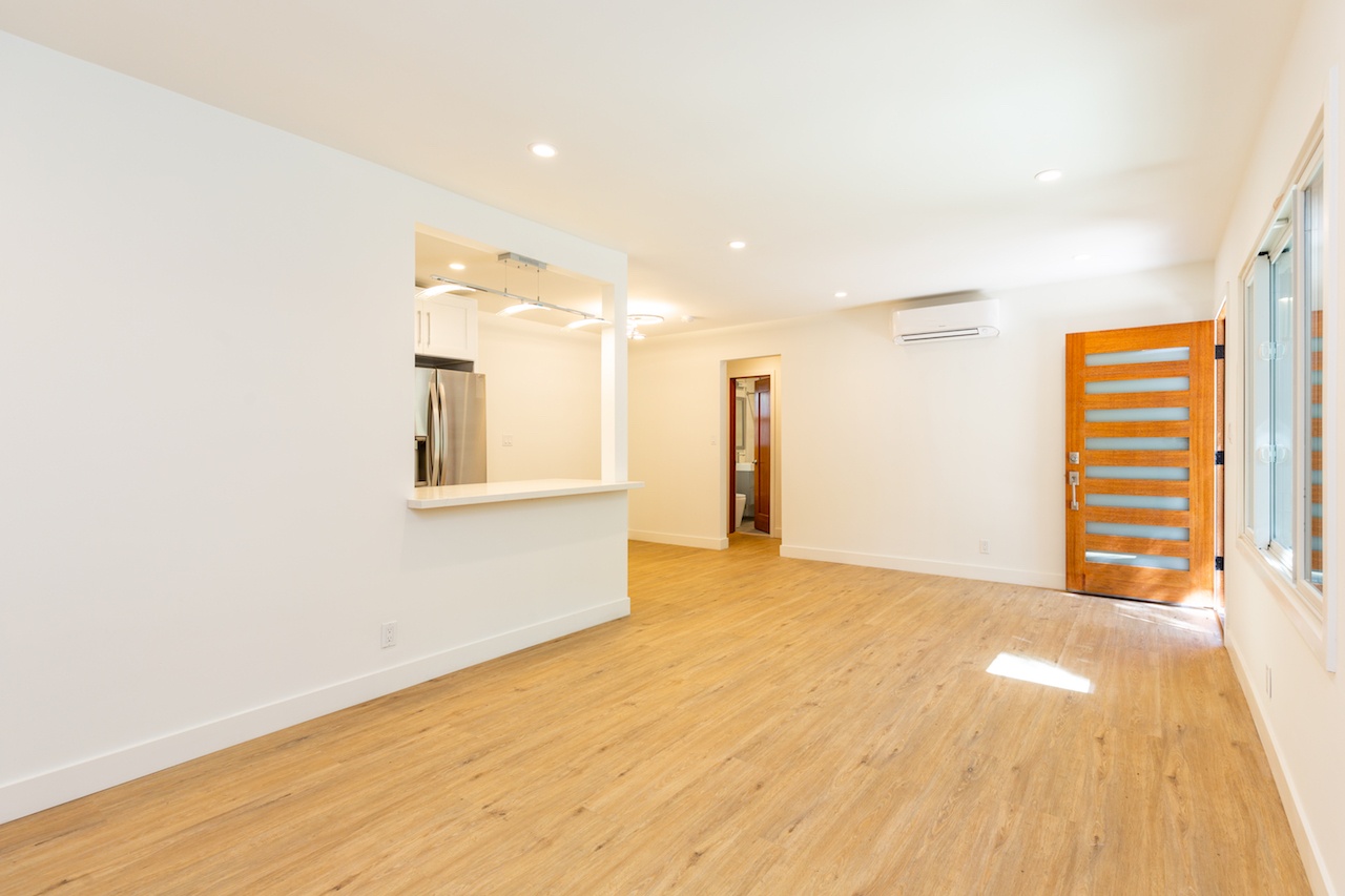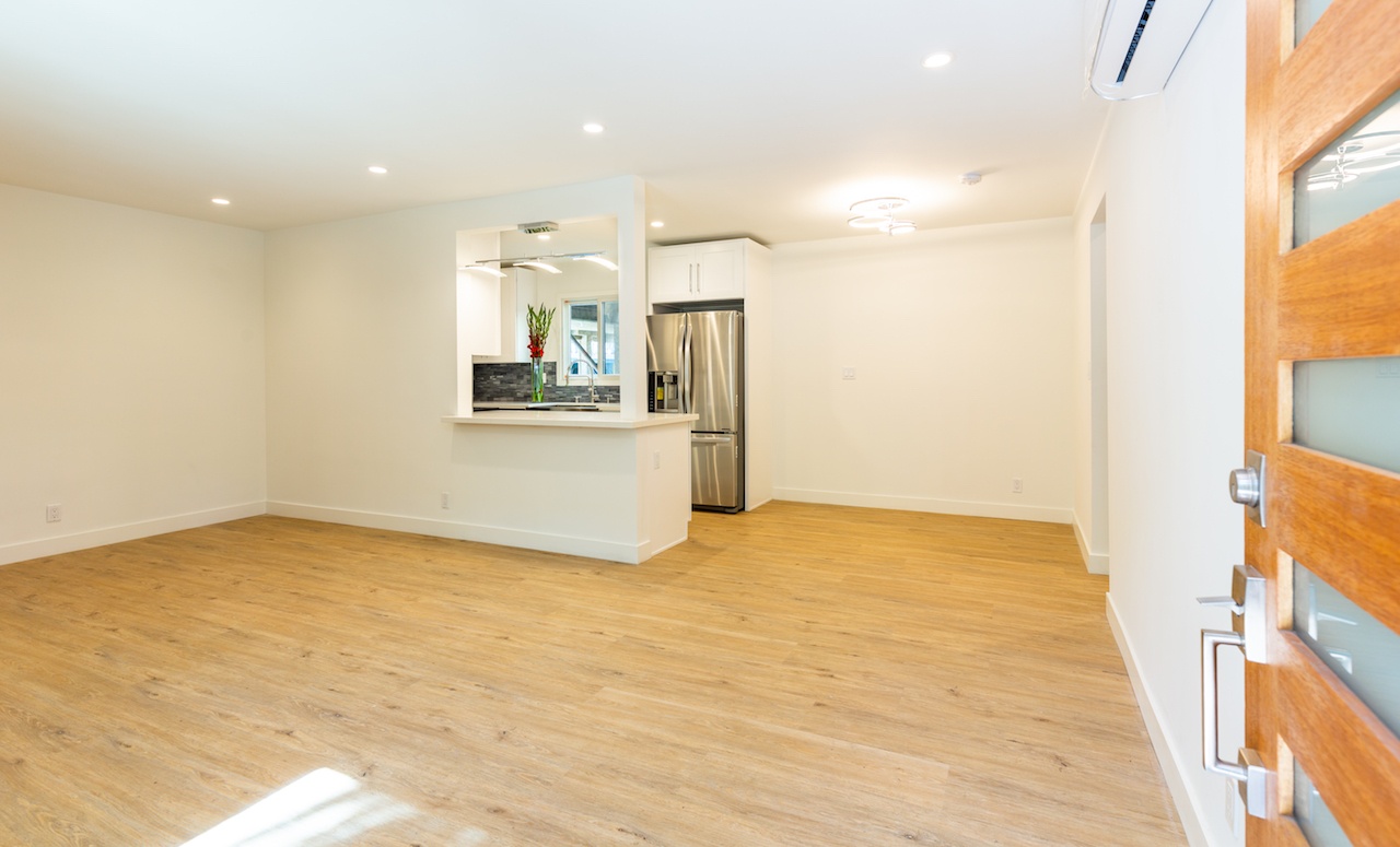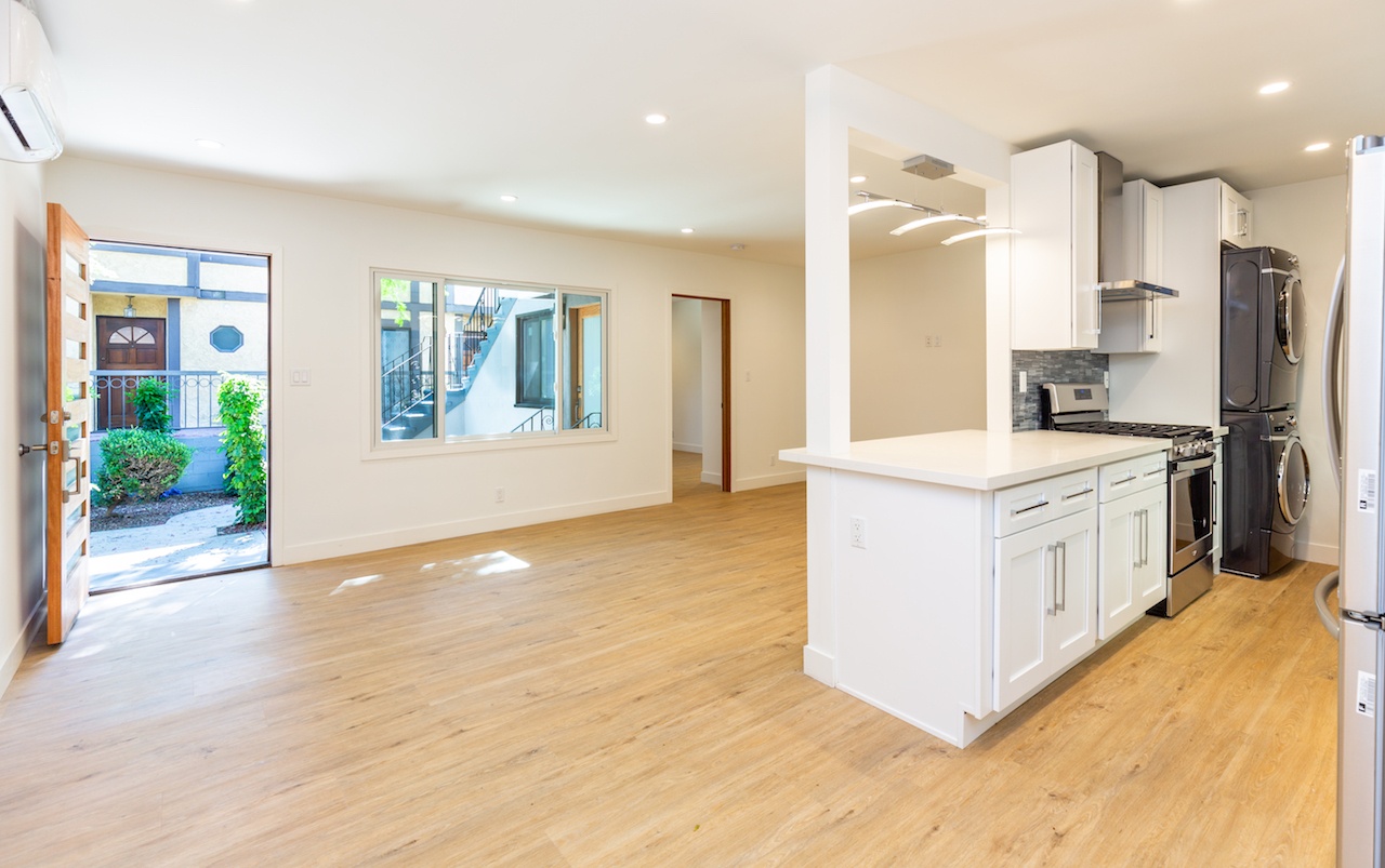 Prime location!! This completely remodeled and secluded apartment provides an easy open floor plan with a modern flair. The unit is located in a secure building in the heart of Santa Monica and features high ceilings, recessed lighting, laminate floors, designer tiles and more. This bright and spacious 2 bedrooms, 2 baths unit offers a master suite that opens to a tree-lined private patio. The second bedroom has a private and secured entrance which makes sharing easy. The kitchen features all new stainless steel appliances, white quartz countertops, white cabinetry, and a stackable washer and dryer. The living and dining room area is great for entertaining. The unit includes one tandem space parking for two cars equipped with an electric car charger and storage. It's a short drive to the beach, Third Street Promenade, Montana Ave, Venice Beach, Westwood, Beverly Hills, excellent LAUSD schools, the 10 & 405 freeways and more.