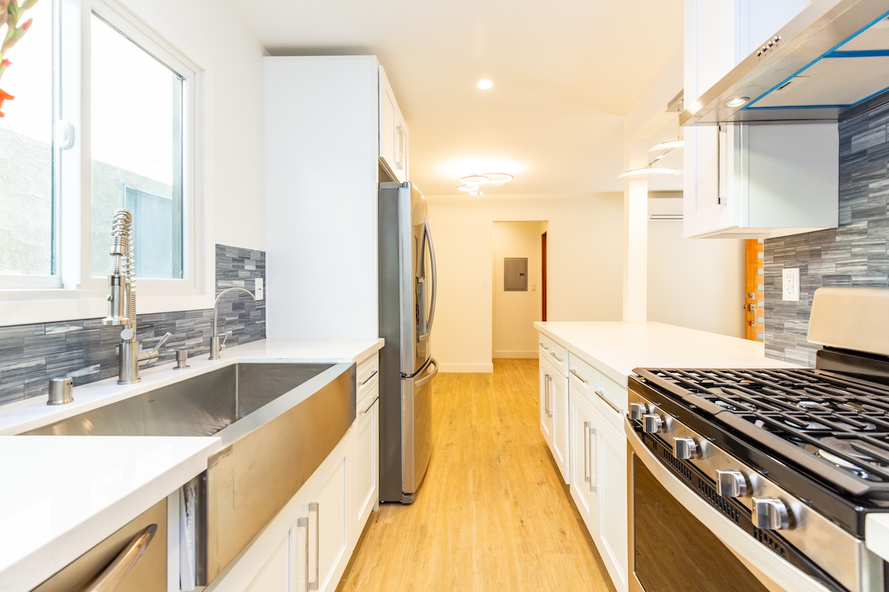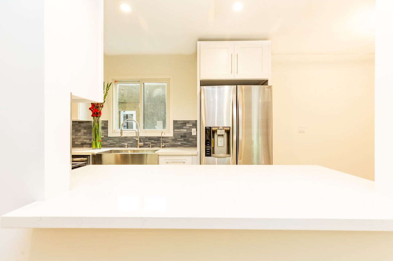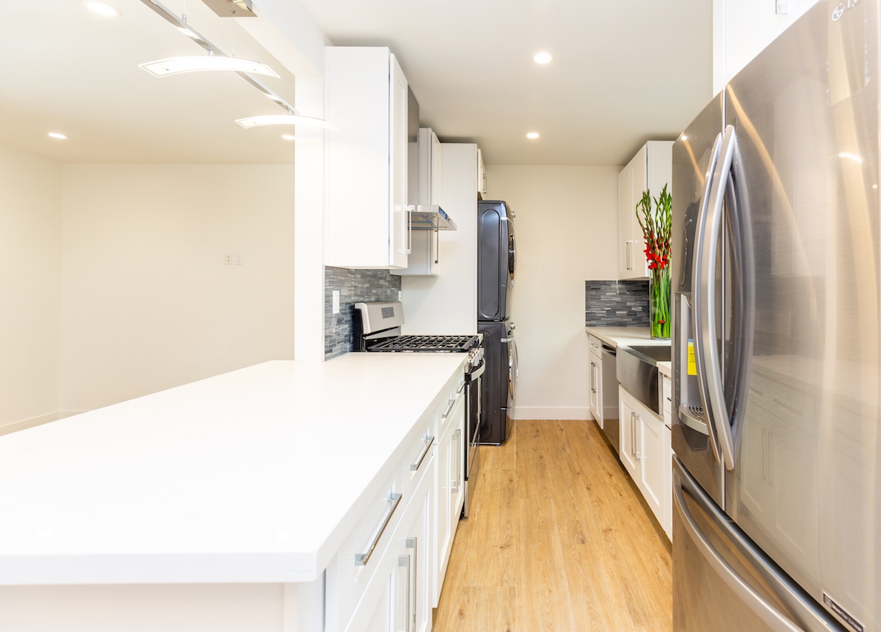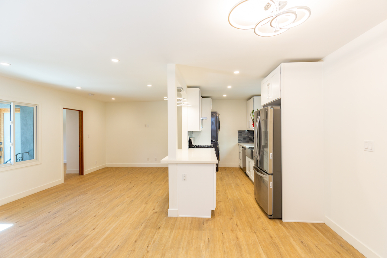 Prime location!! This completely remodeled and secluded apartment provides an easy open floor plan with a modern flair. The unit is located in a secure building in the heart of Santa Monica and features high ceilings, recessed lighting, laminate floors, designer tiles and more. This bright and spacious 2 bedrooms, 2 baths unit offers a master suite that opens to a tree-lined private patio. The second bedroom has a private and secured entrance which makes sharing easy. The kitchen features all new stainless steel appliances, white quartz countertops, white cabinetry, and a stackable washer and dryer. The living and dining room area is great for entertaining. The unit includes one tandem space parking for two cars equipped with an electric car charger and storage. It's a short drive to the beach, Third Street Promenade, Montana Ave, Venice Beach, Westwood, Beverly Hills, excellent LAUSD schools, the 10 & 405 freeways and more.