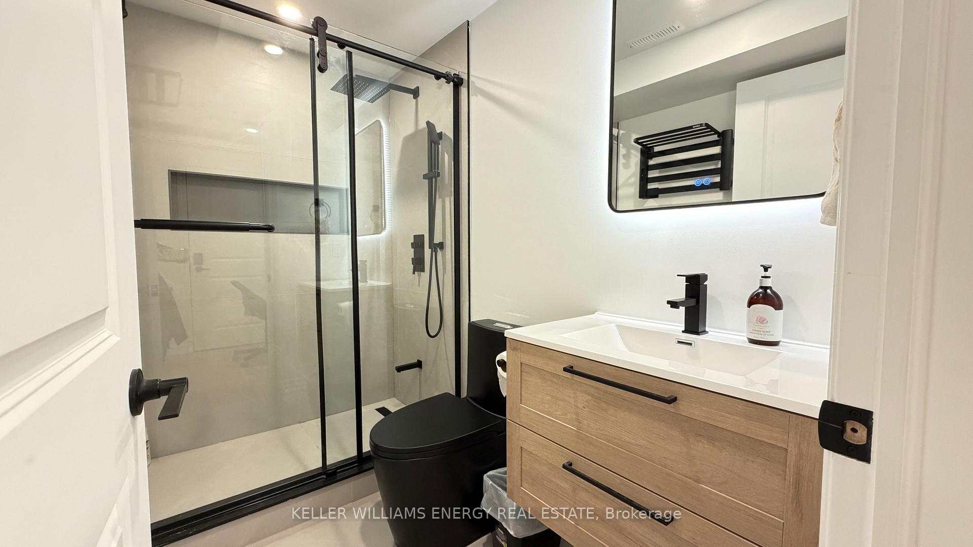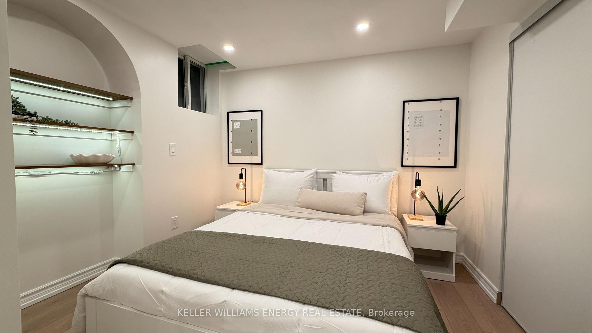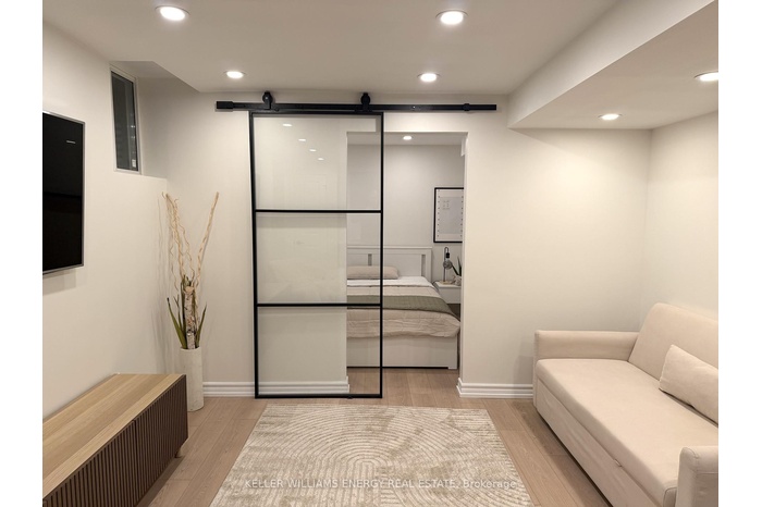 Be the first to enjoy this beautiful, professionally designed space with luxury finishes and immaculately thought out details! You'll love the brand new kitchen and dining with built in appliances, overlooking the living room with luxury vinyl flooring and high end Samsung TV! The steel frame glass barn doors leads you to the bedroom with a double closet and built in shelving. The bathroom will have you turn everyday showers into a spa-like treatment with the glass double shower, modern finishes, heated, lighted and fogless mirror, and heated towel rack. Convenient den space makes for a perfect office/study nook. This unit is fully furnished and is perfect for a student, young professional, or anyone starting anew! New paved path and cover/roof above the entrance coming this spring!