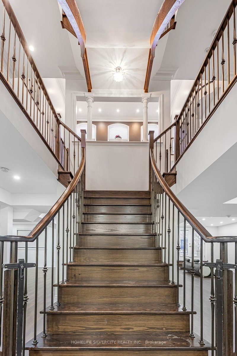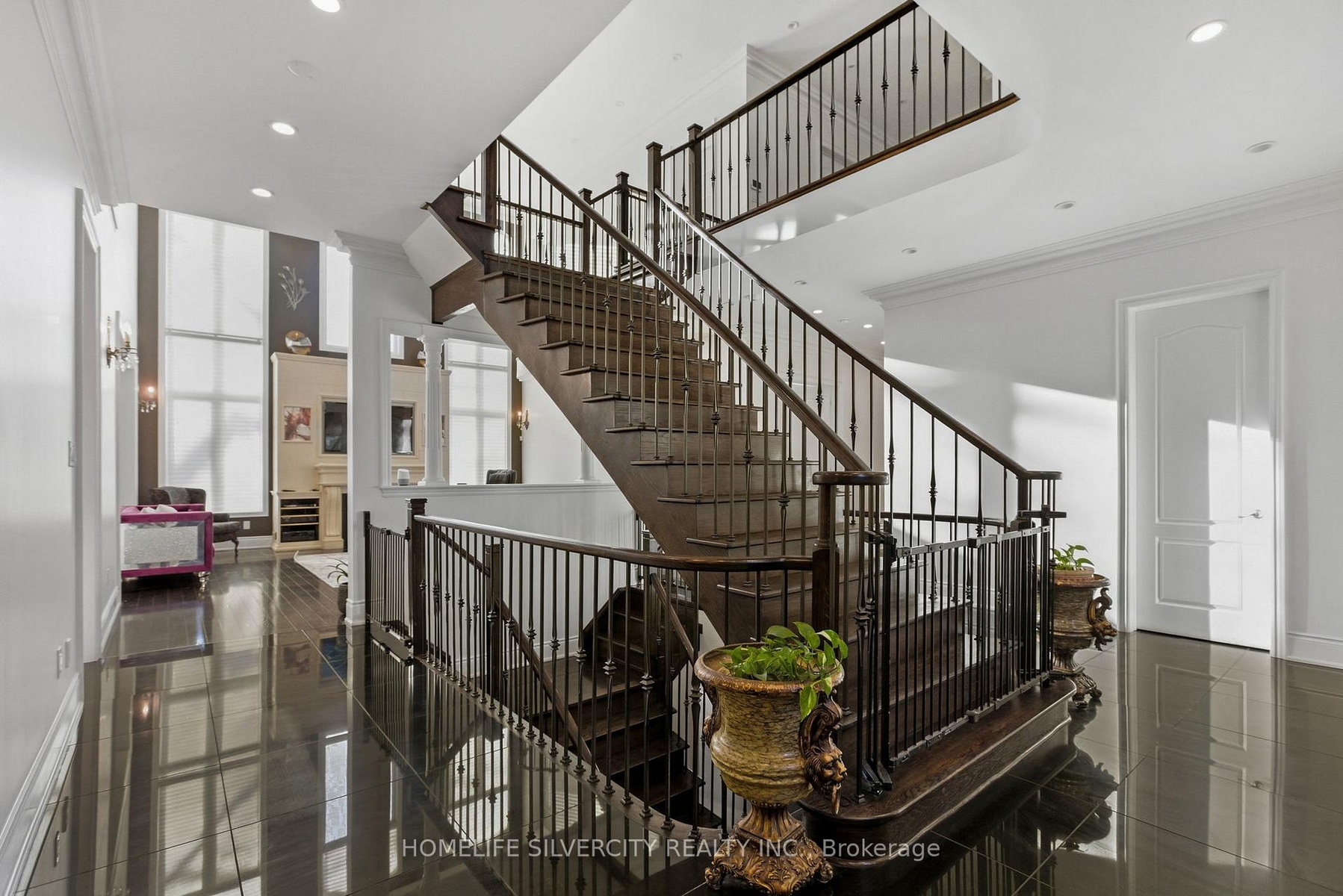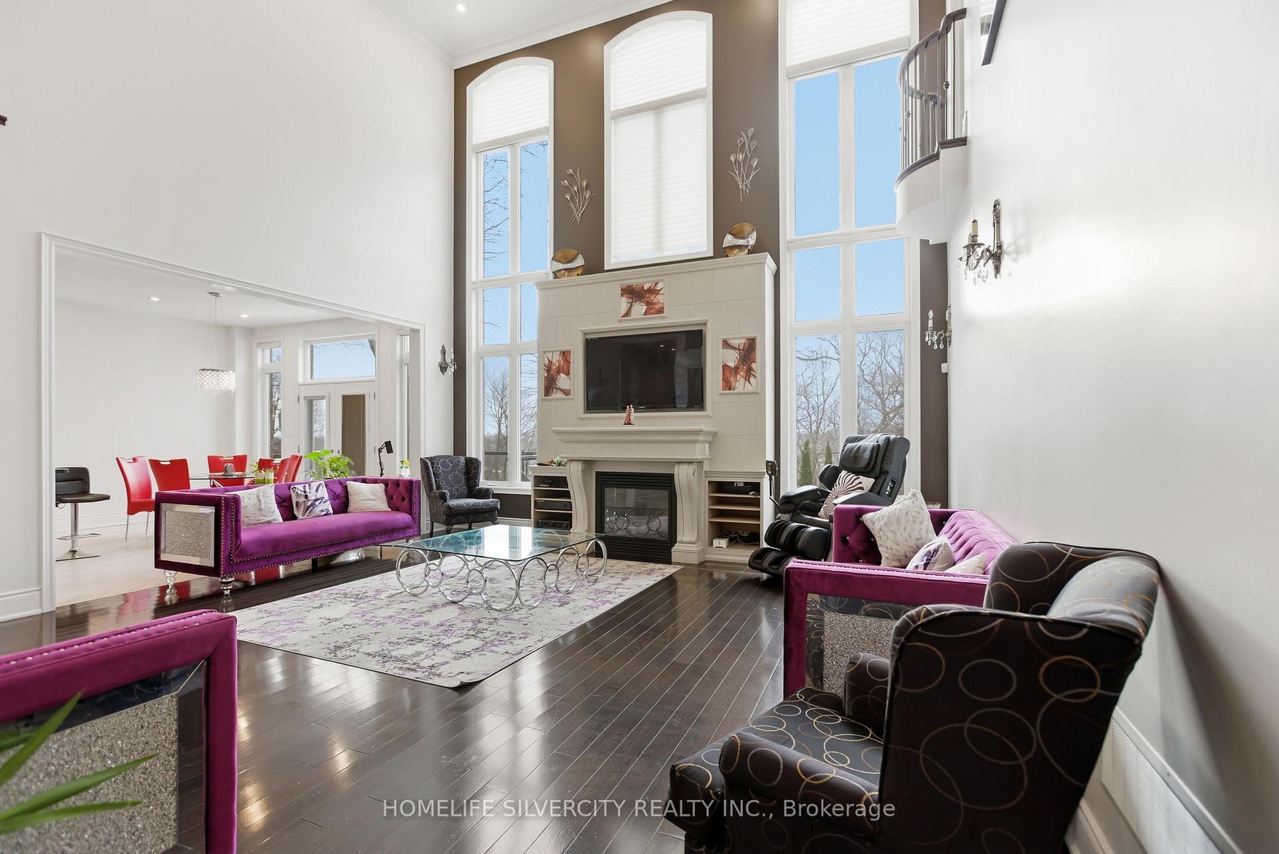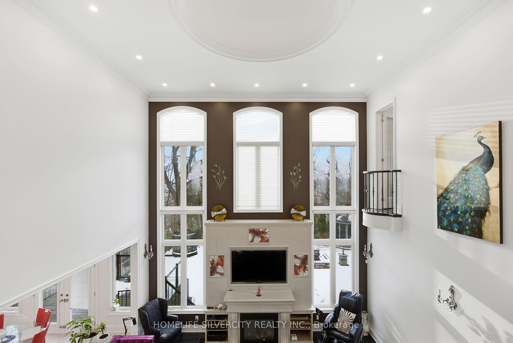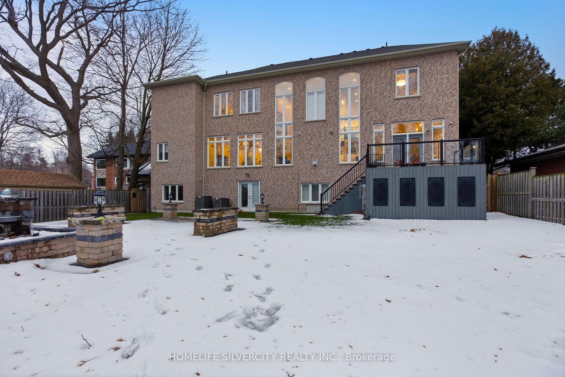 A truly One-of-a-Kind Custom Luxury home, nestled on a ravine lot with lots of sunlight, just minutes from the beach. This meticulously upgraded home blends refined design, advanced technology, and exceptional craftsmanship throughout. Features include heated entrance, 10-ft ceiling throughout home, 18-ft ceiling in Great room with custom dome, 8-ft doors throughout, hardwood flooring, granite finishes, and *two master bedrooms* (main & 2nd floor), both with walk-in closets, 5- piece ensuite with jacuzzi. All bedrooms have adjoining full bathrooms and ample closet space for storage. Enjoy a state-of-the-art audio system, high-speed networking throughout, custom mill work and thoughtfully designed living spaces including a theatre room, home office, and finished walk-out basement. The Great Room stuns with open to above area, with custom dome ceiling, fireplace feature wall, and seamless indoor-outdoor flow with pot lights throughout the home. Step outside to a professionally landscaped backyard oasis with a 700-sq-ft entertainment pad, low maintenance turf throughout the backyard, water features, fire pit, gazebo, glass railings, and LED lighting- all backing onto a beautiful and serene creek. Additional highlights include dual furnaces & amp; 2 A/Cs, tank less water heaters, smart security system, custom closets, 18 car drive-around driveway with fountain, and a heated entrance inside the home. An extraordinary home offering luxury, privacy, and modern living in one of Pickering's most sought-after neighbourhoods. See Attached List Of All Upgrades, $$$ In Landscaping, 21 Invisible Stealth Speakers, 2 Furnaces, 2 Air Conditioners, Hunter Douglas Blinds Throughout, Rough-in for Kitchen in basement and Theatre Room in basement. Over 8000 sq feet of living space; 5455 sq ft above grade and 2800 sq ft walk out basement.