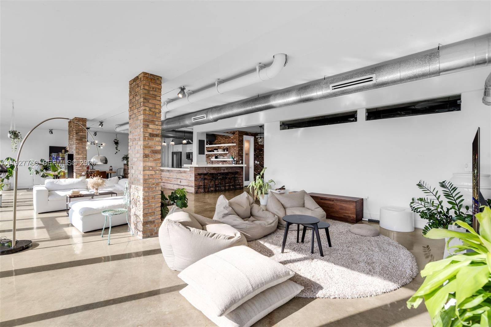 Discover this one-of-a-kind loft-style 4BD/3.5BA residence—currently configured as a 3-bedroom plus storage—offering dramatic open-concept living, sweeping floor-to-ceiling glass, and panoramic views of Biscayne Bay, the Miami skyline, and lush tree canopies. Designed with an industrial-modern aesthetic, the home showcases exposed ducts, polished concrete floors, brick accents, and custom wood millwork throughout. The expansive great room seamlessly integrates living, dining, and an open chef’s kitchen, creating an ideal setting for entertaining. The primary suite delivers a true retreat with incredible natural light, oversized balcony access, and a sculptural soaking tub set against skyline vistas. Multiple lounging areas, flexible spaces perfect for office or creative use, and generous storage enhance daily living. The boutique building offers two elevators, just 3–4 residences per floor, a rooftop dry sauna, and pool, and is just a 3-minute walk from beautiful Morningside Park—offering an exceptional blend of volume, character, lifestyle, and location at the edge of Morningside and the MiMo District.