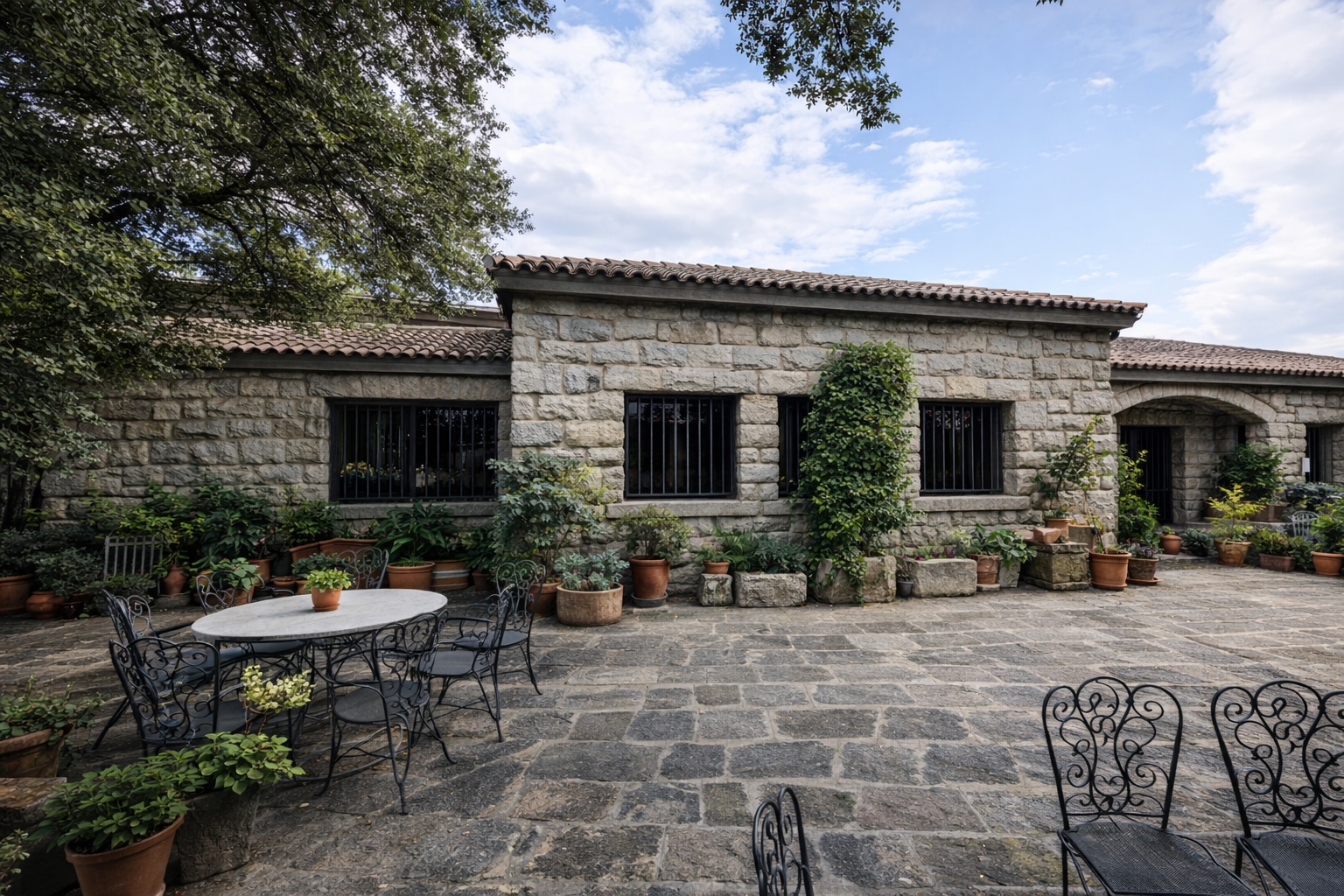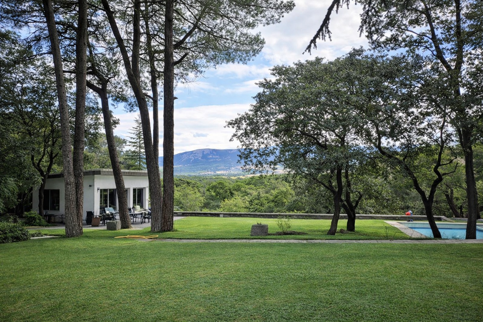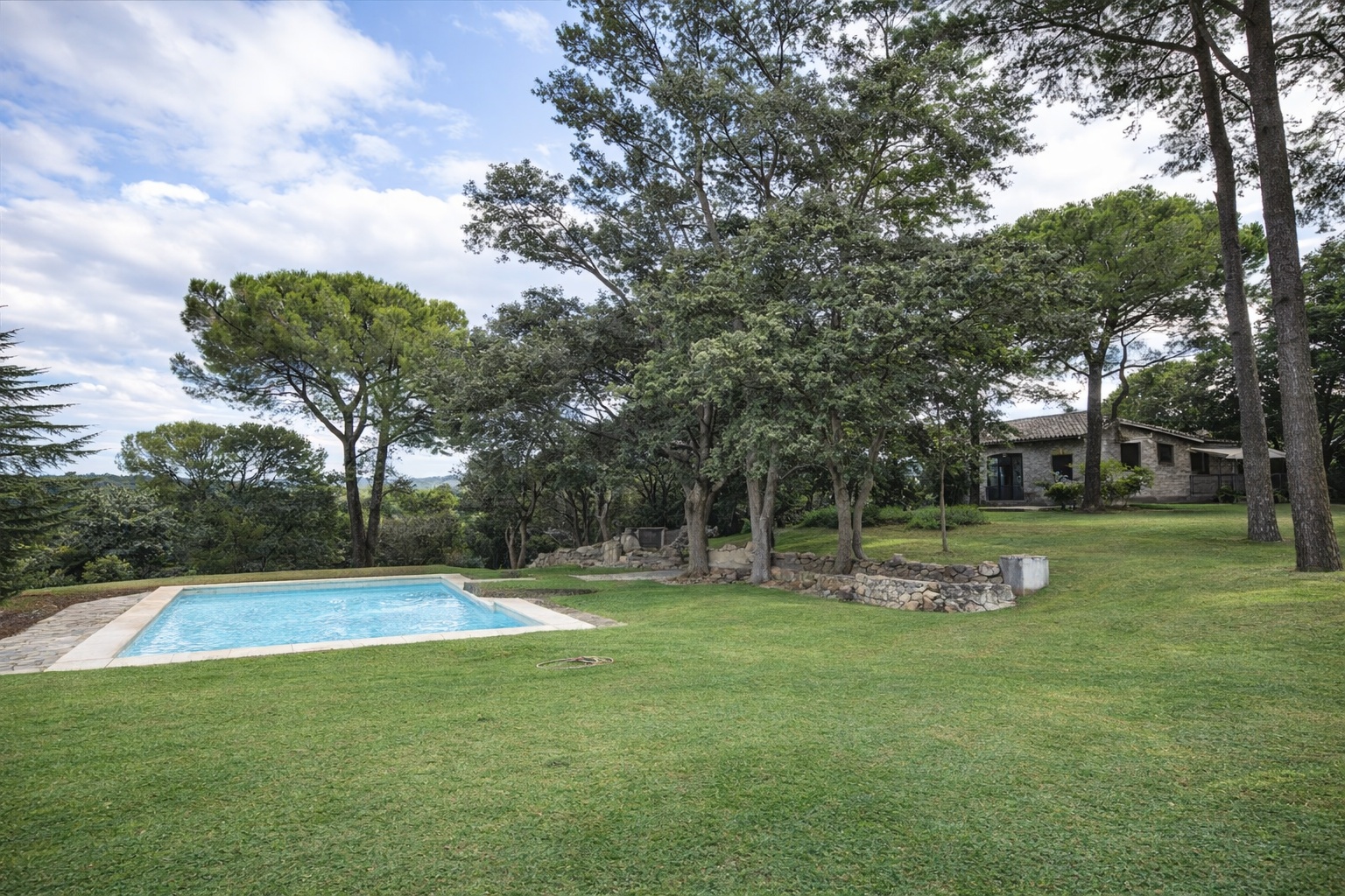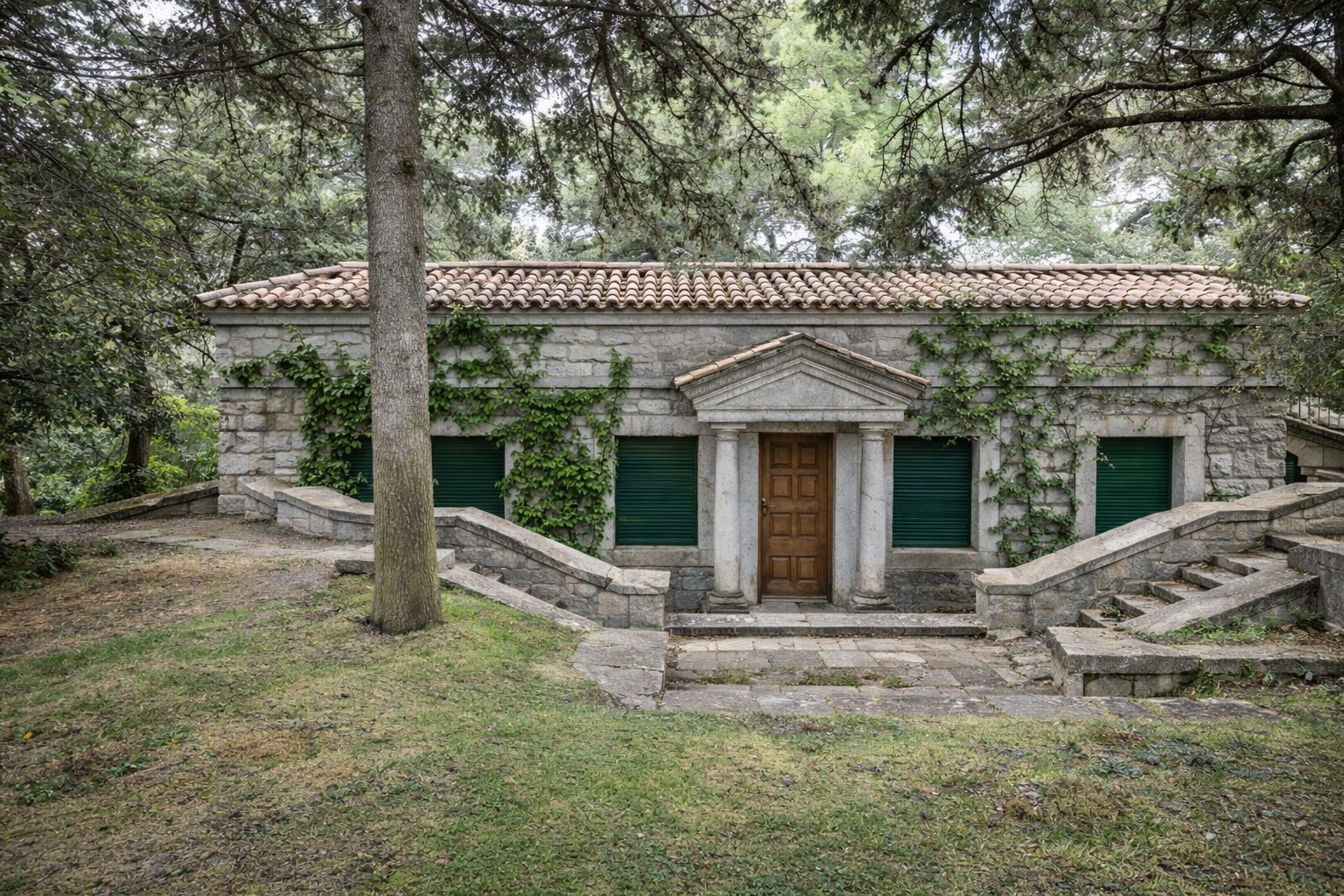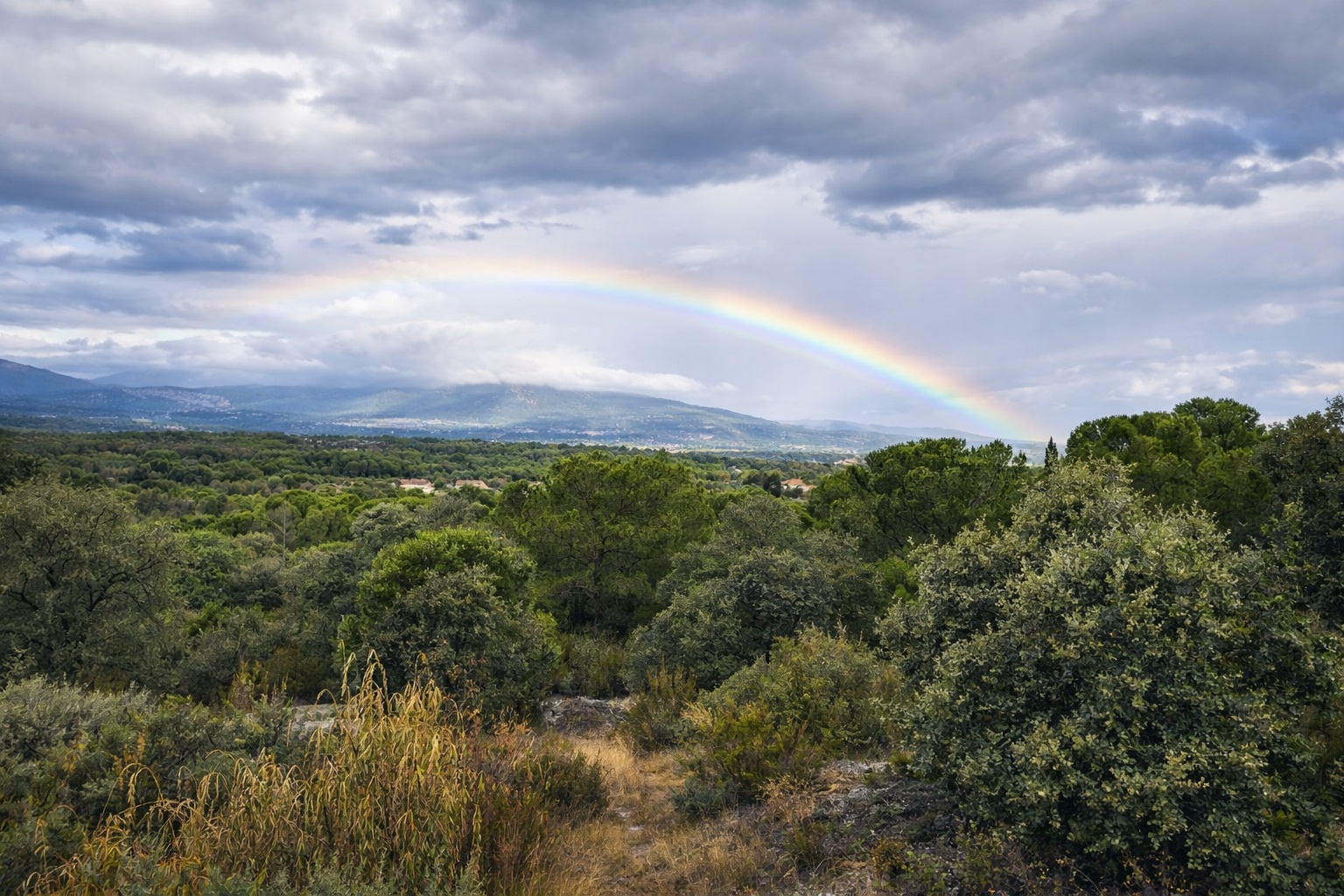 Dense forest coverage of holm oaks, pines, cedars, and junipers, carefully managed and rich in biodiversity