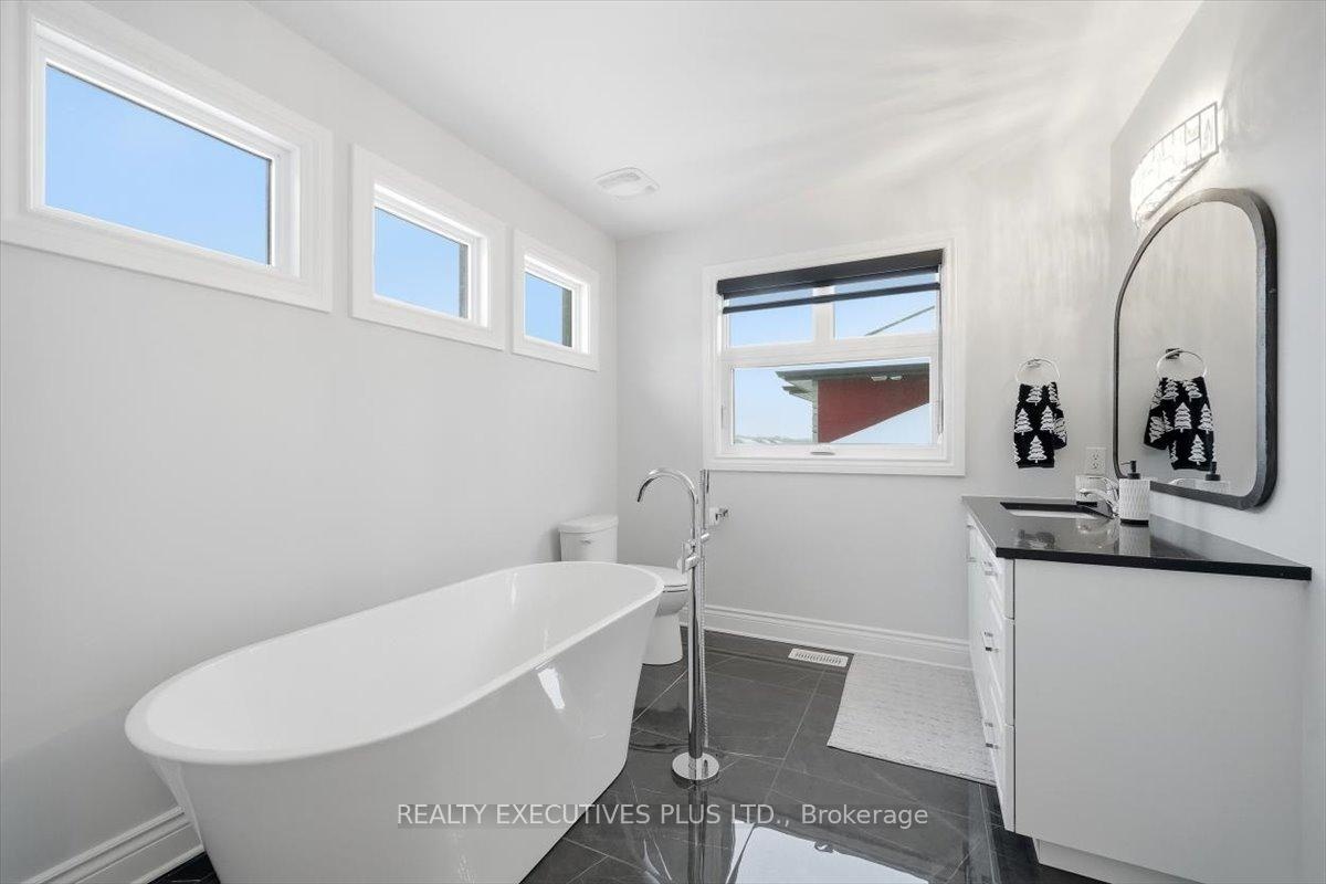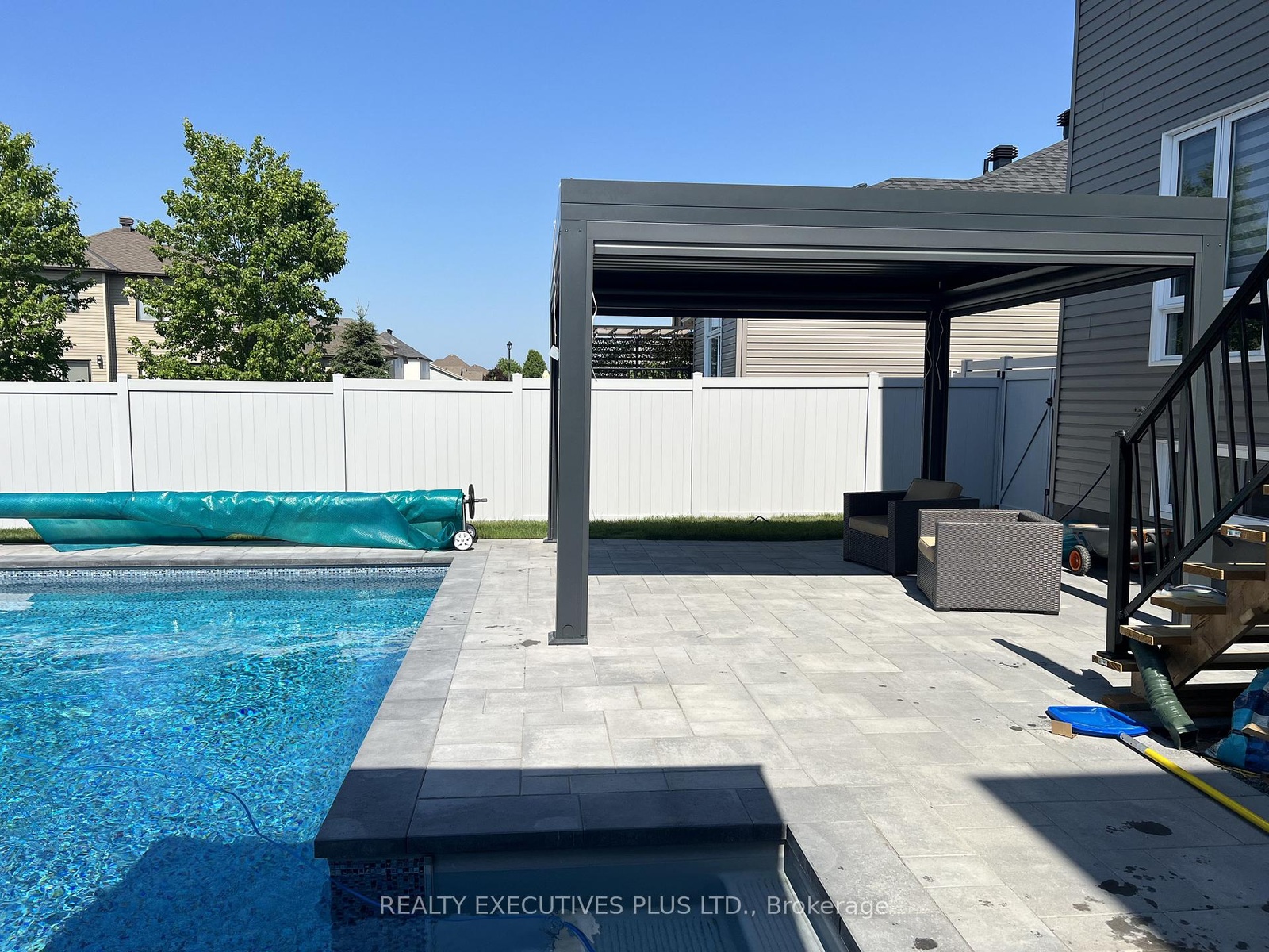 Welcome to this exceptional custom-built 4+1 bedroom home in Rockland, offering a perfect balance of luxury, comfort, and thoughtful upgrades throughout. The main floor impresses with 9-foot ceilings and a carpet-free design, complemented by elegant 2 ft x 2 ft ceramic tile flooring and upgraded light fixtures throughout. The chef-inspired kitchen showcases quartz countertops, upgraded cabinetry, a walk-in pantry, and top-of-the-line KitchenAid appliances, seamlessly flowing into the family room with a cozy gas fireplace. A convenient main-floor laundry room adds everyday practicality.From the kitchen and family room, enjoy picturesque views of the fully landscaped backyard, featuring a heated saltwater in-ground pool, a beautifully designed gazebo with electric retractable roof and power screens, and no rear neighbours, creating a private and inviting outdoor retreat. The upper level offers four generously sized bedrooms, including a stunning primary suite with a luxurious 5-piece ensuite, highlighted by a freestanding soaker tub.The fully finished basement continues the home's quality craftsmanship, offering 9-foot ceilings, a second family room, a fifth bedroom, and a modern 3-piece bathroom, ideal for guests or extended family. Additional highlights include a fully insulated and finished garage with an extended section, perfect for a small workshop or additional storage. With too many upgrades to list, this remarkable home truly must be seen to be fully appreciated. A rare opportunity to own a show-stopping property in Morris Village, delivering both elegance and lifestyle, with the added benefit of no rear neighbours. Book your private showing today.