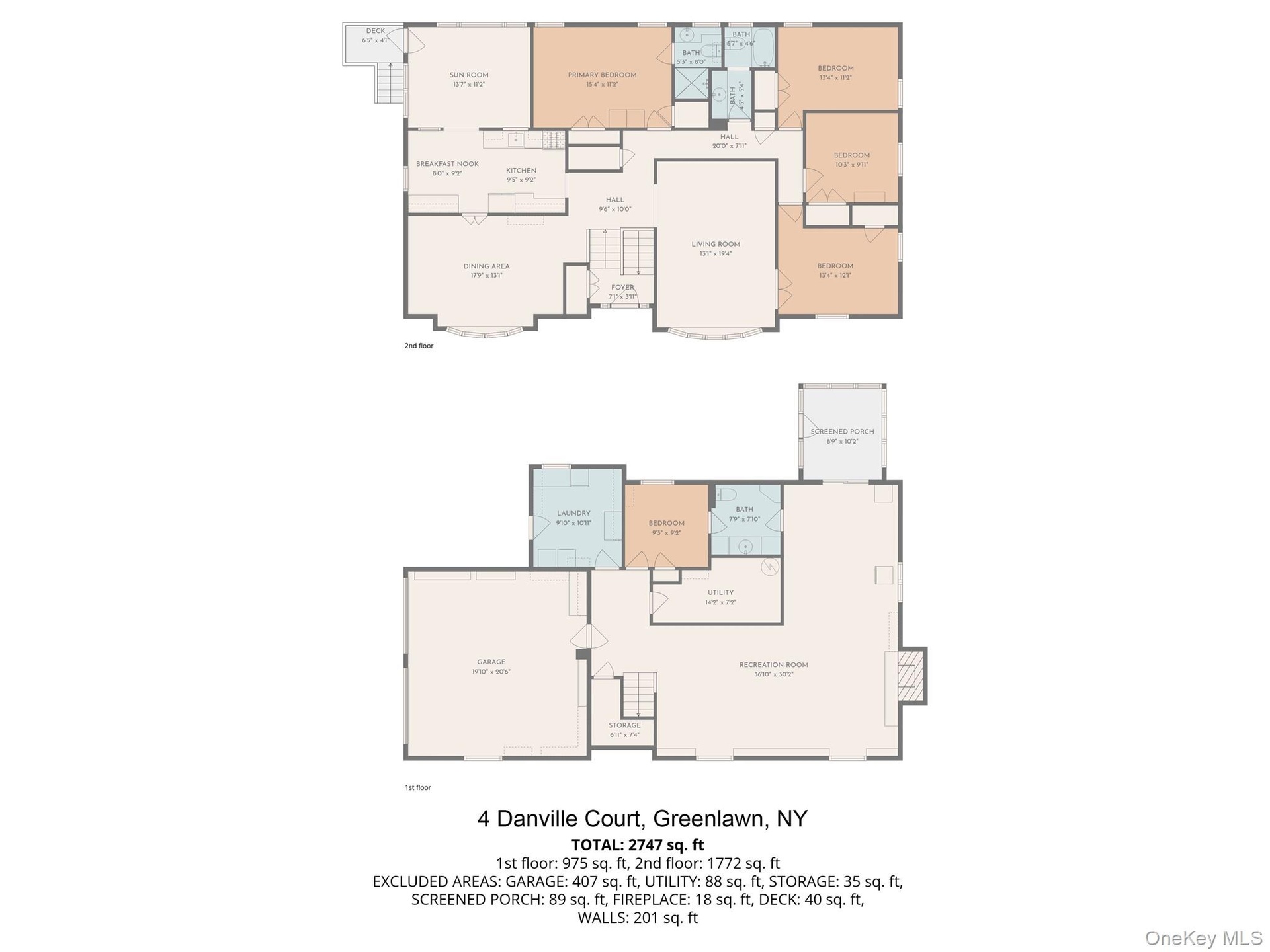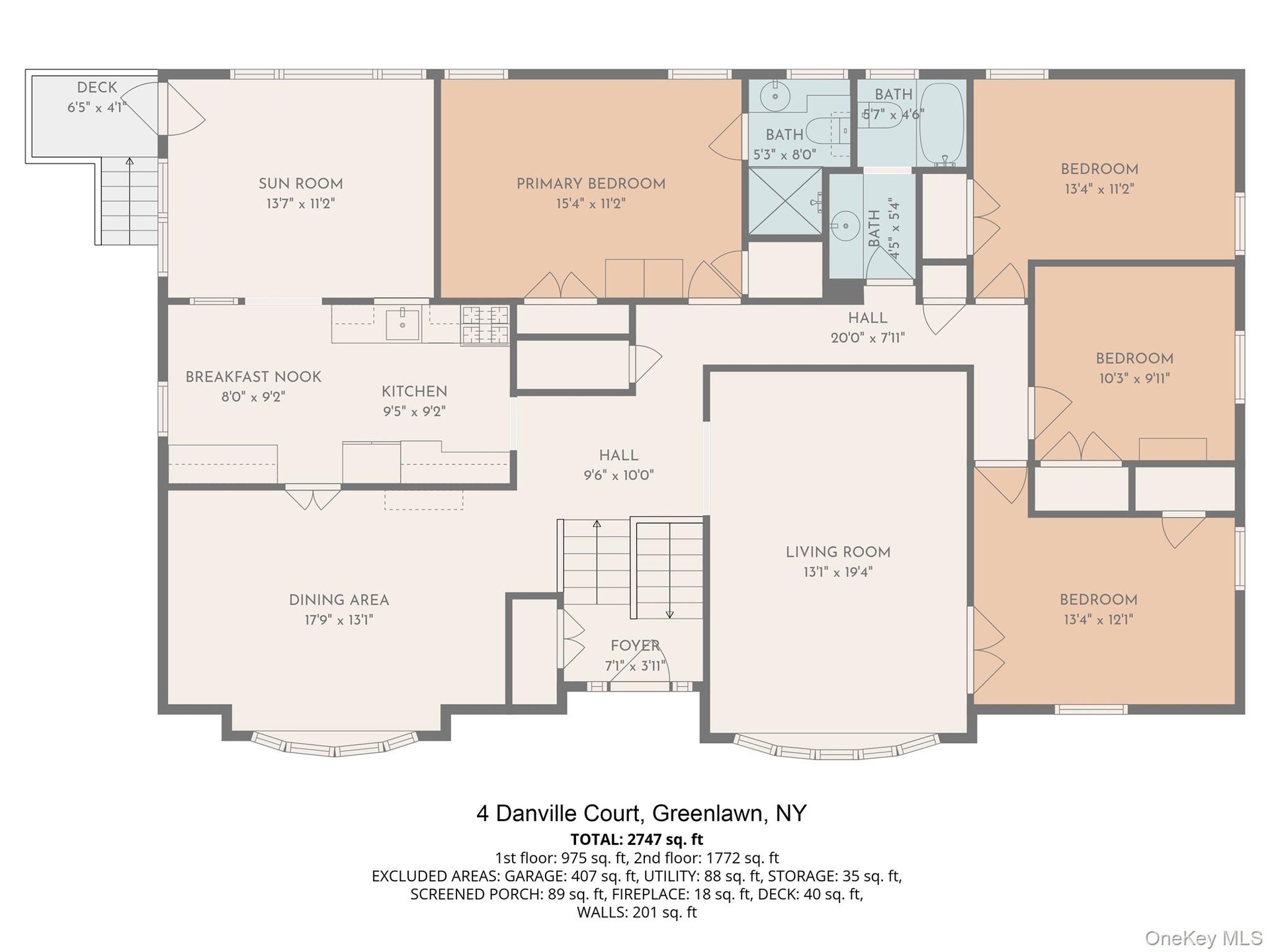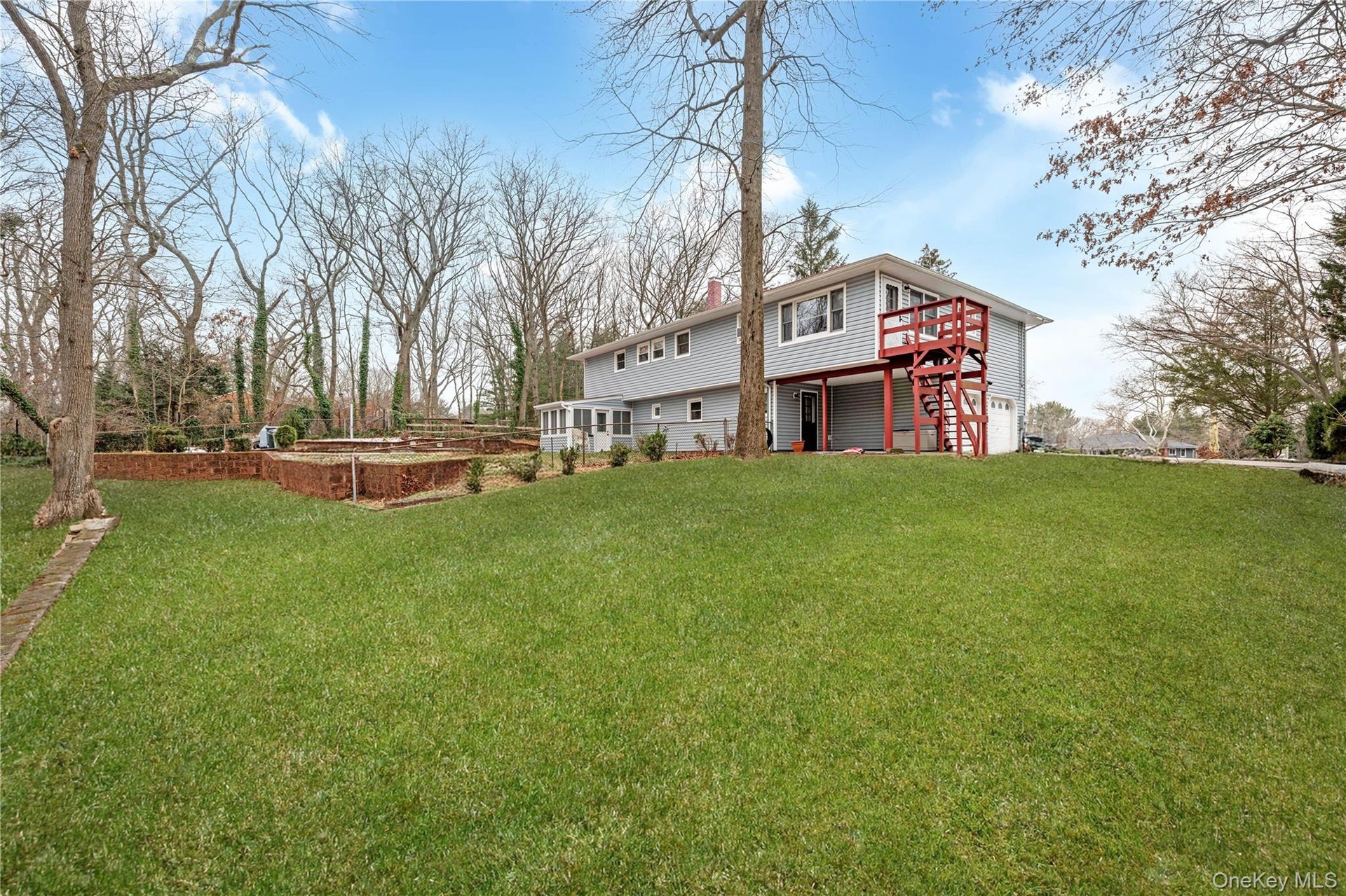Magnificent, large Wideline Hi Ranch, situated on quiet Cul-de-sac, a full 1 Acre lot, very residential neighborhood, picturesque setting, Hilltop Development, heart of Elwood School District, huge, long concrete driveway w/Belgium blocks, newer brick paver walkway, brick paver stoop & steps w/PVC railings, great curb appeal w/brick & newer vinyl sided exterior, newer vinyl soffits, newer leaders & gutters, custom landscaping, living space plus garage total 3,154 sq ft. Entry fiberglass door w/side panels, 2nd Floor spacious Living Room w/refinished hardwood floors, Bay window & French doors, Formal Dining Room w/refinished hardwood floors & Bay window, spacious Eat-in Kitchen w/oak cabinets, granite countertops & backsplash, stainless steel refrigerator, gas cooking & ceiling fan, rear extended Den w/parquet wood tile floors, knotty pine woodwork, ceiling fan, & exterior rear outside entrance, Master Bedroom w/wall-to-wall carpeting, ceiling fan, double closet & single closet, Master Bedroom Full Bath, 3 other Bedrooms plus Full Bath w/ceramic tile, pull down Attic with hide-away stairs, 1st Floor huge Family Room/Great Room w/fieldstone fireplace, built-in bookcases, ceramic tile floor, 2 ceiling fans & sliding doors to beautiful Sun Room, 5th Bedroom/Maid Quarters w/Half Bath, Laundry Room w/newer washer & dryer, Utility Room, gas heat, separate hot water heater, 3 zone heat, 200 amp electric, all windows have been replaced, all interior raised panel doors, 2 car attached garage w/1 electric garage door opener, roof only 1 year old stripped to sheathing, very private partially wooded, secluded, tranquil backyard, brick patio, underground sprinklers w/9 zones, close to LIRR, shopping, restaurants, Village, parks & Huntington beaches.