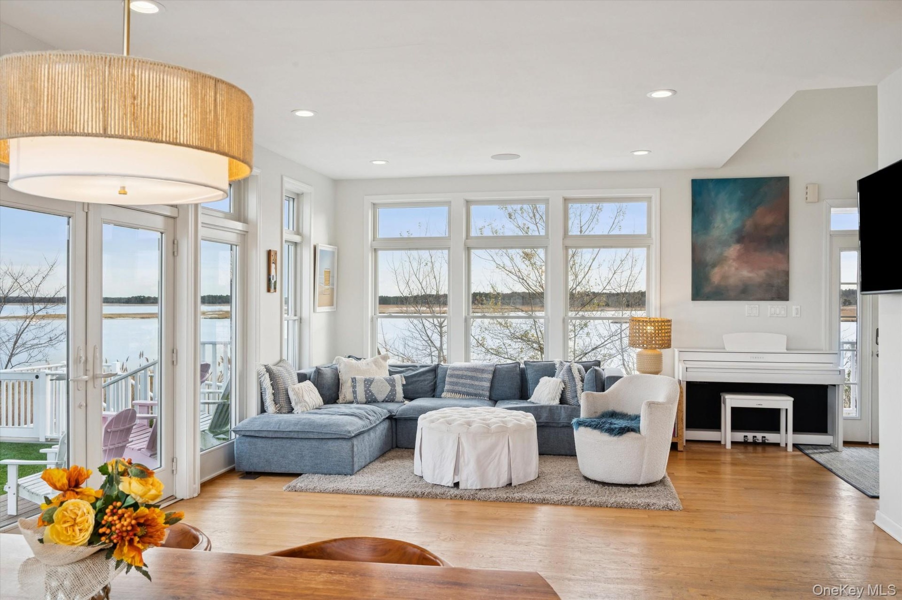 Welcome to 112 Pine Avenue, a waterfront home located where a peninsula meets the open expanse of Peconic Bay at the end of a calm shoreline. Surrounded by water on three sides, the property offers privacy, open views and a distinctive setting.