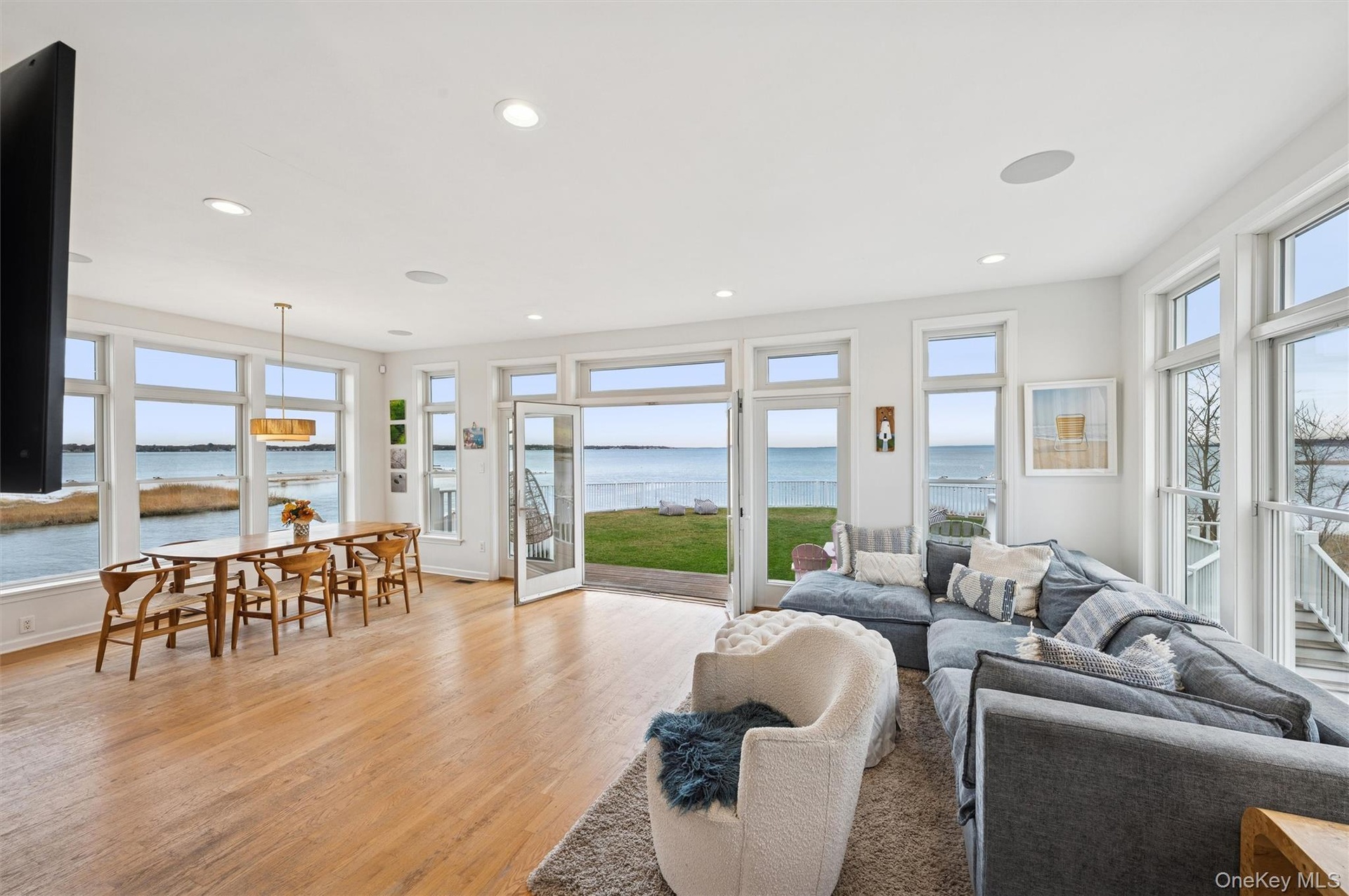 Direct water access begins at the driveway and continues along the shoreline. The nearby Little Pines community beach provides shared access for swimming, sun and enjoying Peconic Bay.