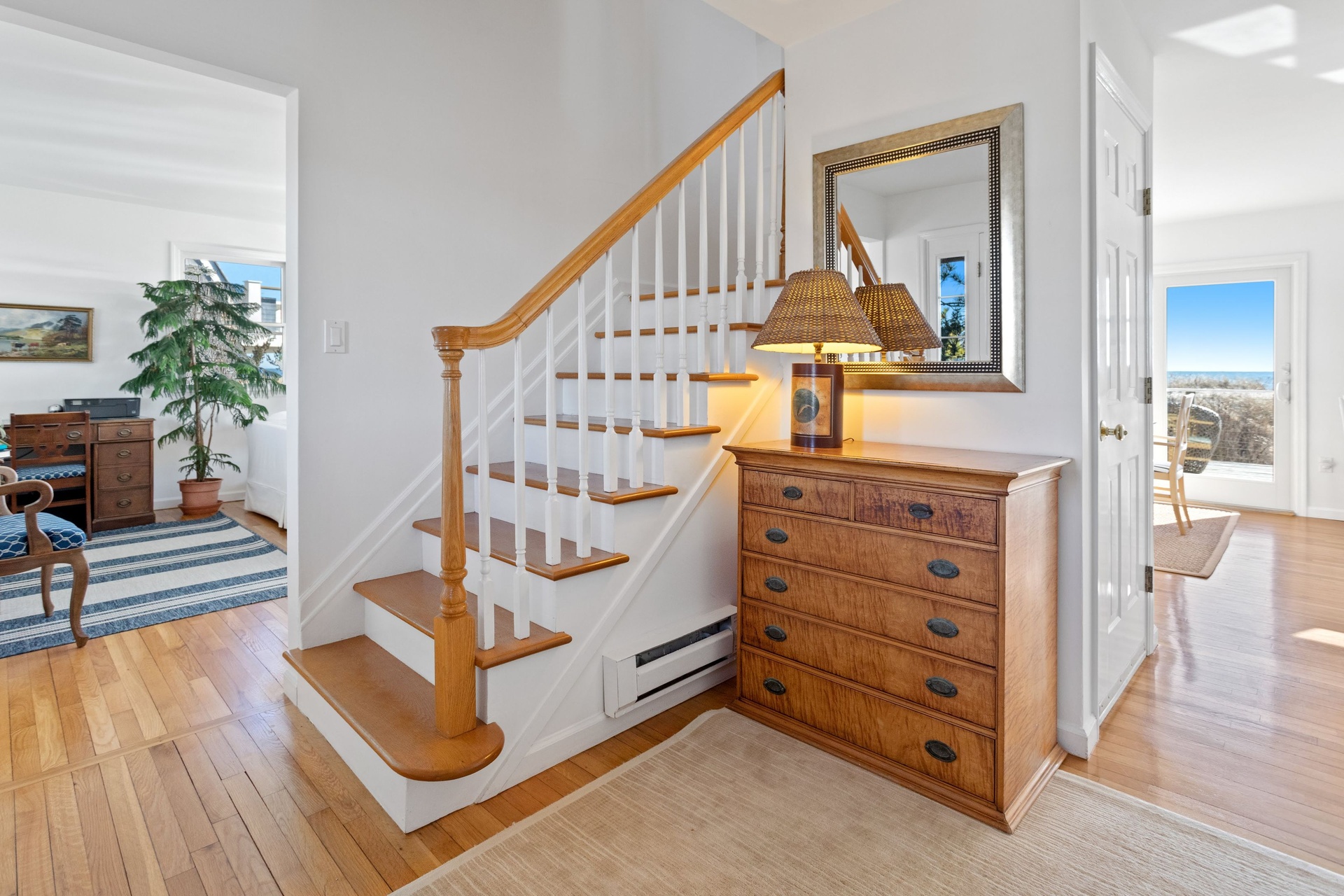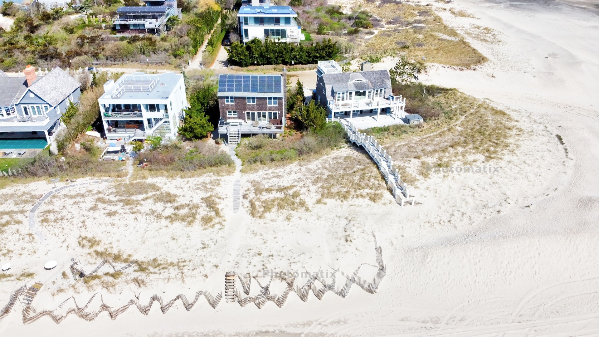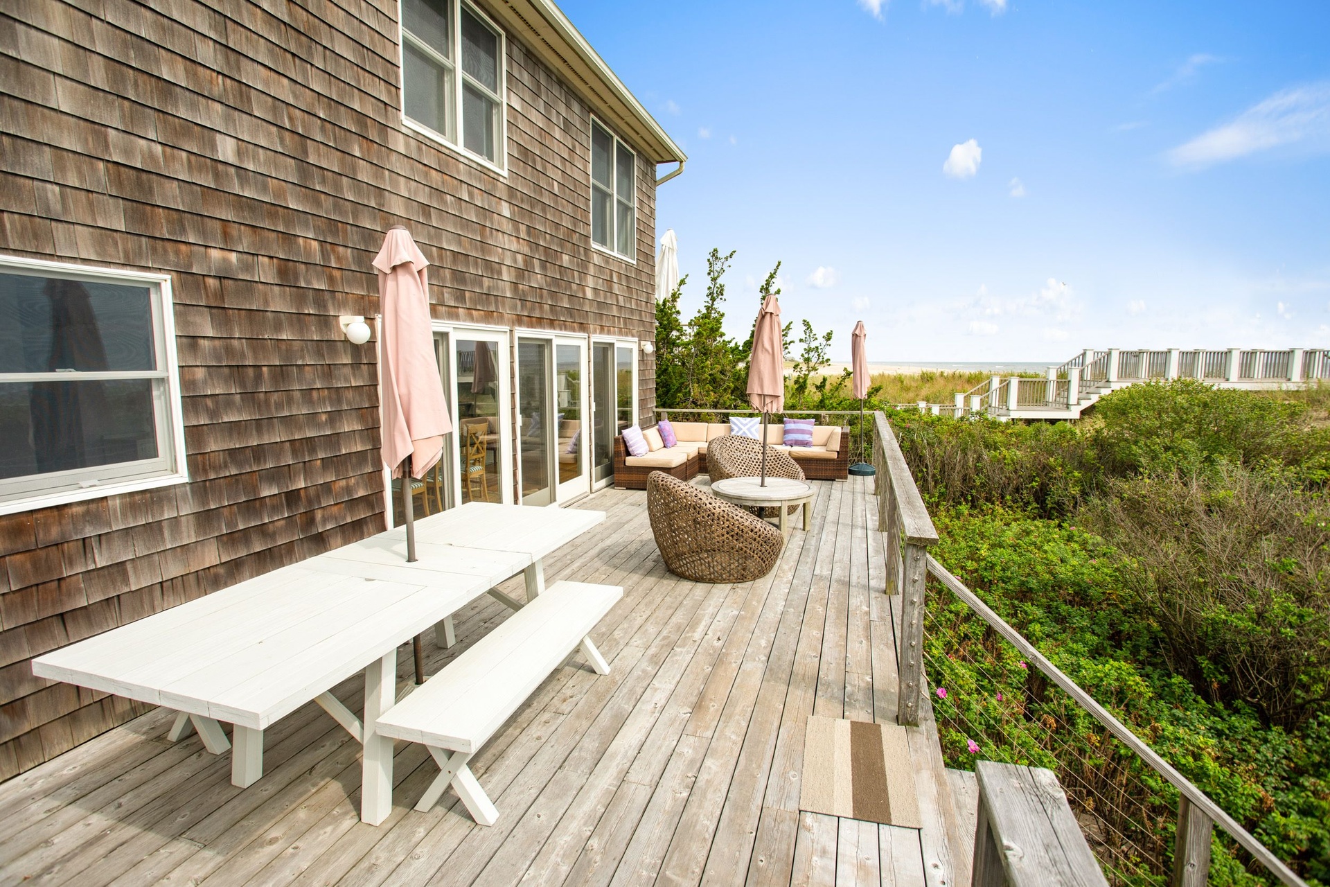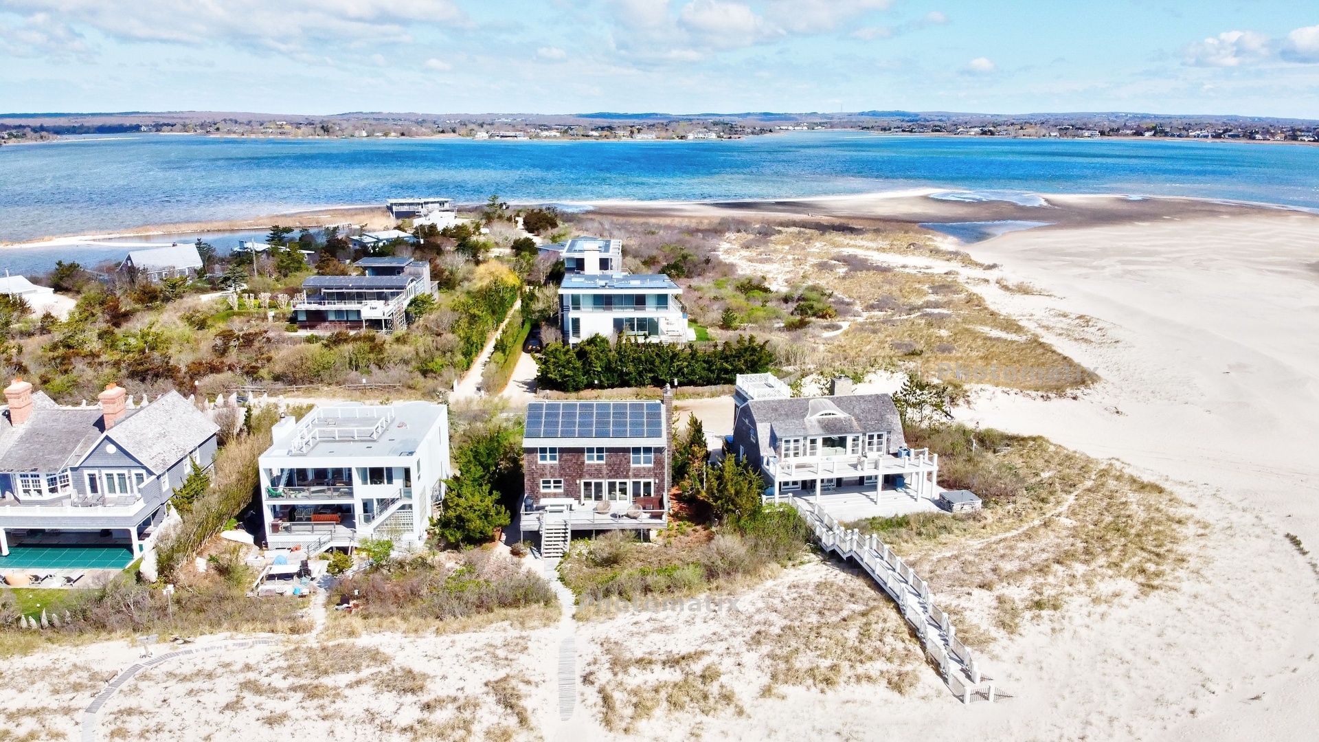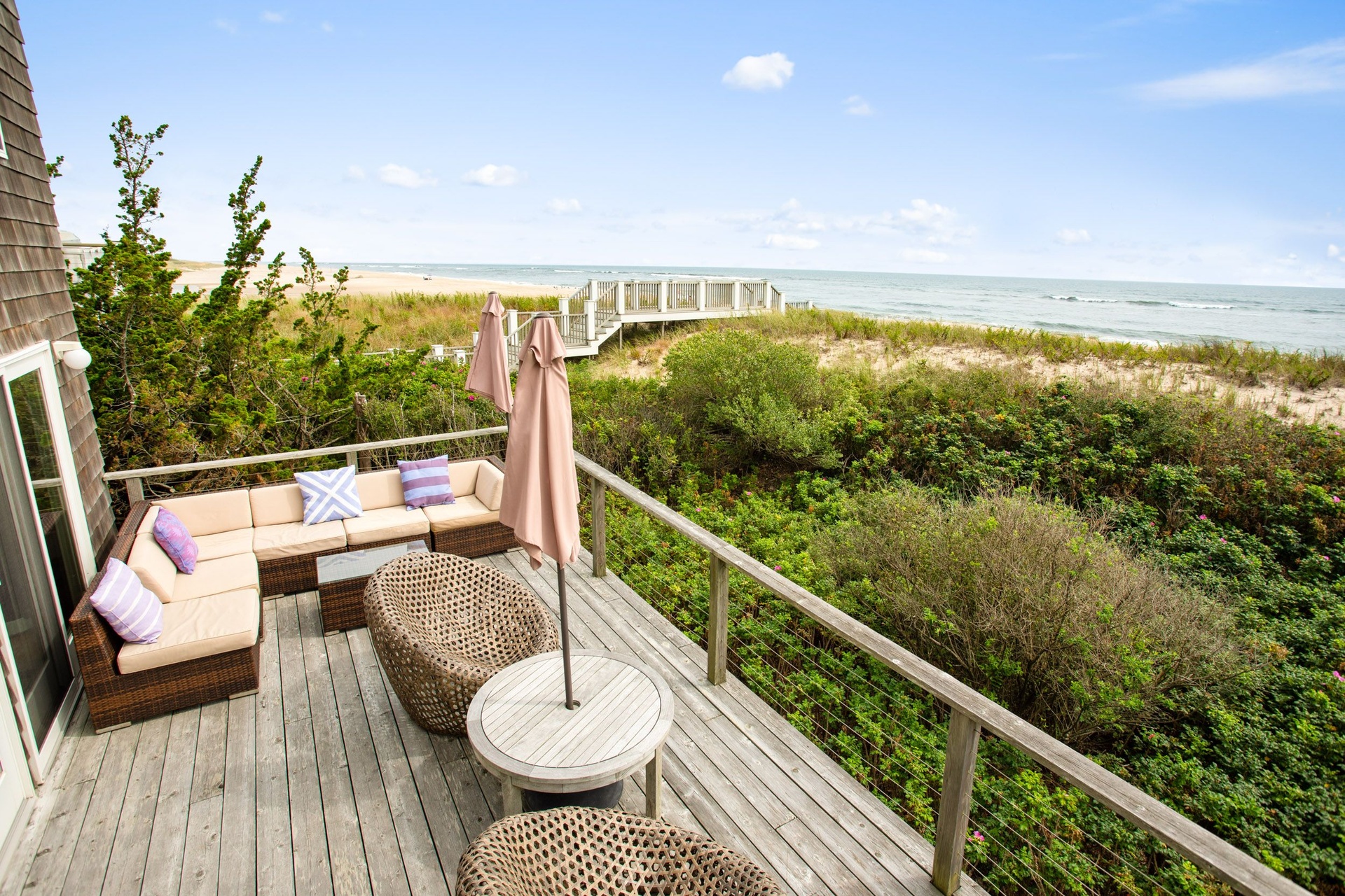 Charming Cottage perched amid the dunes with direct ocean frontage. Tucked away in Watermill's coveted oceanfront district of Flying Point, this 2,000SF, 5 bedroom home offers captivating panoramic waterfront vistas featuring the Atlantic Ocean and Mecox Bay.
