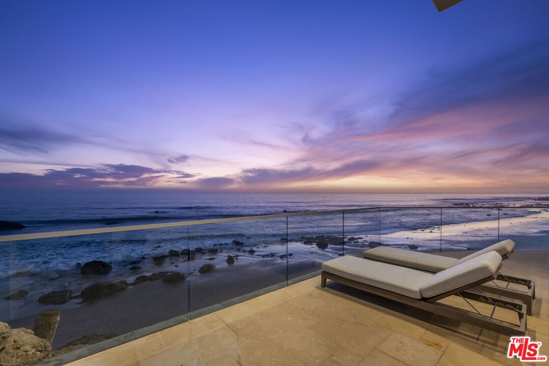 Experience Malibu living at its finest on iconic Malibu Road. This prestigious property, a former celebrity-owned beachfront retreat, is a breathtaking coastal sanctuary offering sweeping ocean views that stretch from Santa Monica and Palos Verdes to Catalina and Point Dume. A dramatic entryway makes a jaw-dropping impression, framed by landscaped front and back courtyards. Towering two-story ceilings and complete privacy elevate the living experience, while expansive outdoor spaces invite both serenity and entertaining. Inside, rich oak hardwood floors flow throughout. The gourmet kitchen stuns with creamy white cabinetry, luxurious finishes, and a layout designed for both beauty and functionality. The oceanfront primary suite is a true retreat with a cozy fireplace, dual walk-in closets, and panoramic views. The spa-like primary bath features a soaking tub, oversized steam shower, and direct ocean views. Upstairs, two guest bedrooms share a dual bathroom, offering both comfort and privacy. Outdoor living is unmatched, with a rare and expansive entertaining area complete with a built-in BBQ and private spa. The main house offers four bedrooms plus an office/den, while a completely separate one-bedroom guest house with its own ocean views sits across the courtyard. This iconic, exquisitely designed property is truly one of Malibu's finest, and can be sold fully furnished.