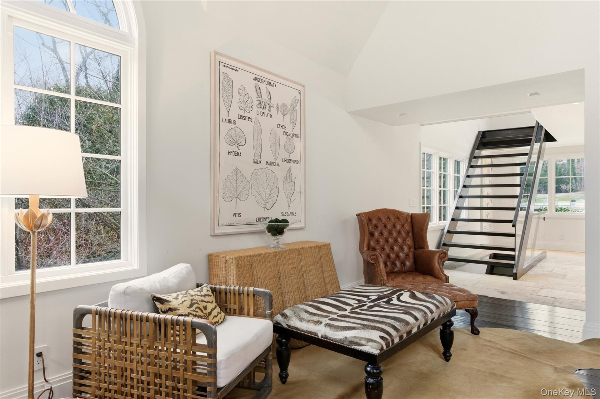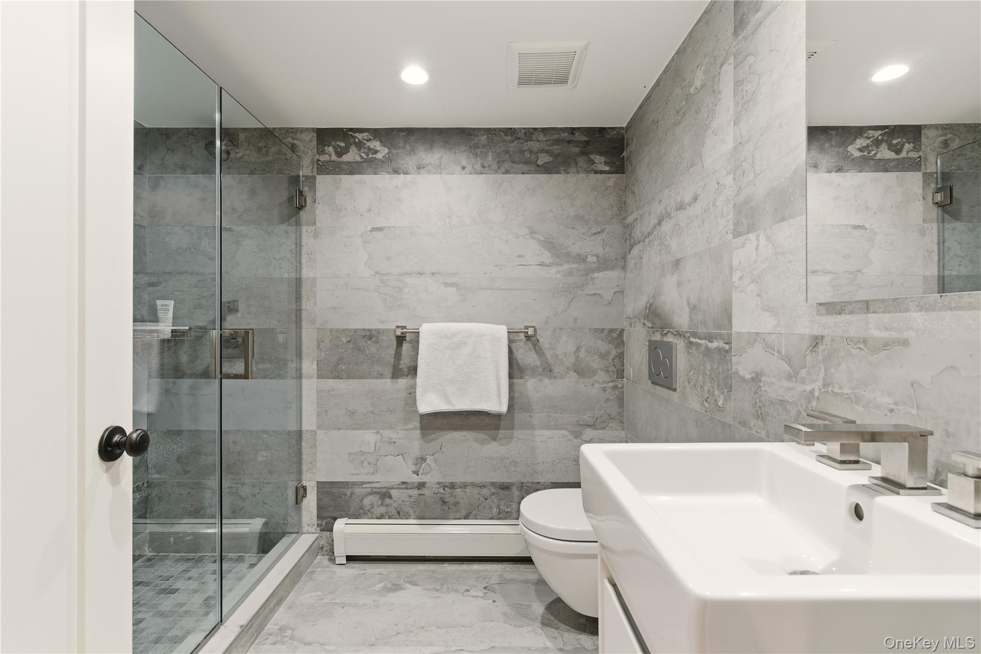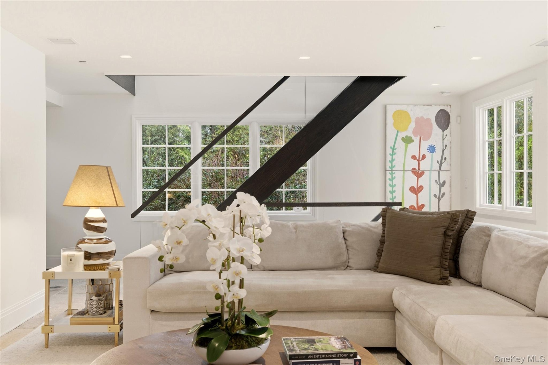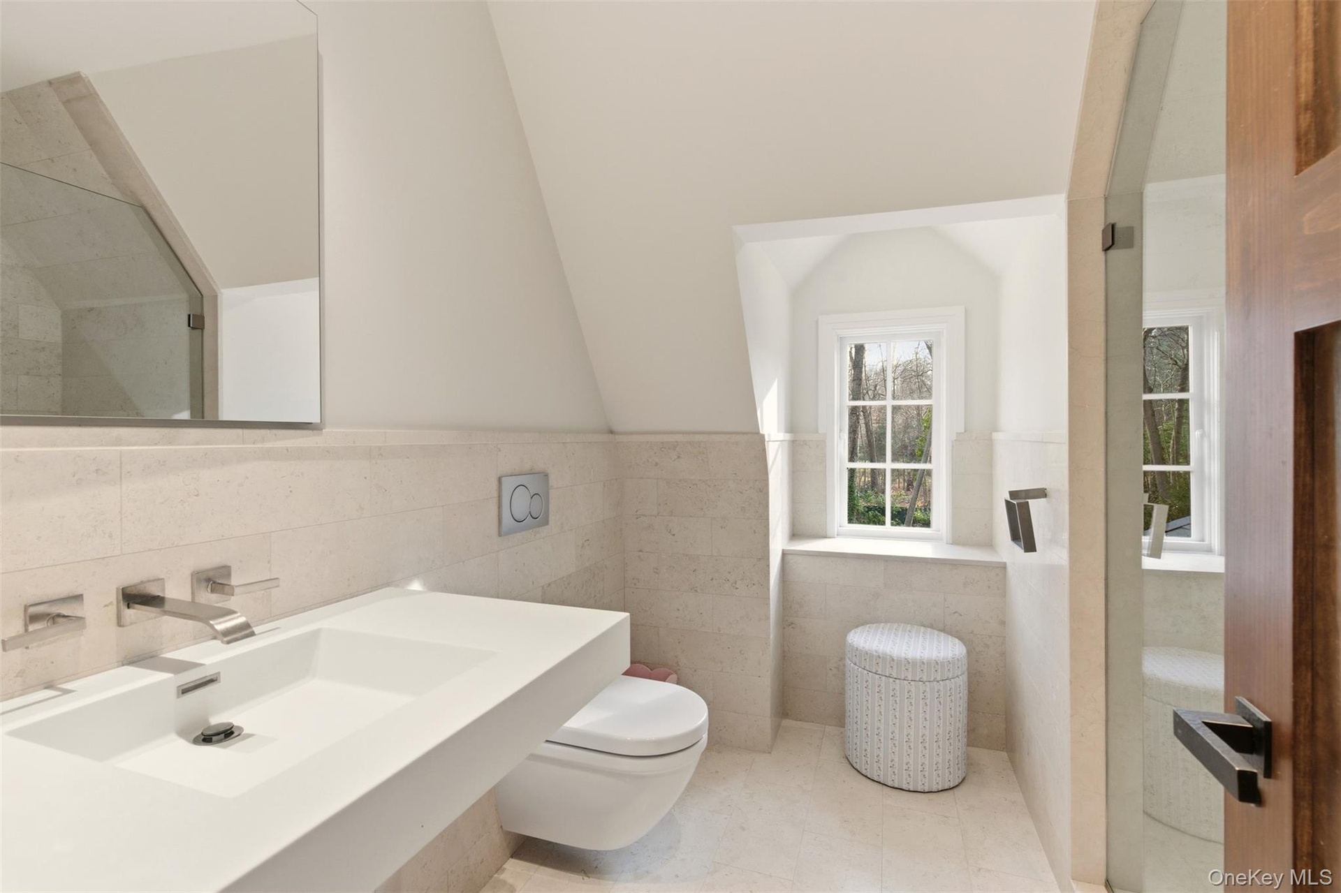 Renovated down to the studs, the home features all new plumbing, electric, air conditioning and septic system. Radiant heat throughout the first floor and all upper level bathrooms. Primary suite includes radiant heat in both bedroom and bath. Carlisle solid white oak tongue-and-groove random-width wide-plank flooring and custom woodwork are found throughout. Duravit bath fixtures, honed travertine marble, and all new windows and doors complete the interiors.