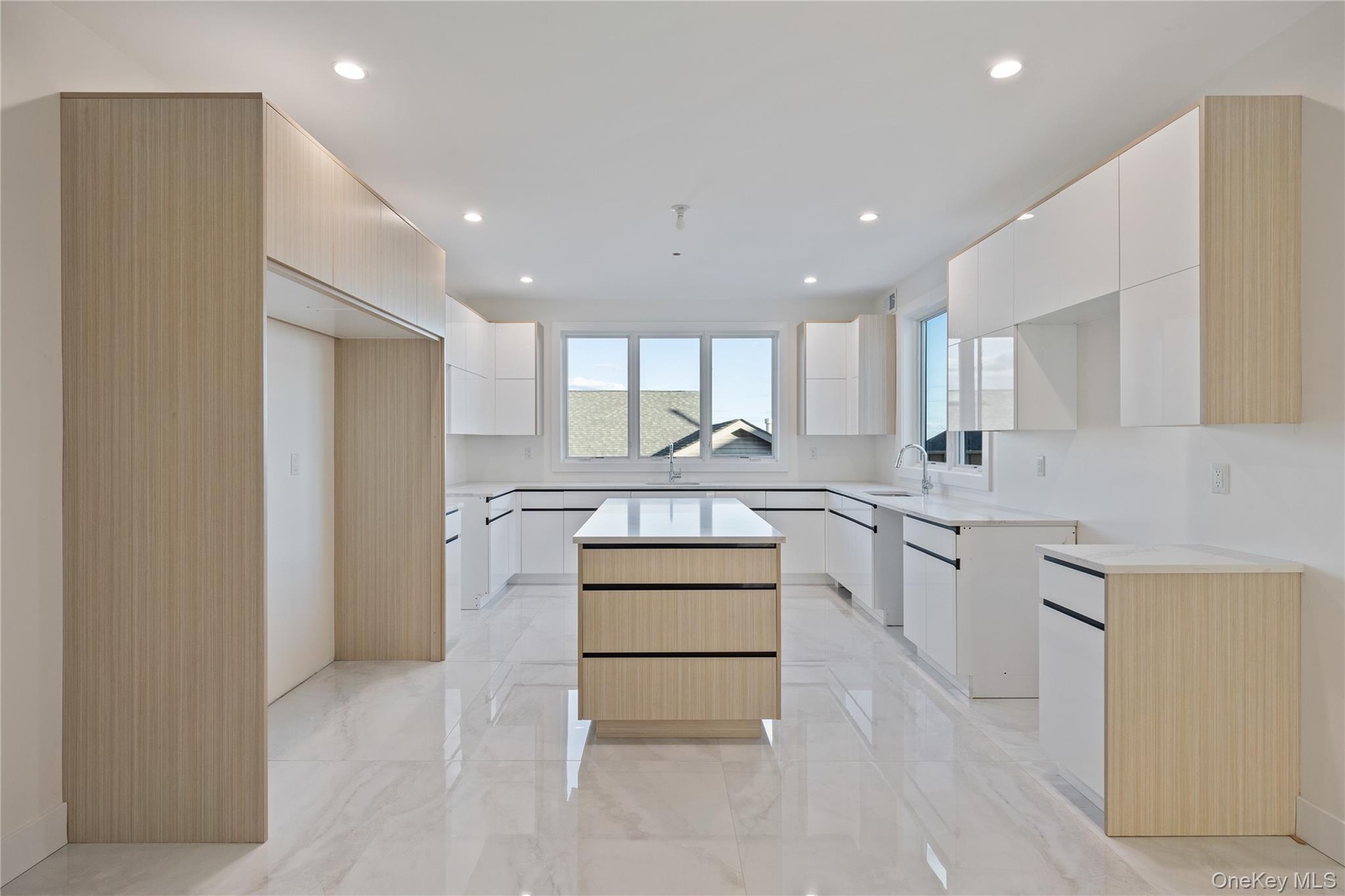 The second floor opens to a sun-filled dining room with abundant natural light, enhanced by spotlights and access to a deck—perfect for stepping out to enjoy the fresh air. The chef’s kitchen is beautifully designed with a large island, separate fridge and freezer space, quartz counters, and a cozy dinette area. This level also includes a playroom with toy closets and access to a large back porch, a seasonal kitchen, a study/office, and a powder room, all arranged for comfort and convenience.