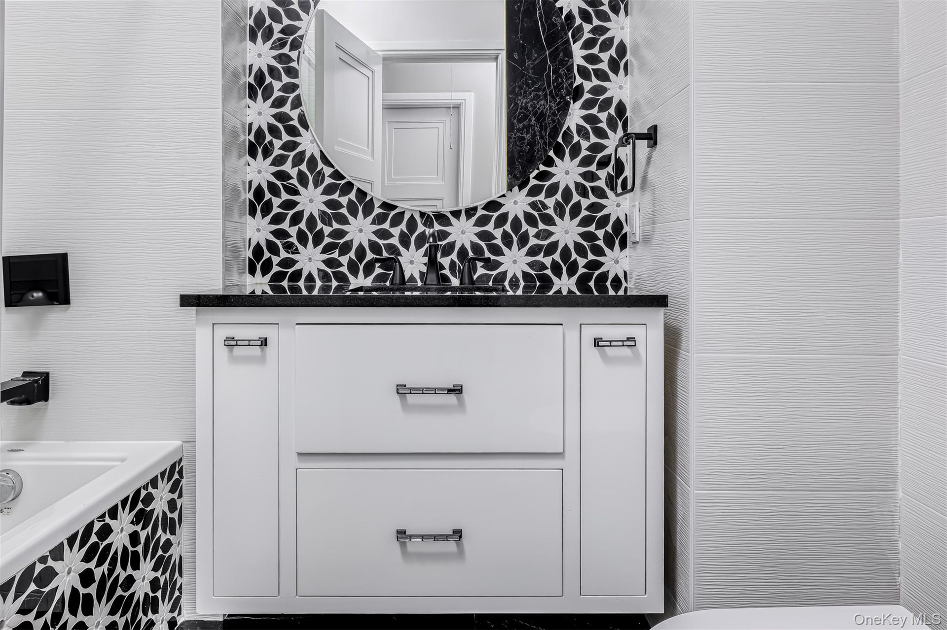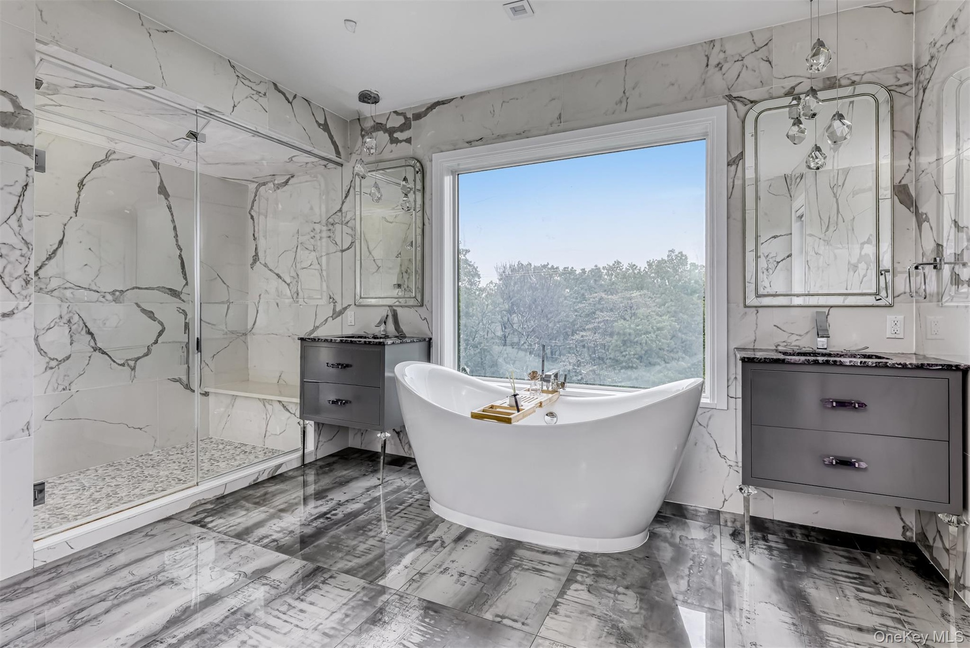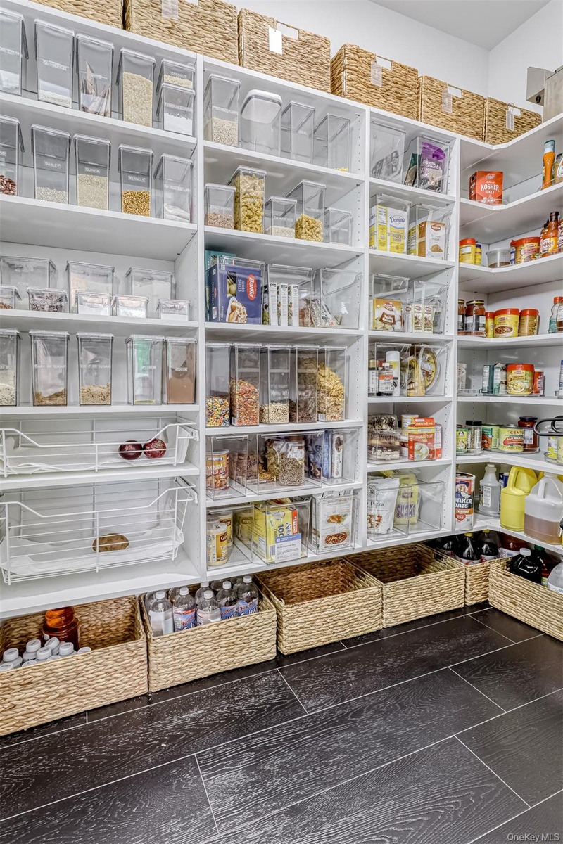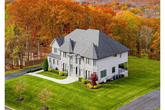 Exceptional Newly Constructed Custom Colonial Estate in Prime Pomona. Privately positioned on a serene cul-de-sac and set on nearly two acres of lush, tree-lined grounds, this remarkable residence offers breathtaking panoramic views of the Ramapo Mountains and an extraordinary sense of privacy. Designed by renowned professionals, the home is a bold expression of modern elegance, featuring a refined black, white, and gold palette and impeccable craftsmanship throughout.