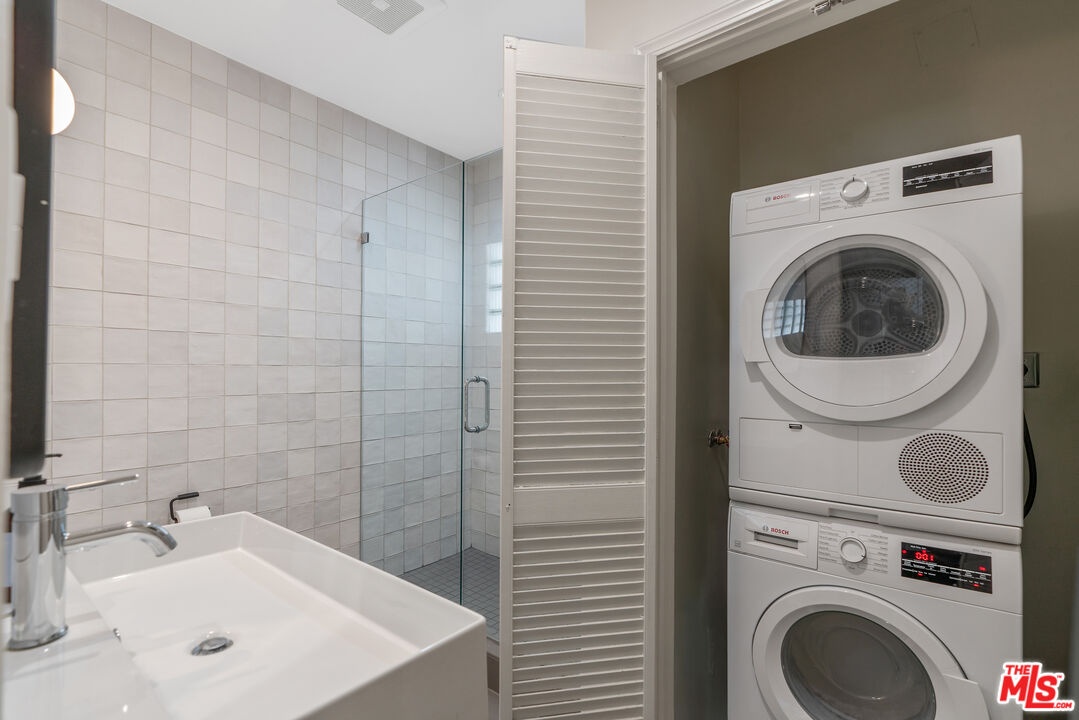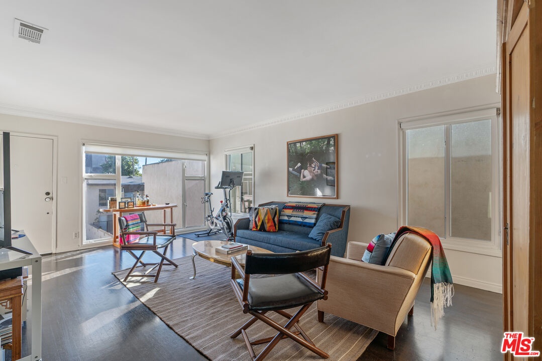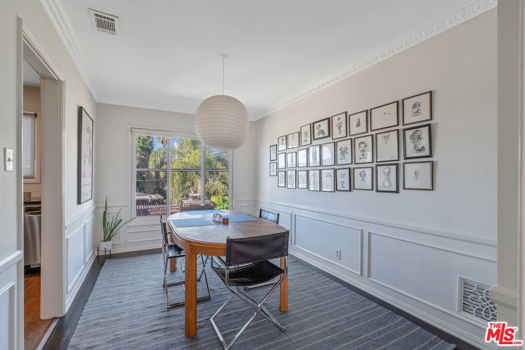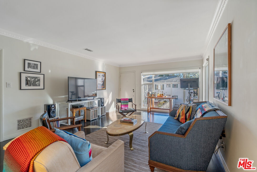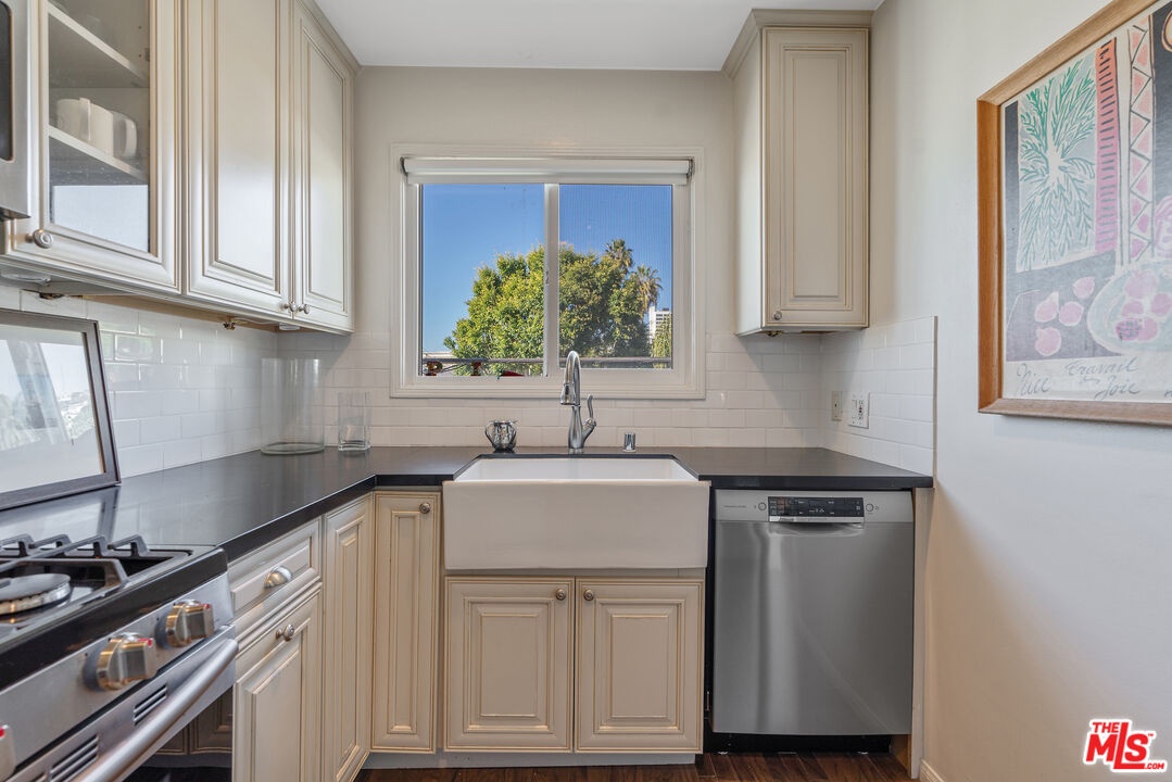 Under the thoughtful care of its current owners and a professional designer, this top floor, corner unit located in the heart of the Harper Historic District was both modernized and brought back to its Old Hollywood glamor. Enjoy spectacular views in this light and bright oasis. Both full bathrooms were re-built from the ground up with no expenses spared. Luxury materials and finishes include hand-cut Spanish and Italian tiles (supplied by Mission Tile), a modernist ceramic floating vanity in the primary bath, a heritage restored pedestal sink in the second bath, frameless glass shower doors, and curated design accessories and trims. Door and hardware were updated throughout the unit, and custom high-end window shades were installed on each window. Original, historic construction touches like trim details were retained throughout. The original wainscoting in the formal dining room was restored, as was the spectacular wall-length, floor-to-ceiling window in the living room, which was painted inside and out. The dining room was completed with a Naguchi light fixture, the epitome of mid-century modern cool. Additionally, the central air conditioning and heating was upgraded with new controls, and high-end Design Within Reach ceiling fans were installed in both bedrooms. Luxurious new Bosch appliances (washer, dryer, and dishwasher) were also installed. One covered parking space is included, as well as trash and water.